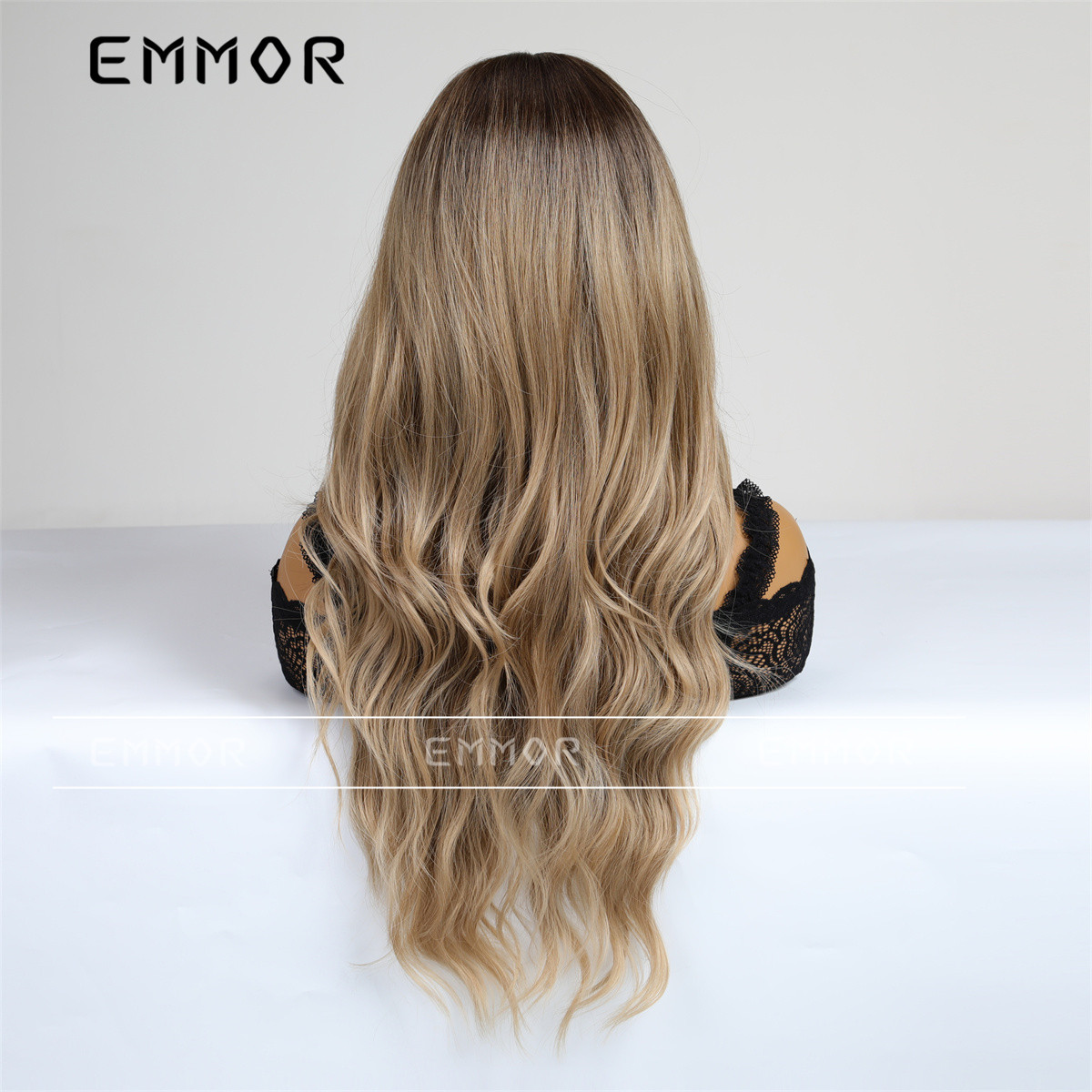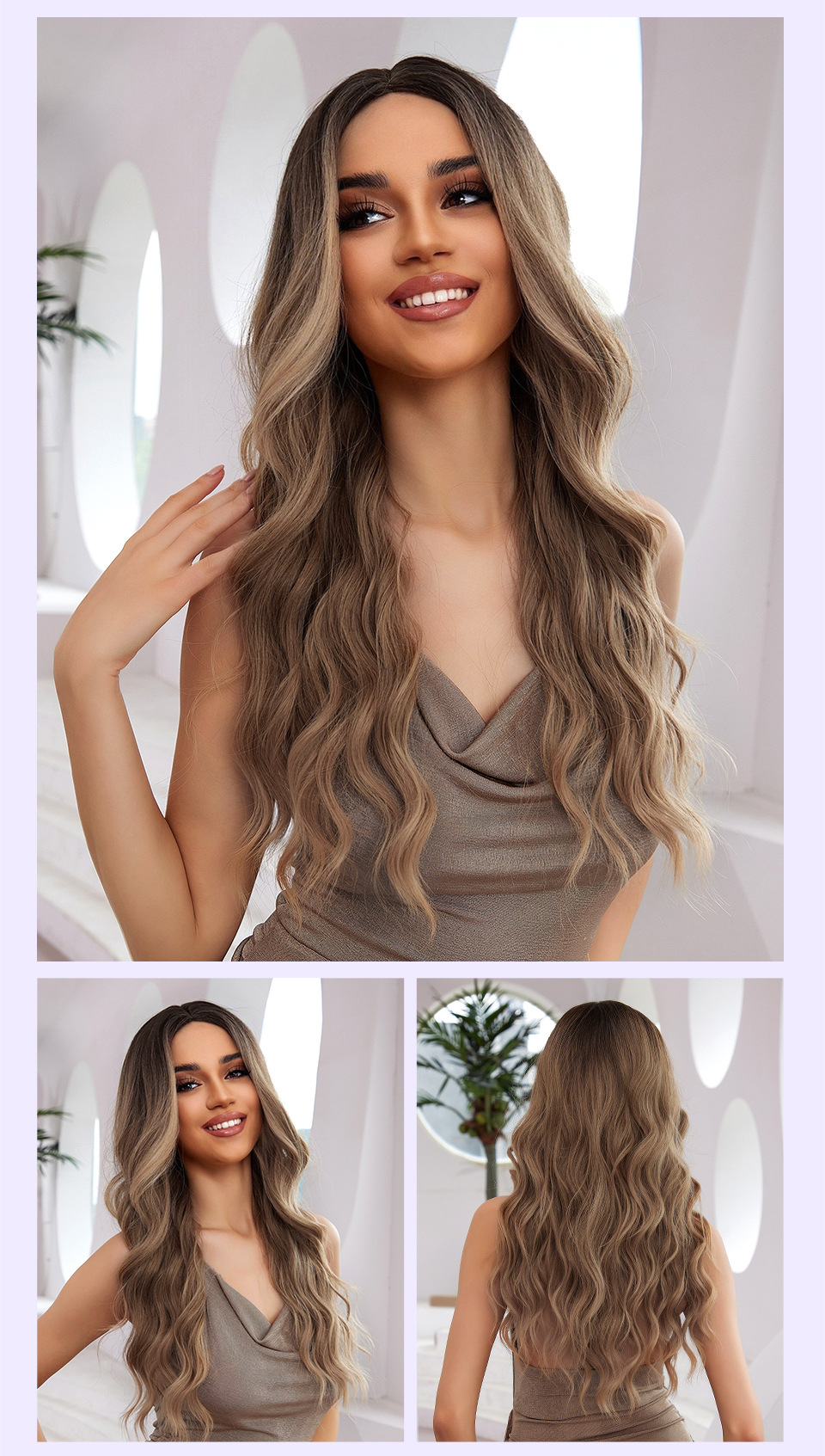 TEMU venta caliente, onda grande, cabello largo y rizado, degradado, marrón oscuro, mate, peluca de seda de alta temperatura, cubierta de cabeza completa para mujer
