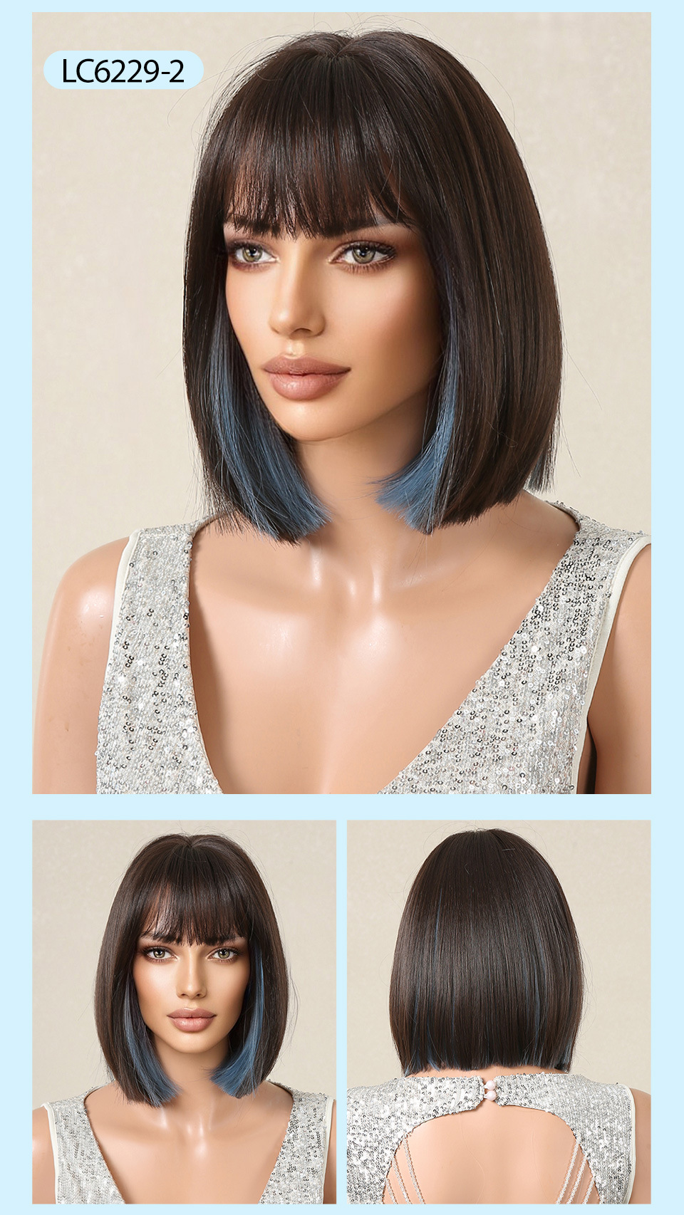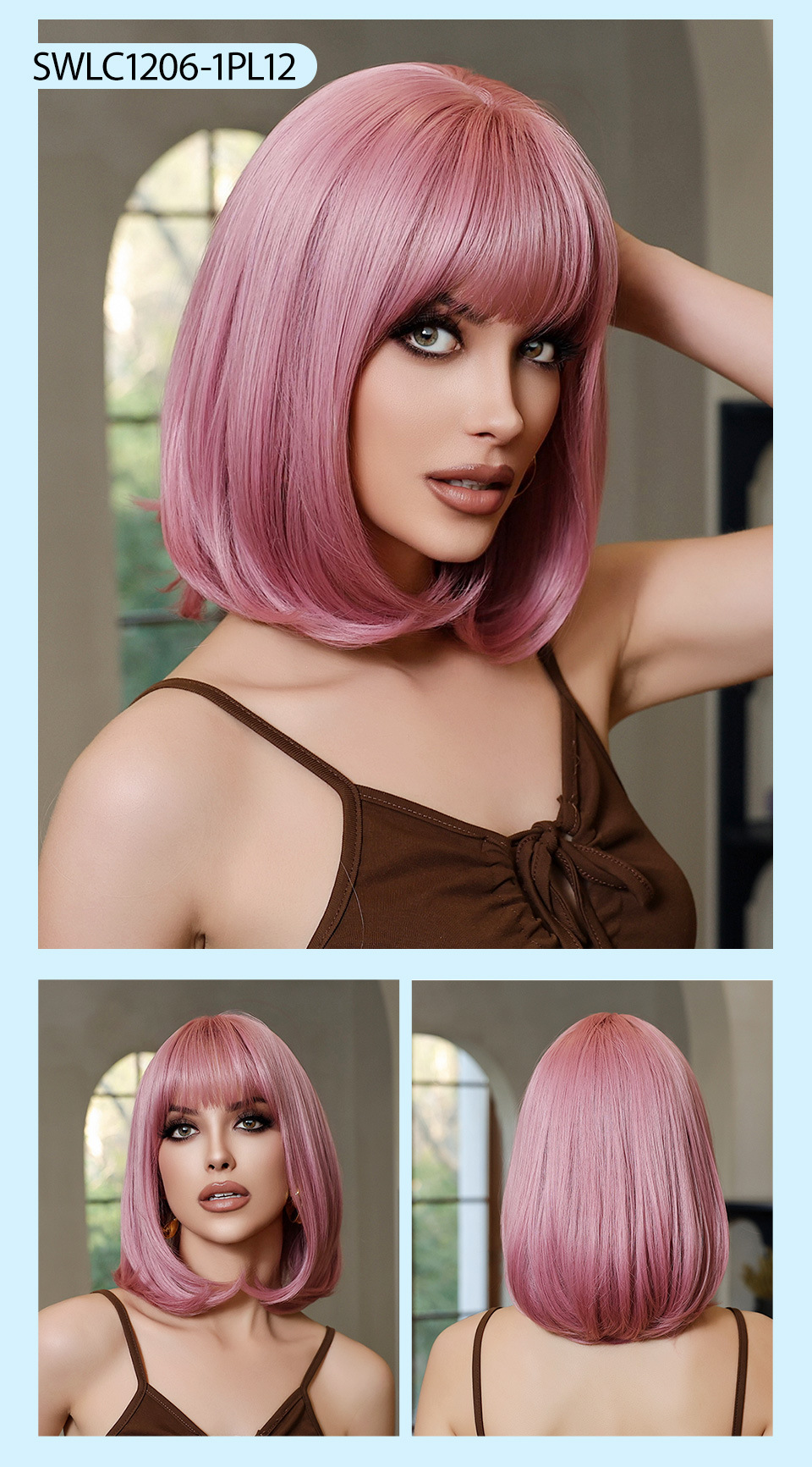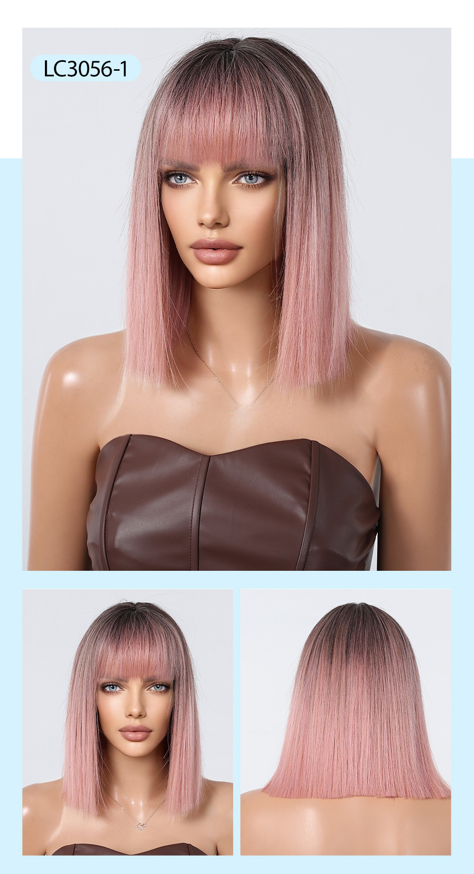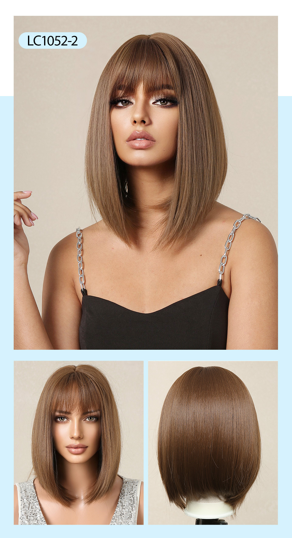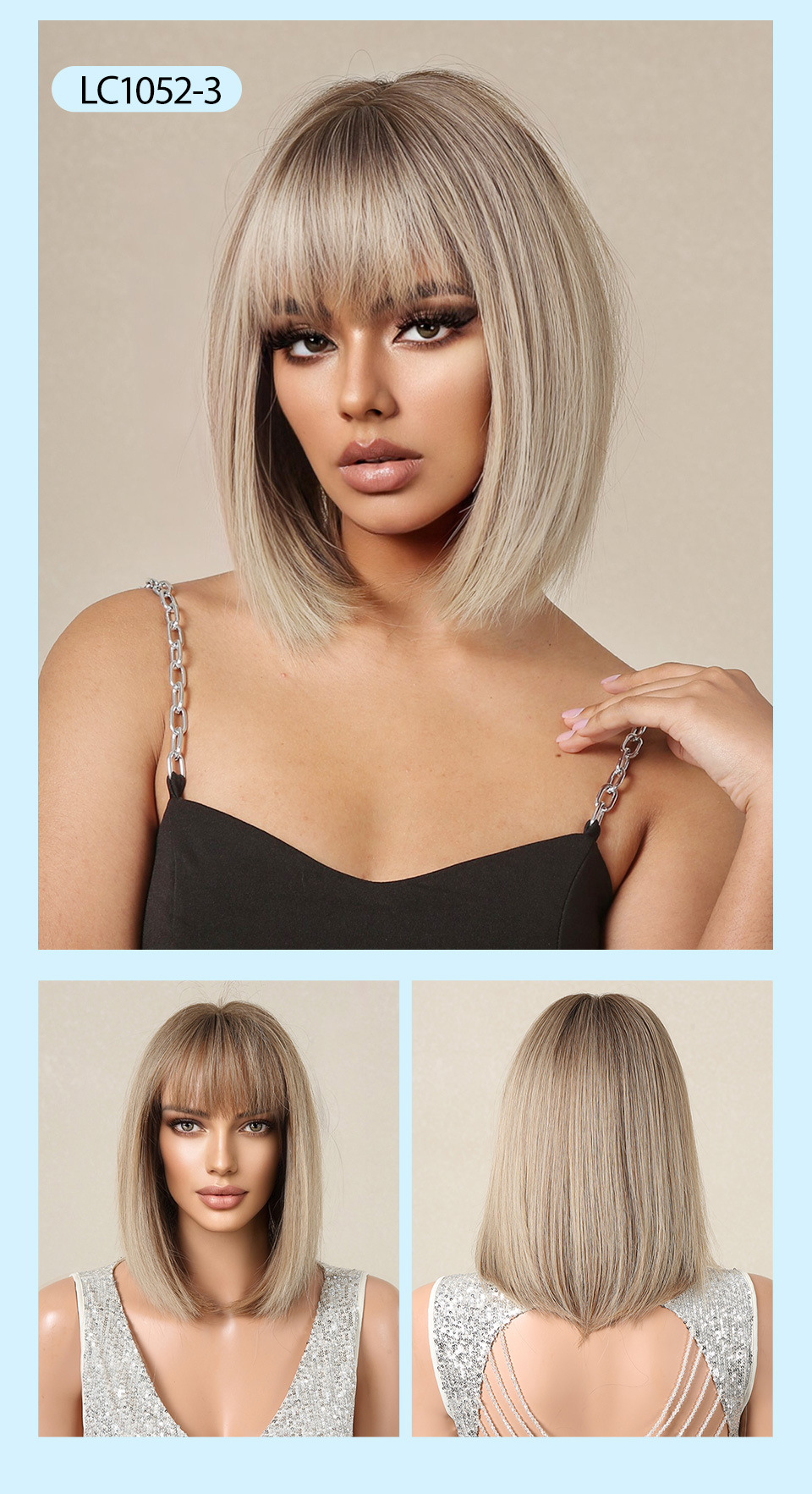Nuevos productos de verano, flequillo transpirable natural, cabello corto y liso dorado, cabeza Bobo, peluca de estilo europeo y americano, cabello completo, wigs