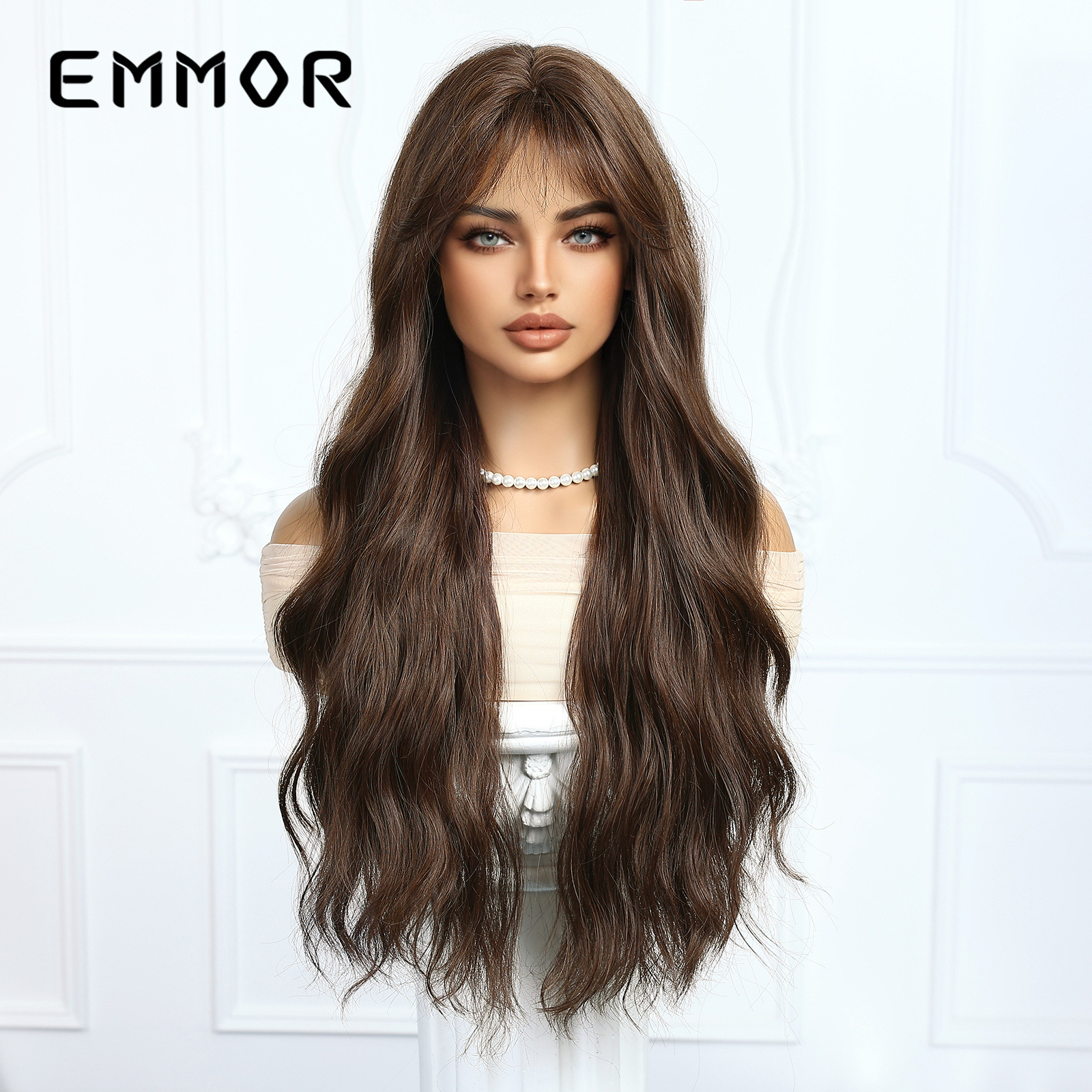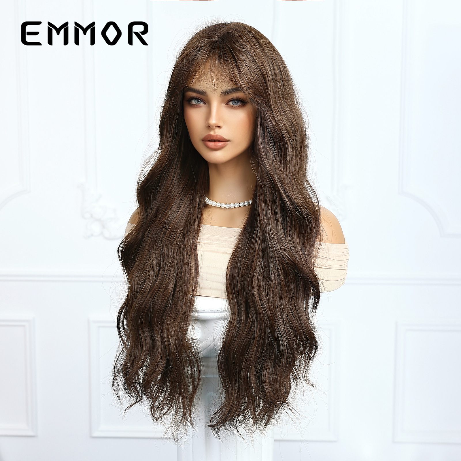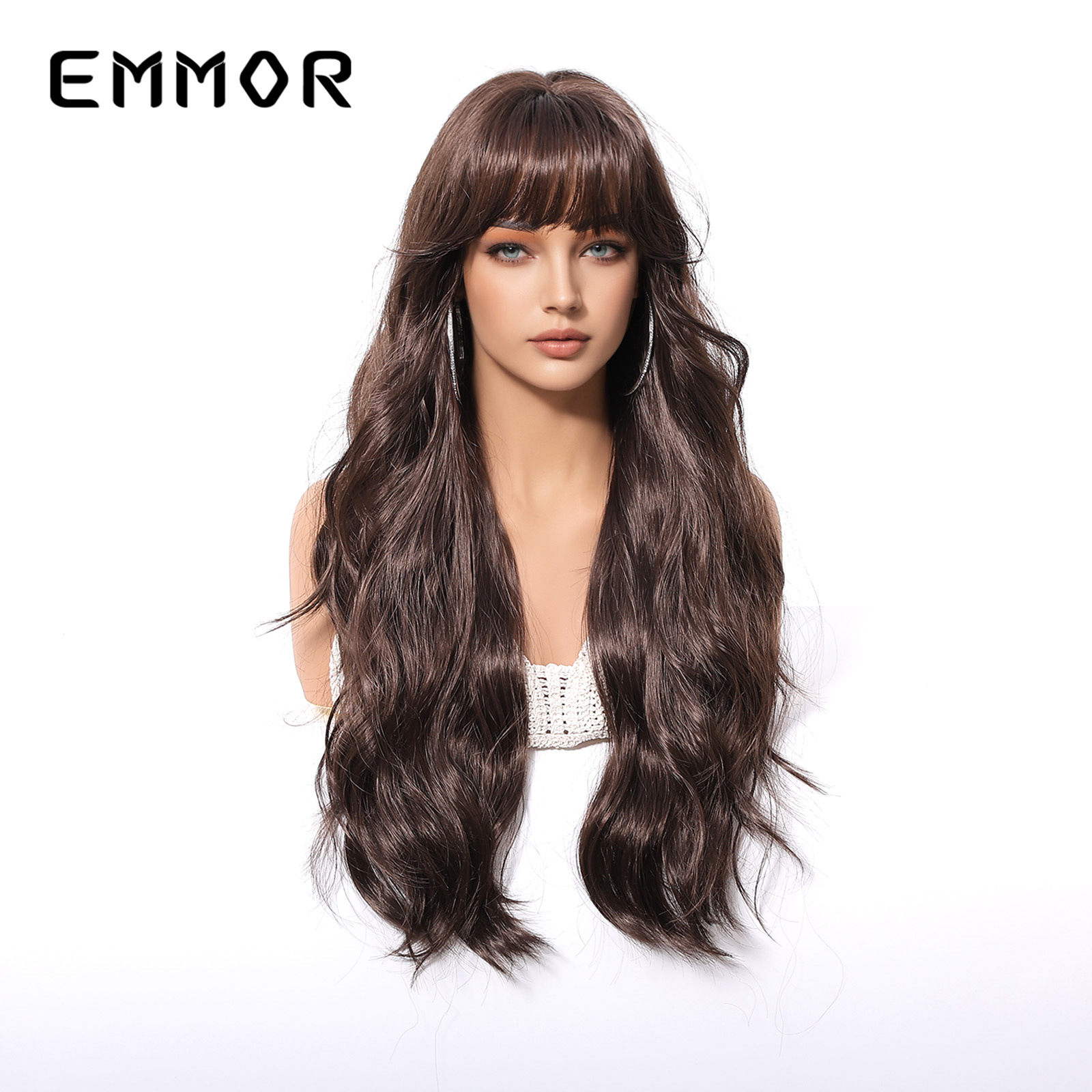 Comercio exterior transfronterizo nuevo producto aire flequillo natural agua negra ondulada pelo largo y rizado moda peluca de cabeza alta traje femenino