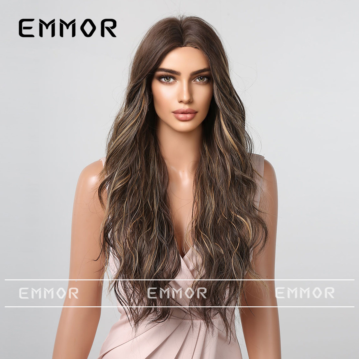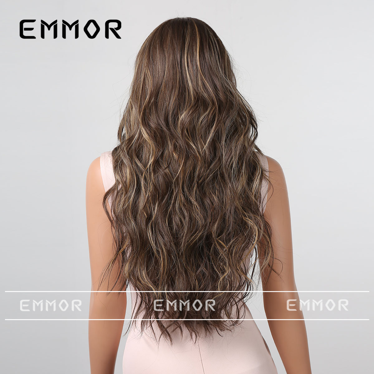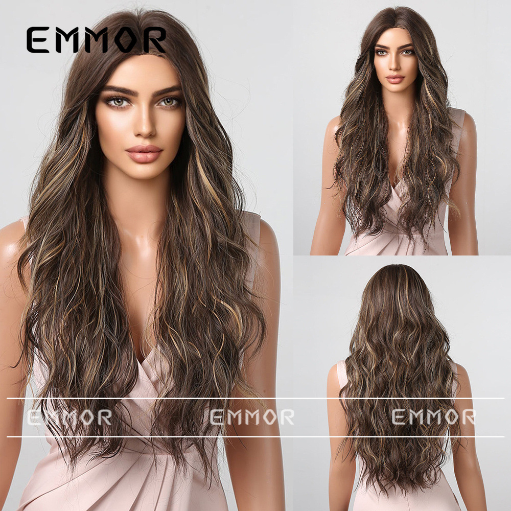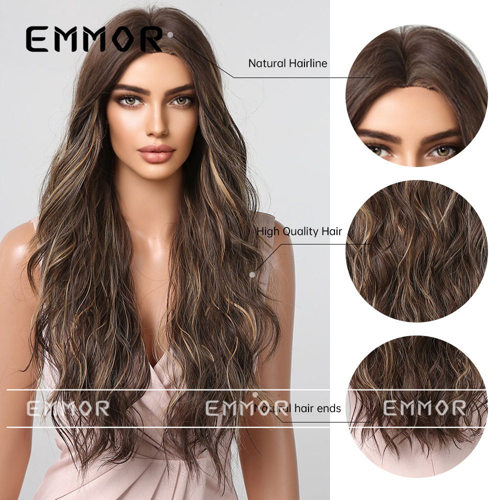 Emmor Peluca de pelo largo de las mujeres natural negro marrón largo pelo rizado estilo europeo y americano onda Grande Medio puntos sin Bangs peluca