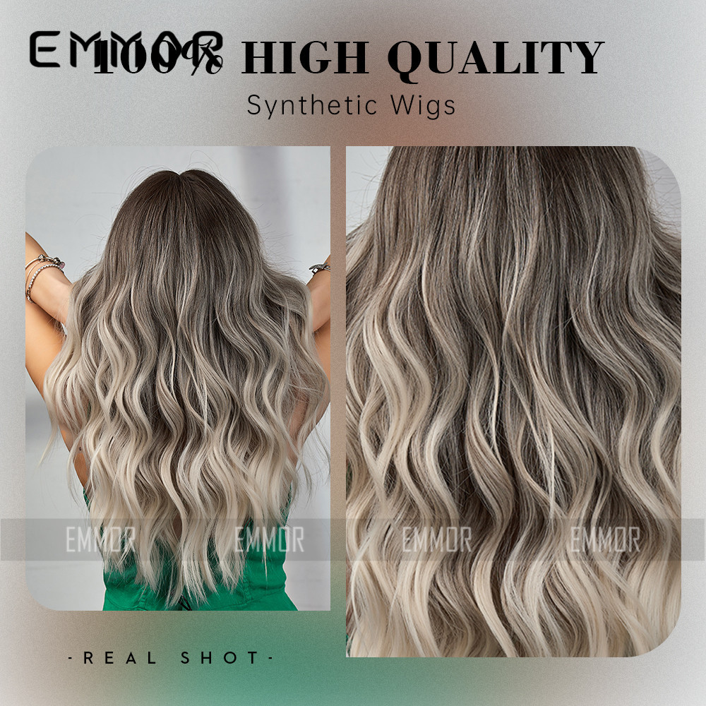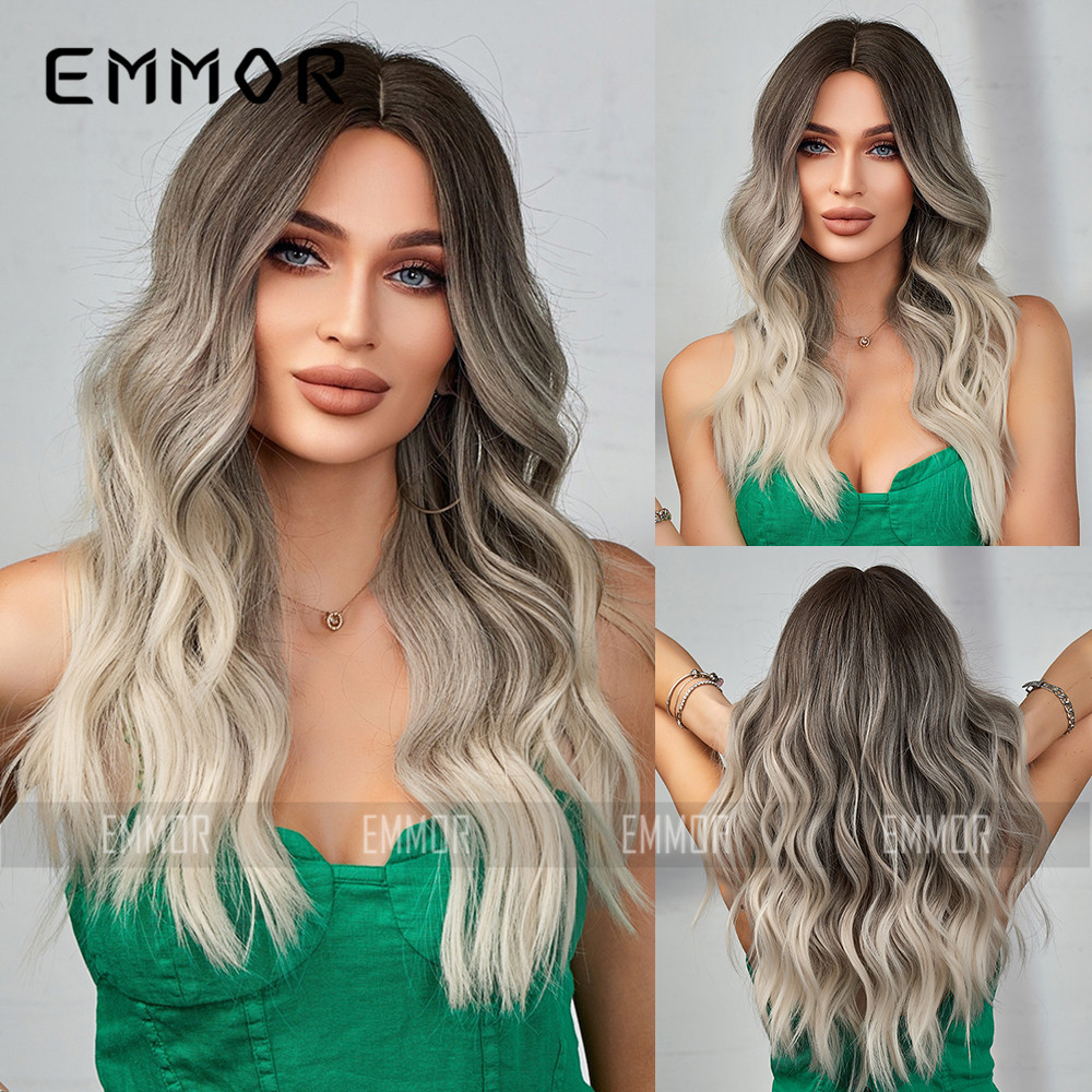 Europeo y americano Amazon transfronterizo nuevo punto medio negro degradado gris textura caliente fibra química peluca femenina Pelo Rizado