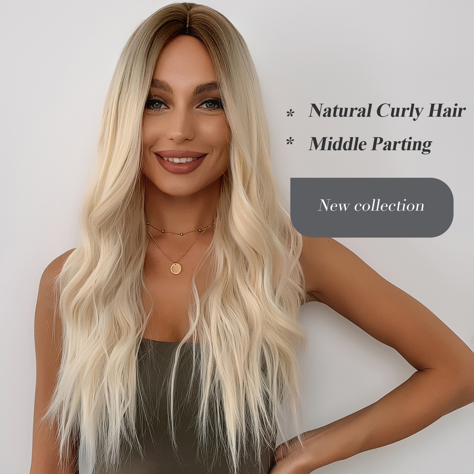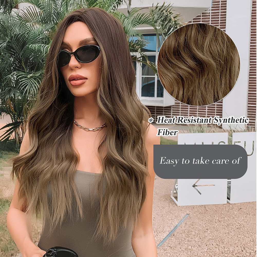 Largo ondulado Pelucas sintéticas ombre marrón parte media para las mujeres