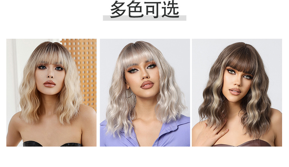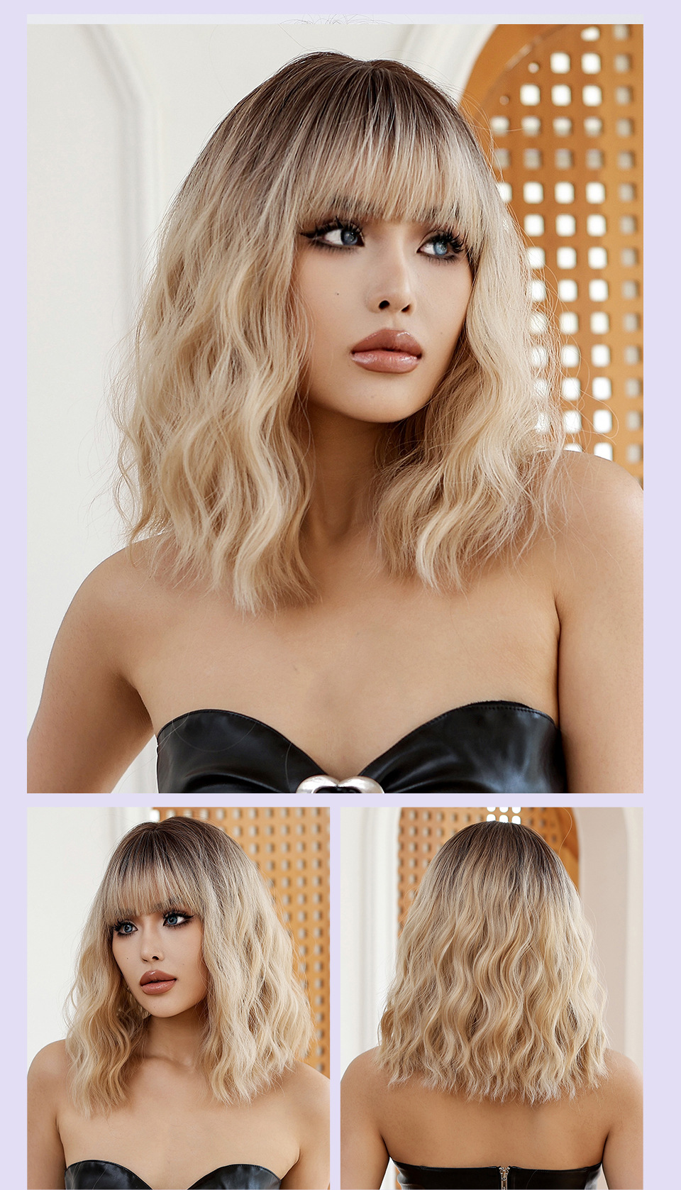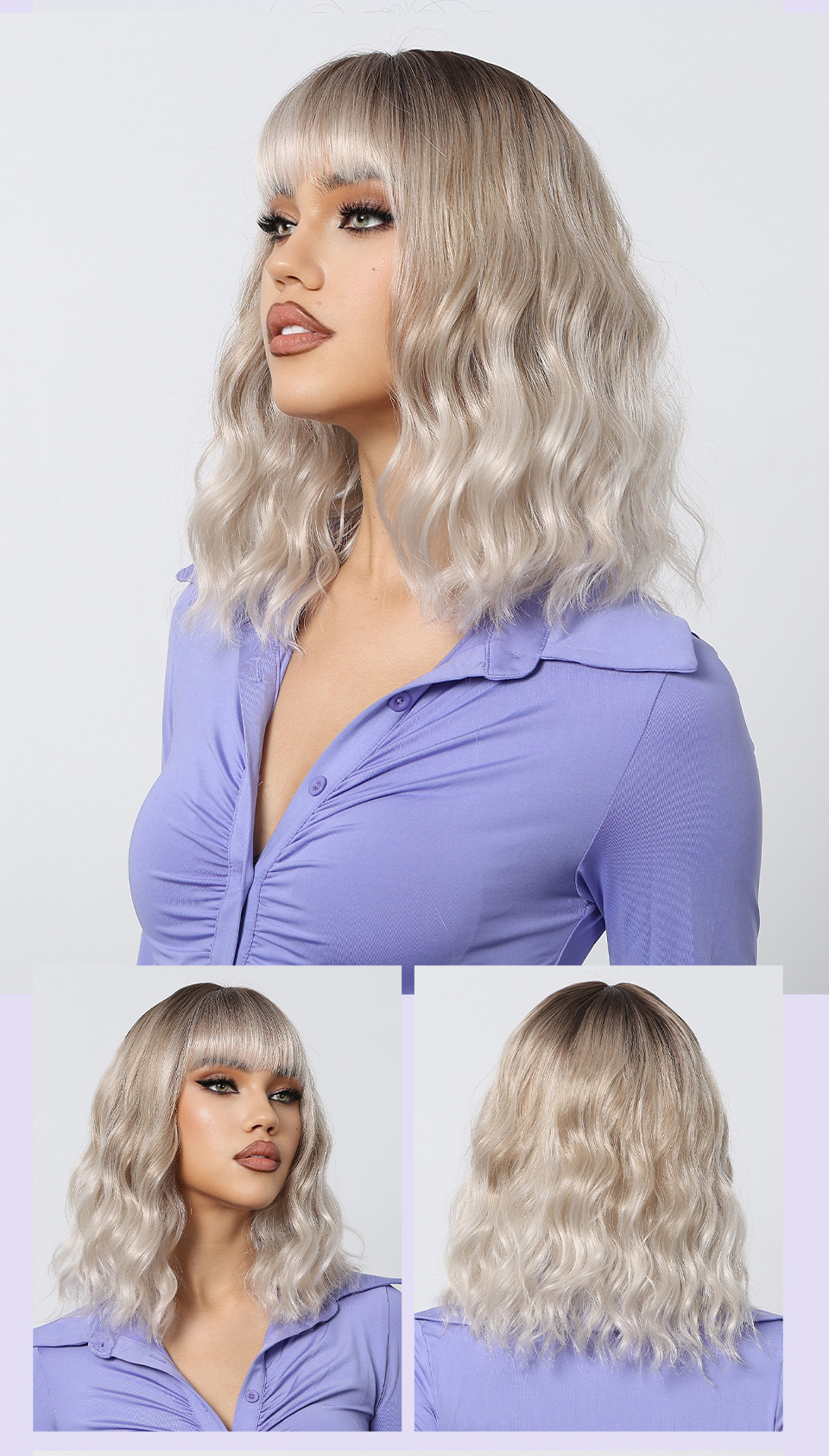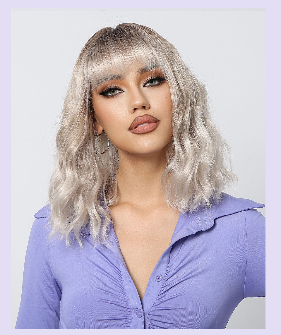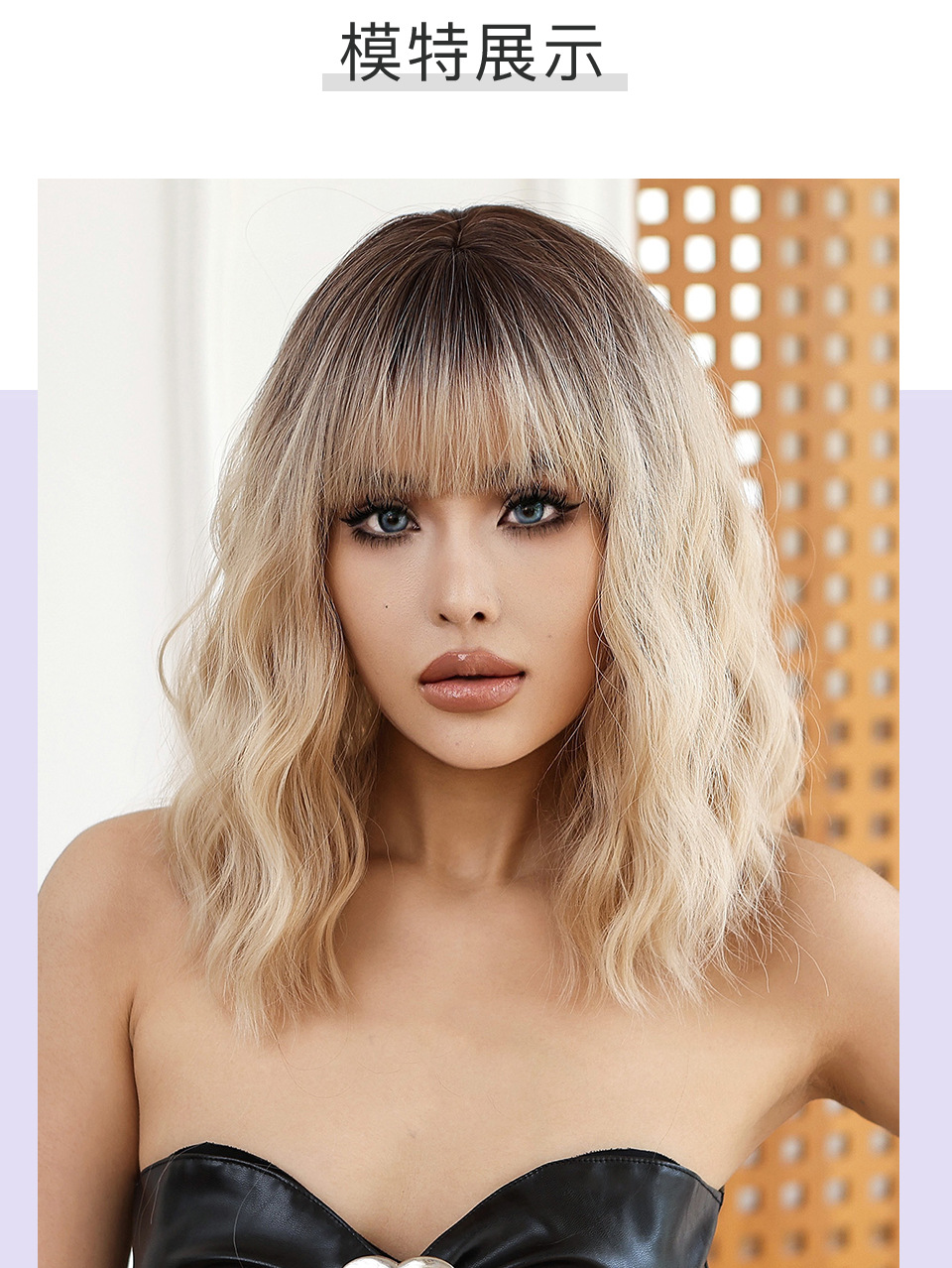 Gradiente transfronterizo europeo y americano, flequillo de oro blanco, rizado corto, rizado, rollo de lana, peluca perezosa de nivel natural, tipo de cabello completo