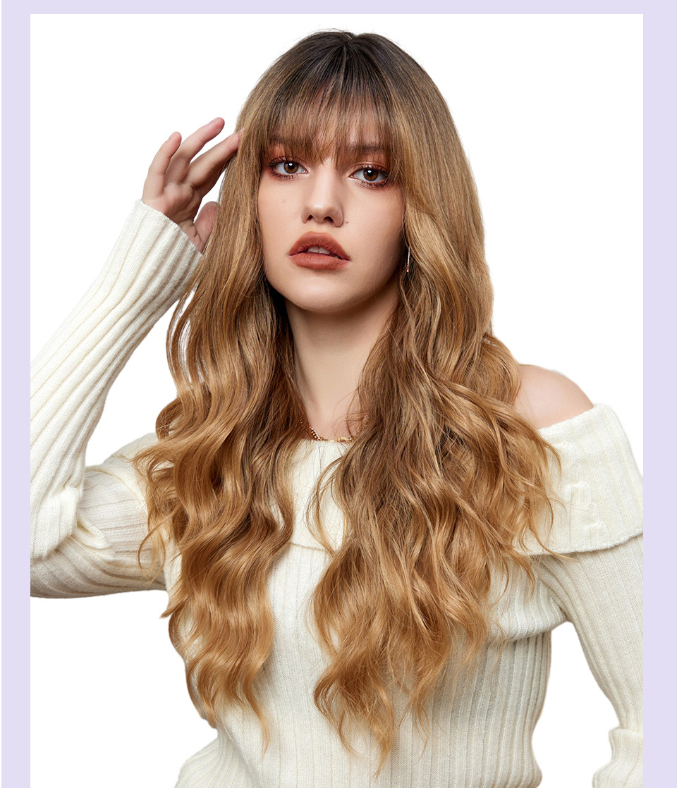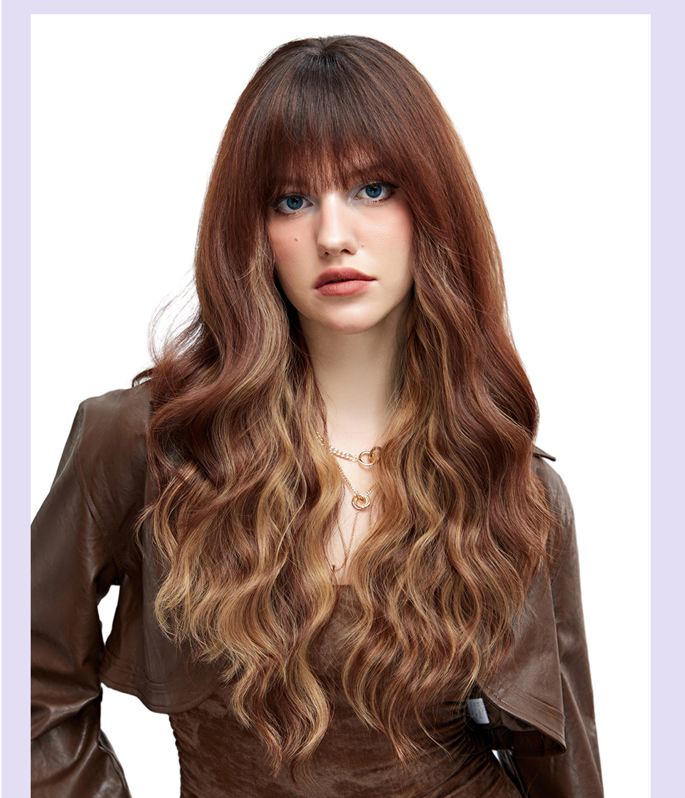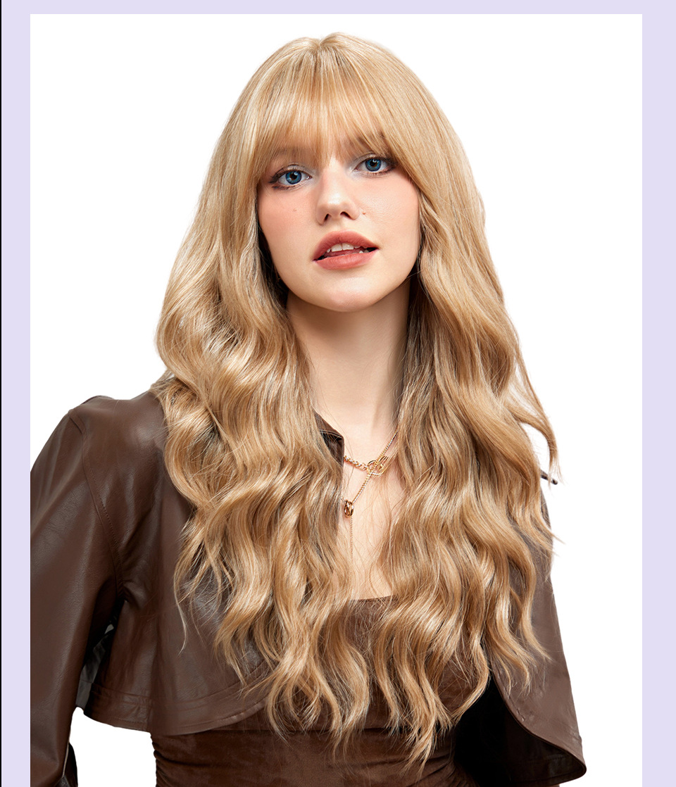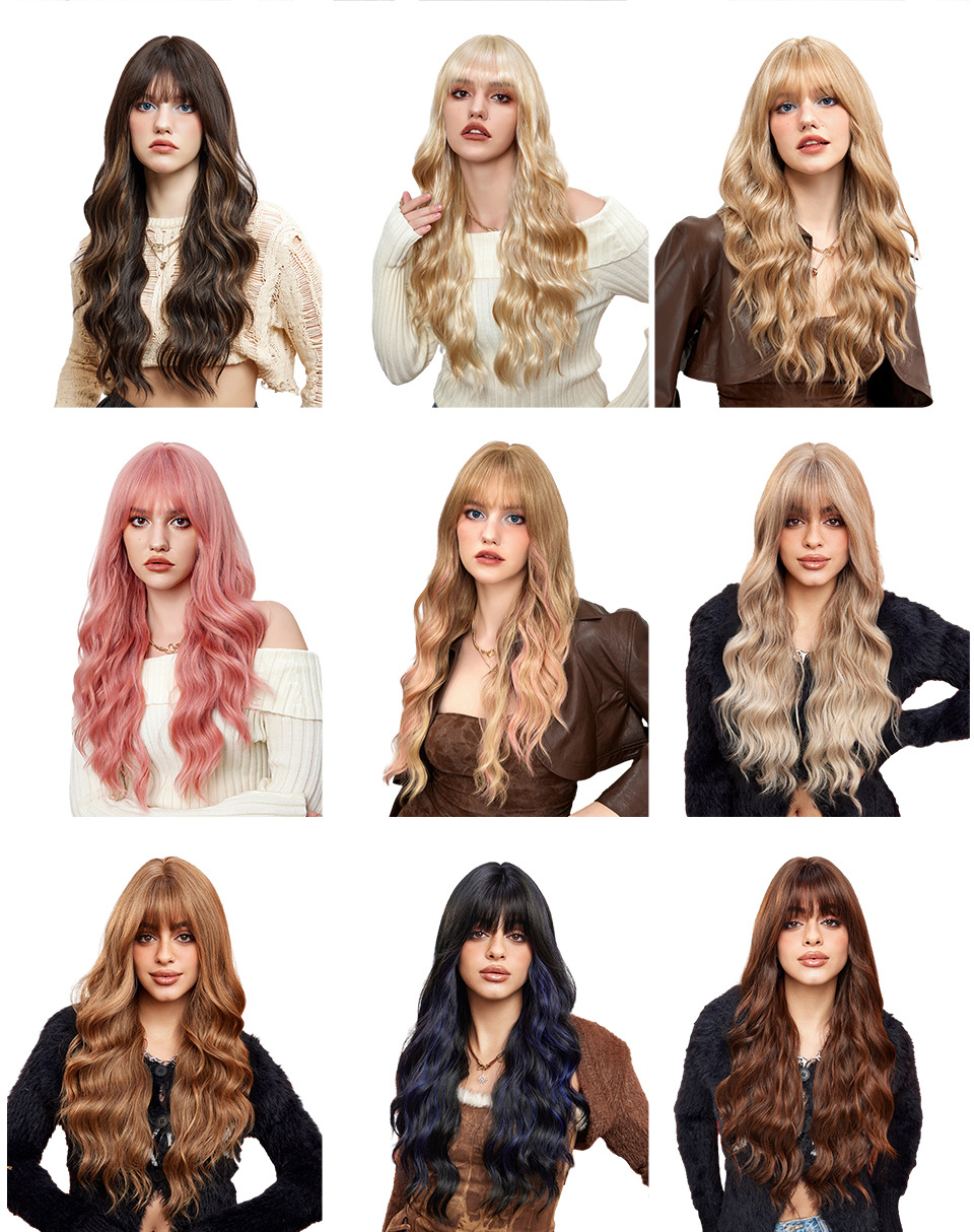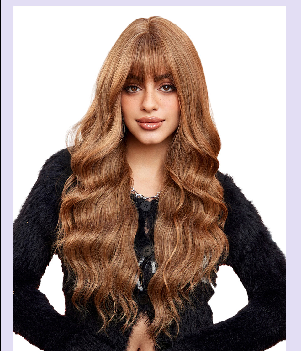 Marrón dorado teñido Rosa dibujos animados aire Bangs onda rizado Pelo Largo elegante mullido perezoso peluca cabeza completa forma