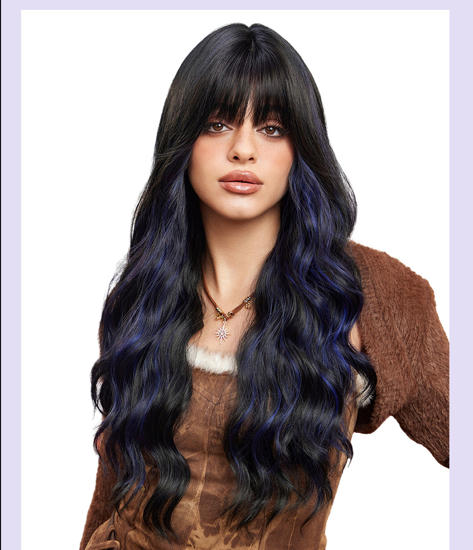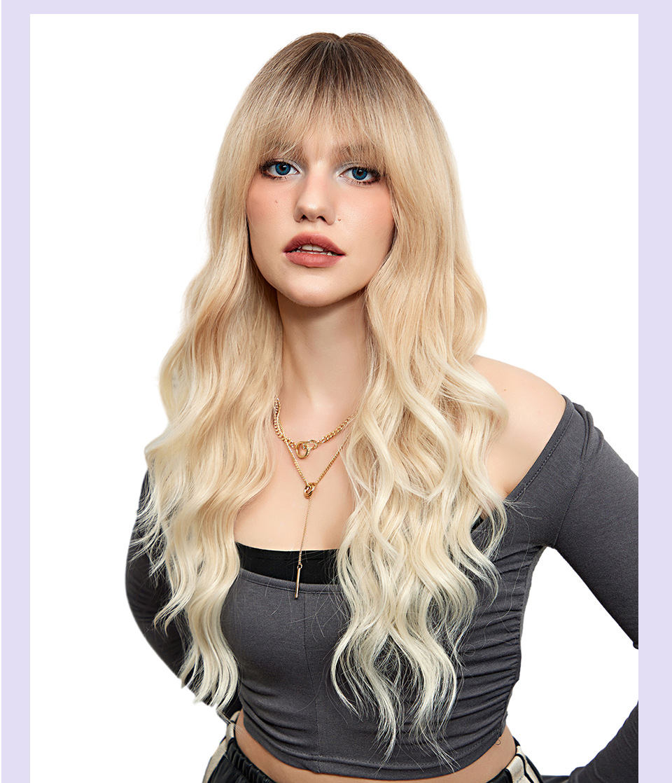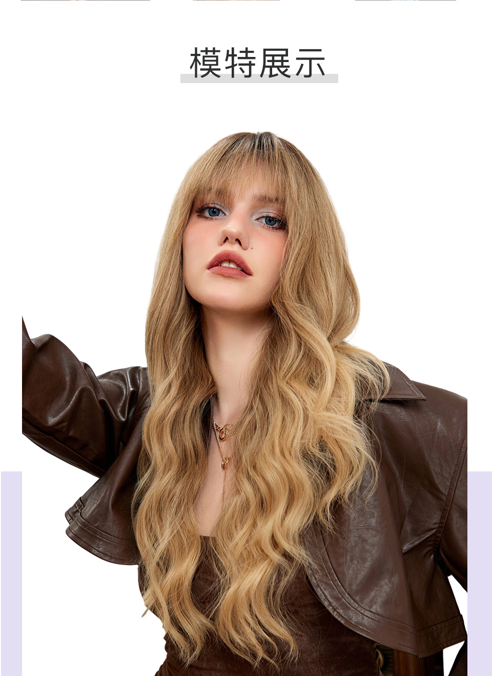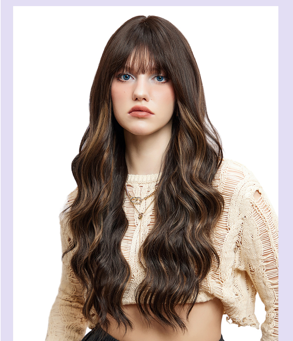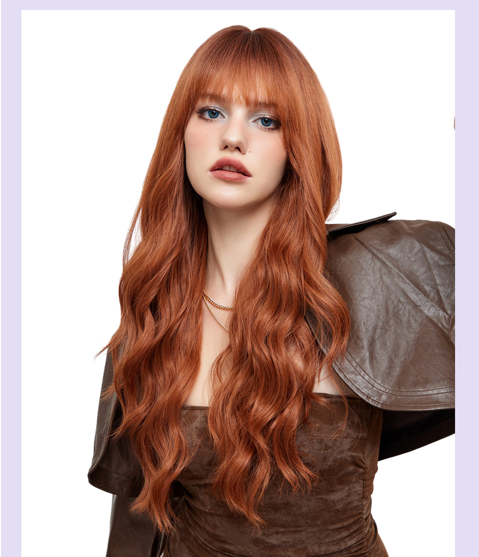 Marrón dorado teñido Rosa dibujos animados aire Bangs onda rizado Pelo Largo elegante mullido perezoso peluca cabeza completa forma