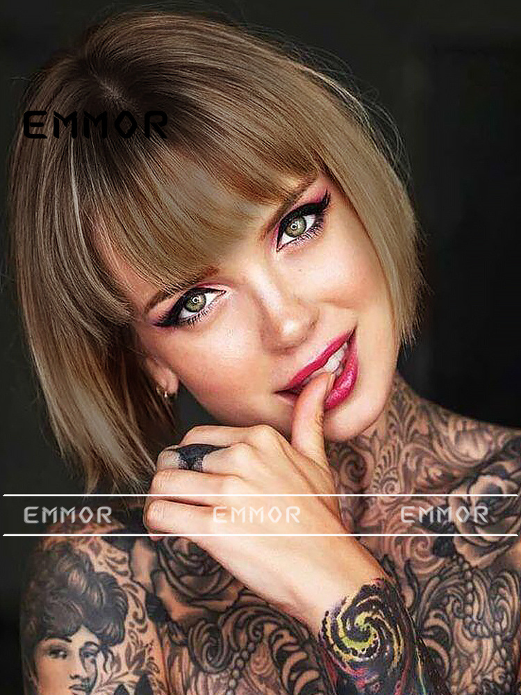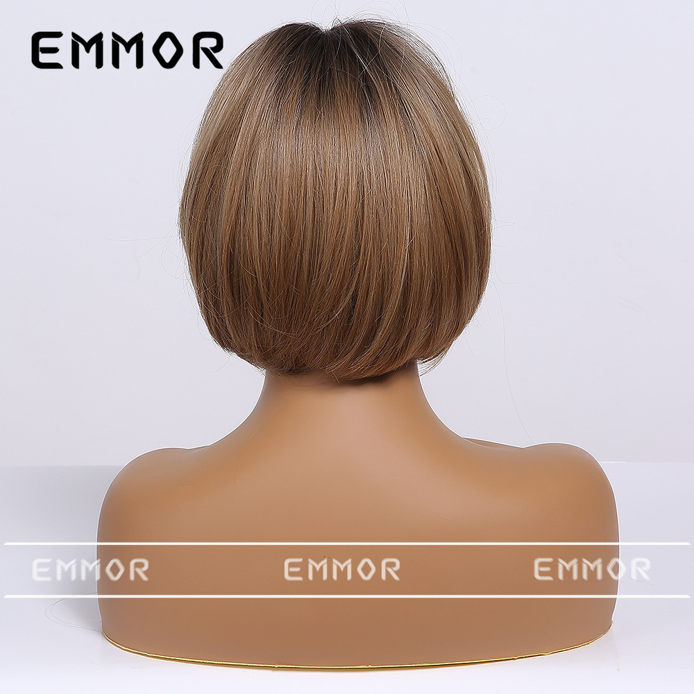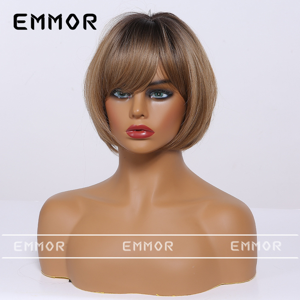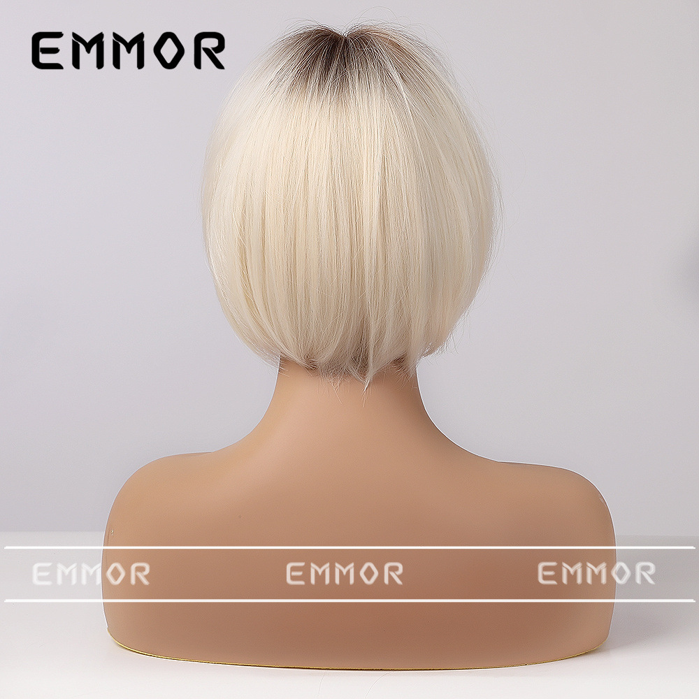 Emmor comercio exterior peluca de moda transfronteriza cabeza teñida cinta de platino negro bangs pelo corto recto peluca de cabeza completa hembra