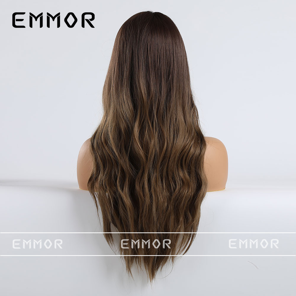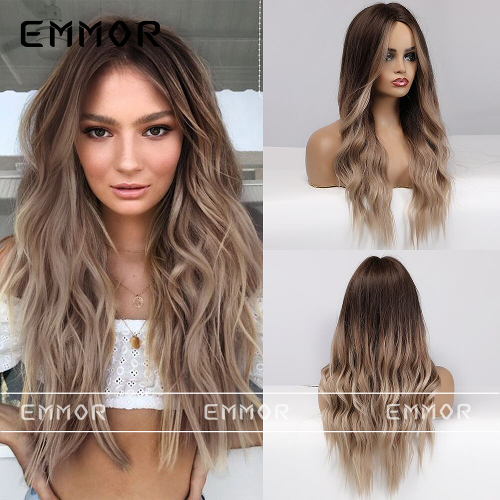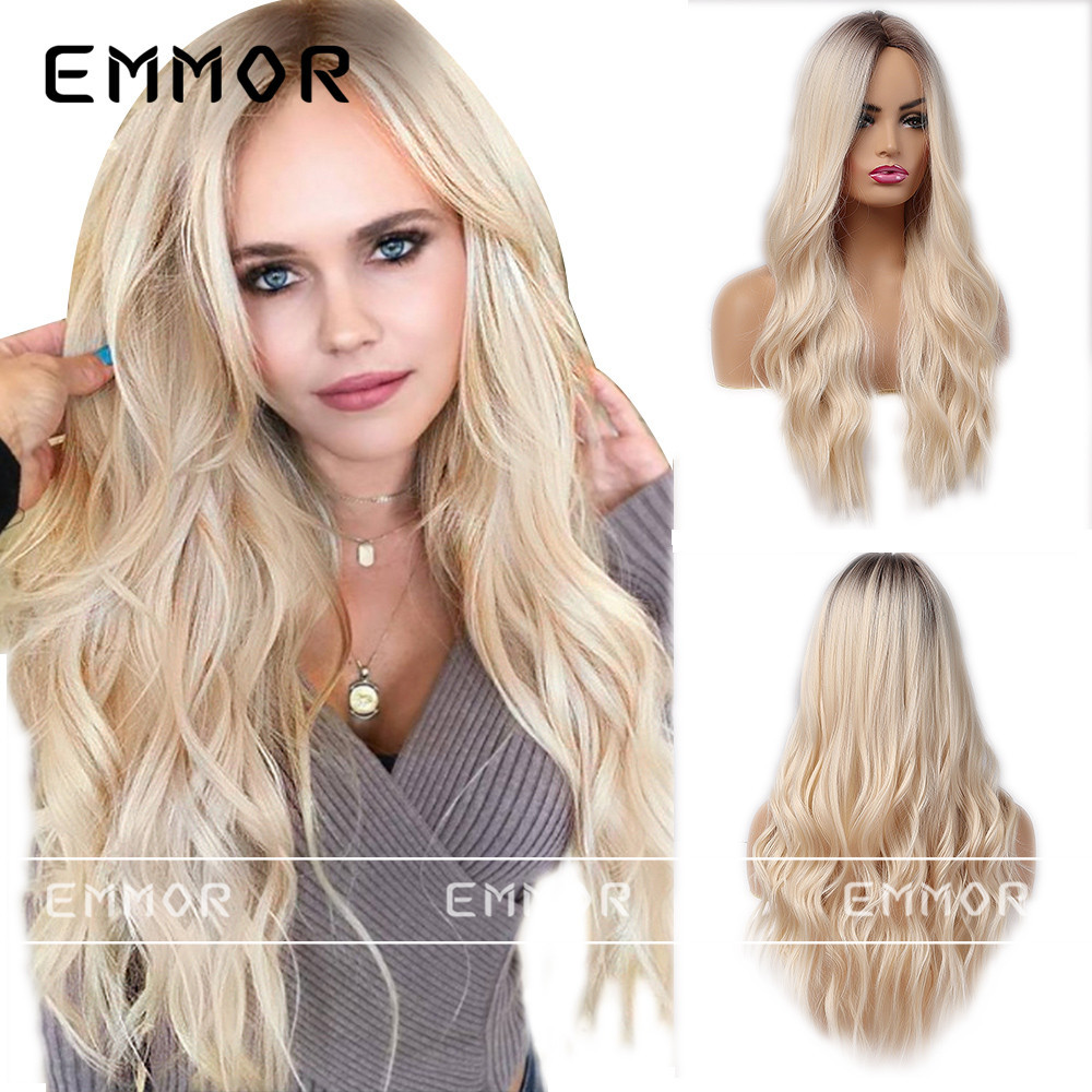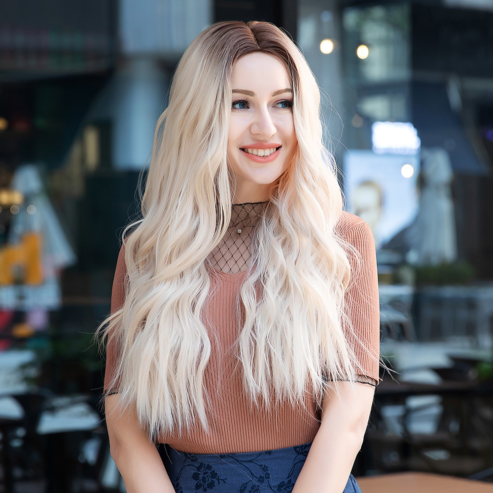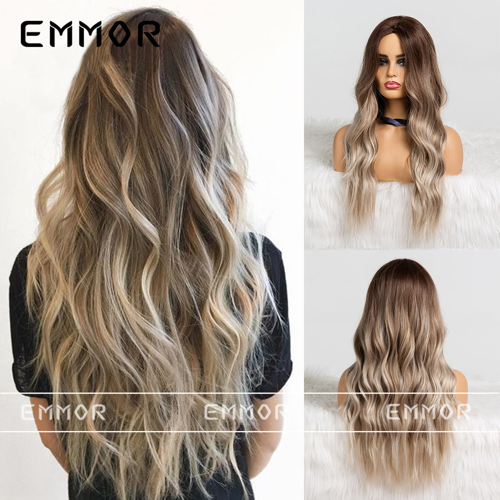 Estilo europeo y americano Amazon teñido gradiente oro natural largo y rizado de las mujeres Fibra química alta temperatura peluca seda fabricante