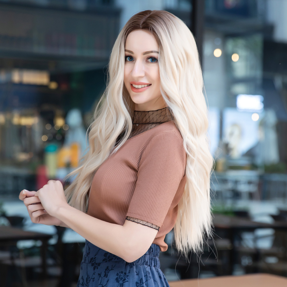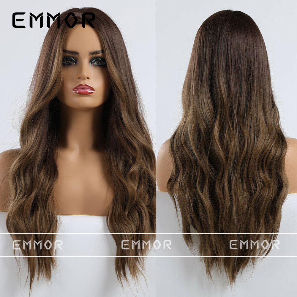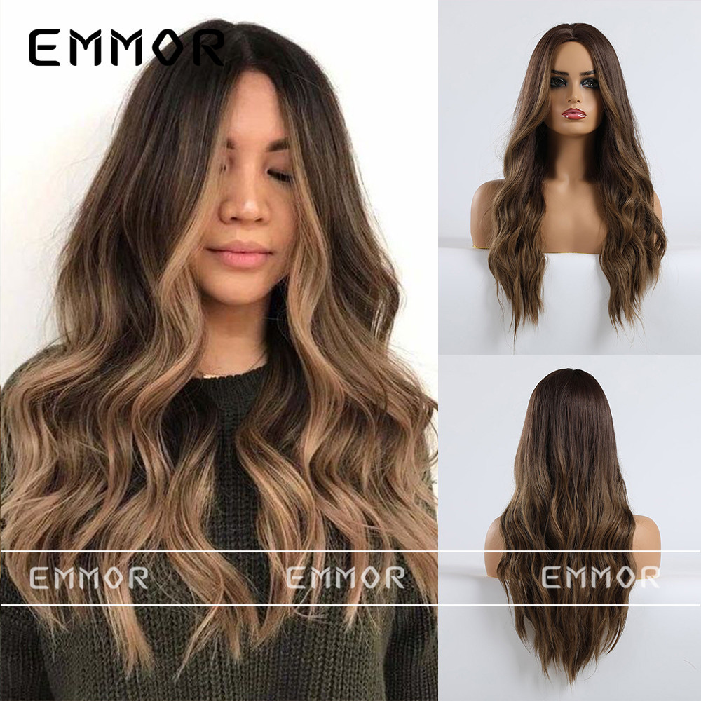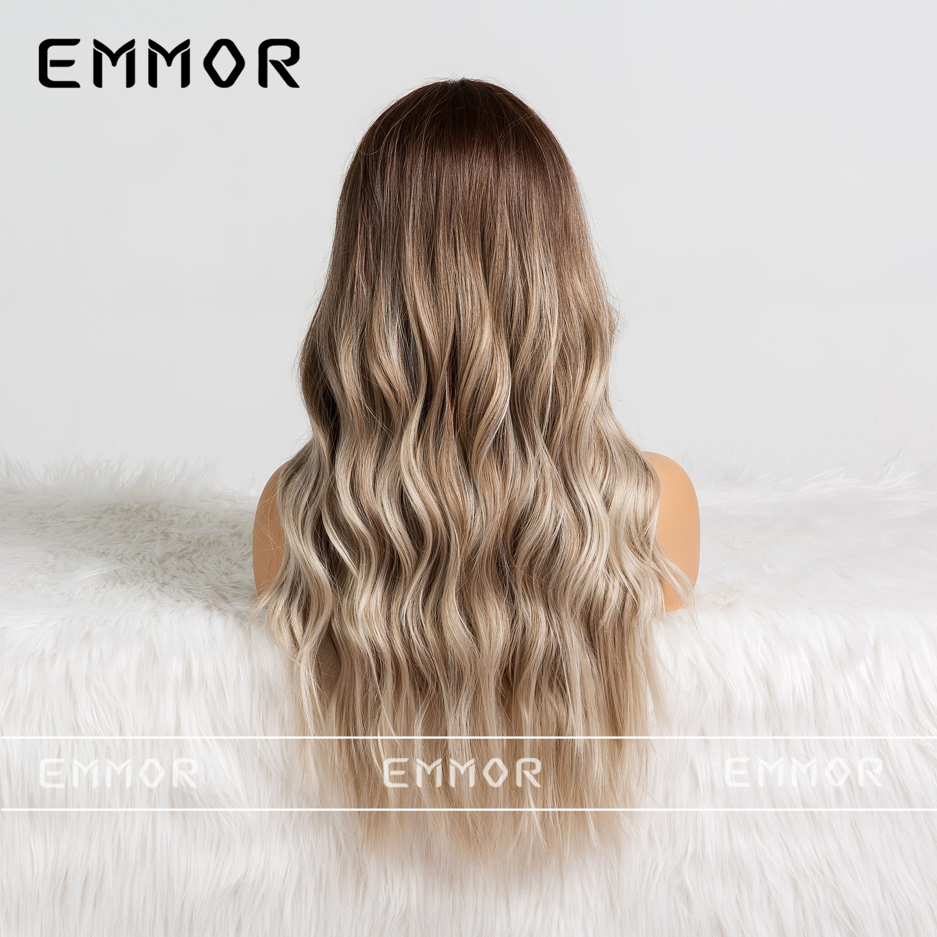 Estilo europeo y americano Amazon teñido gradiente oro natural largo y rizado de las mujeres Fibra química alta temperatura peluca seda fabricante