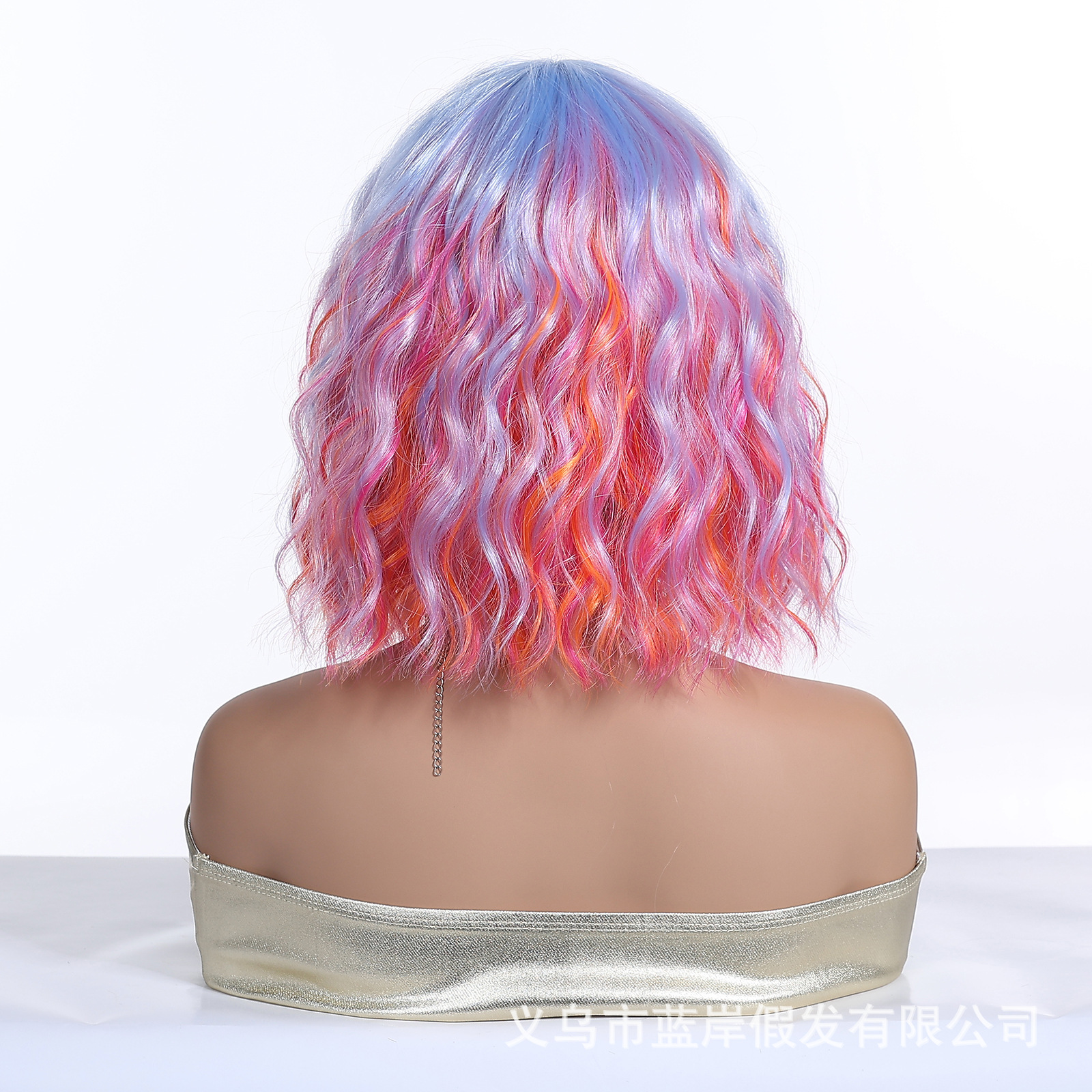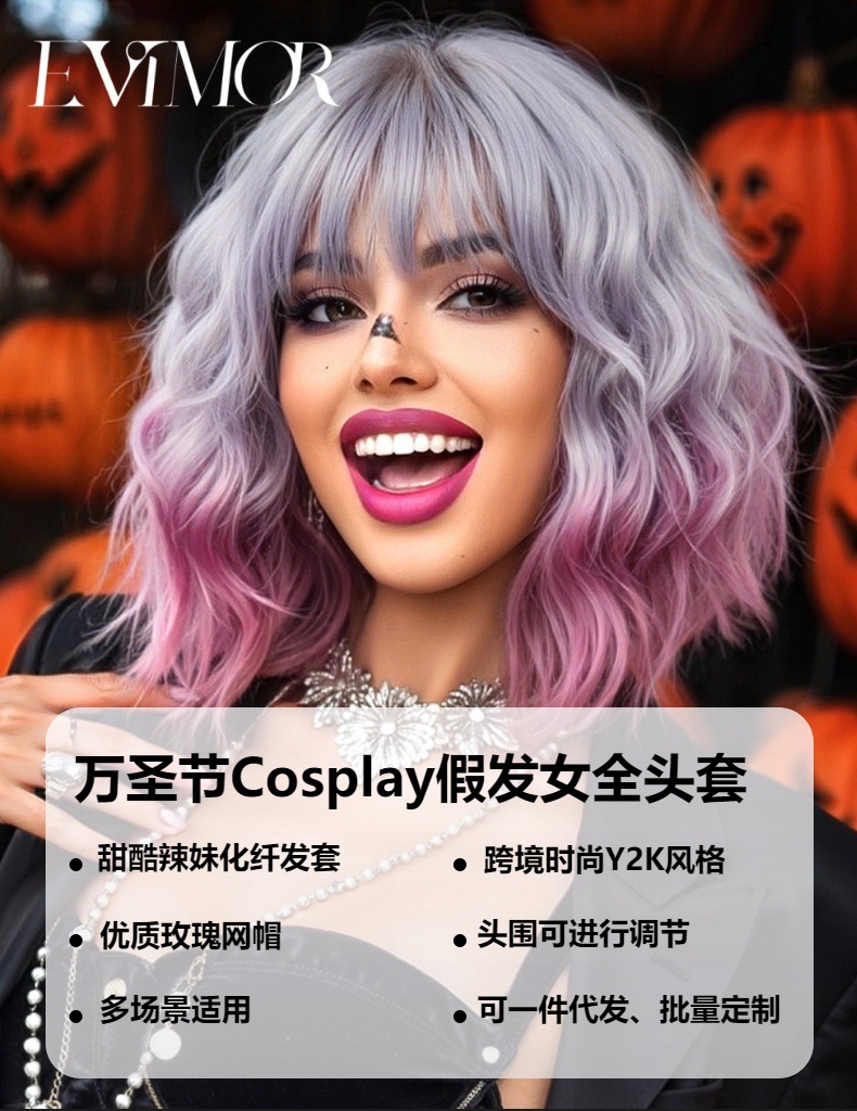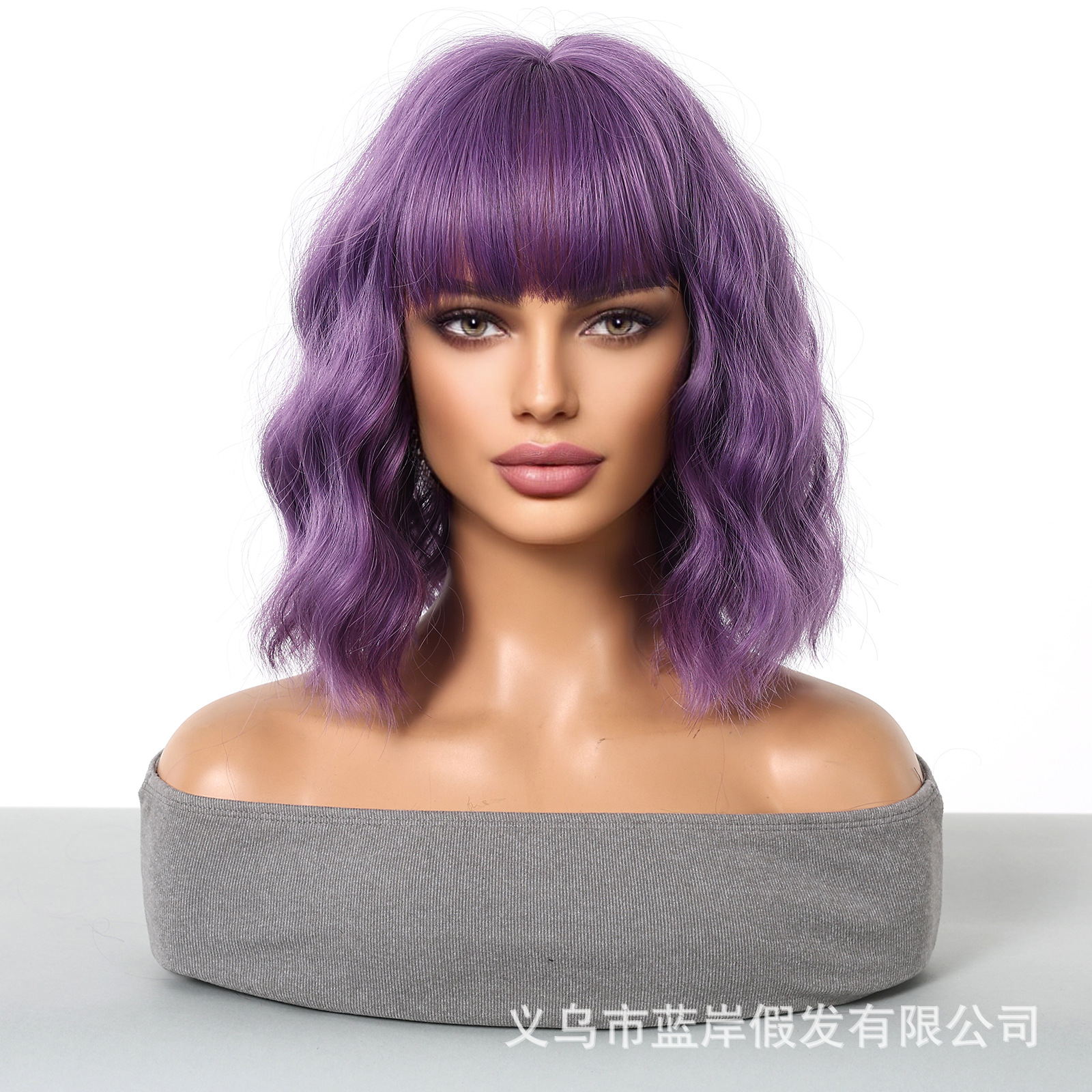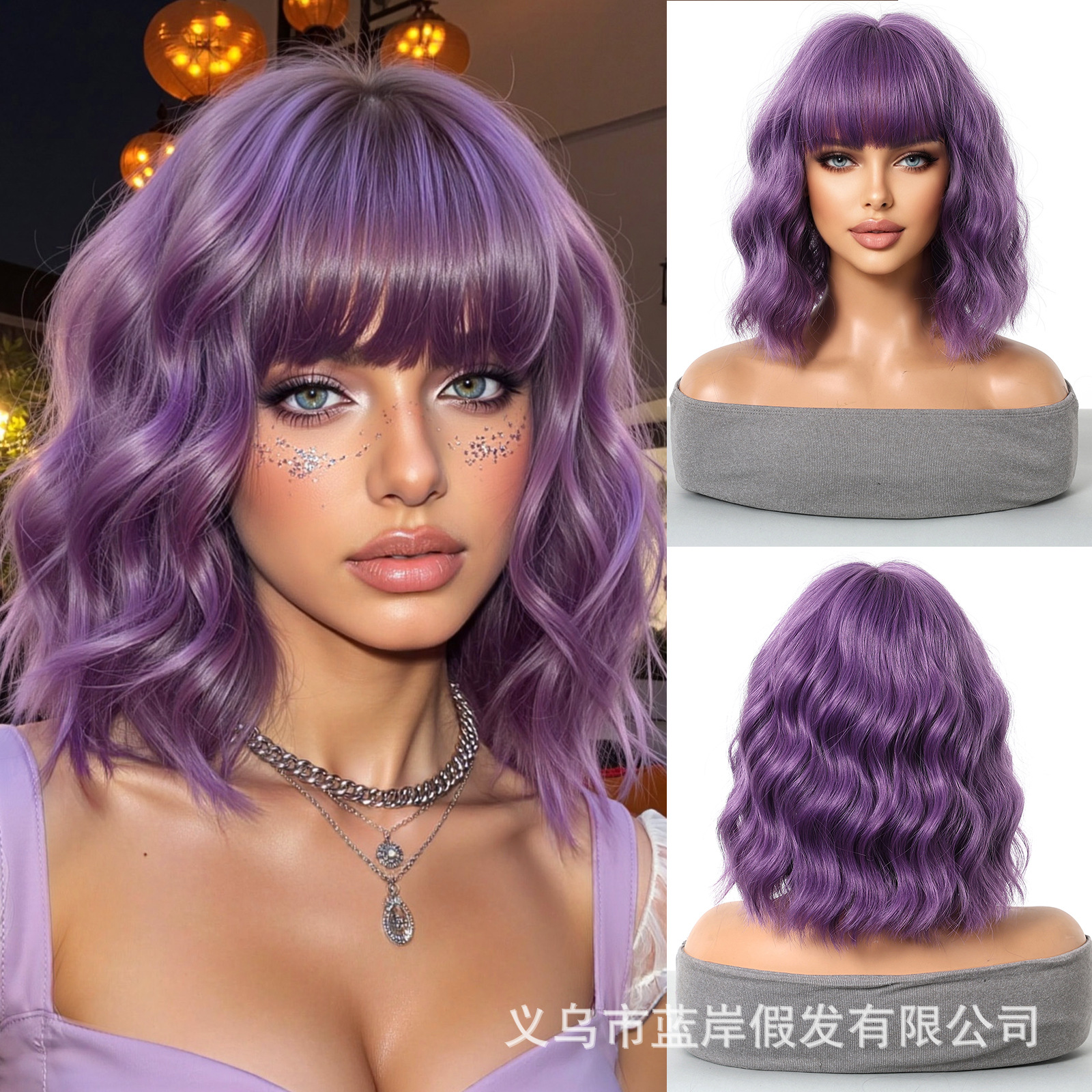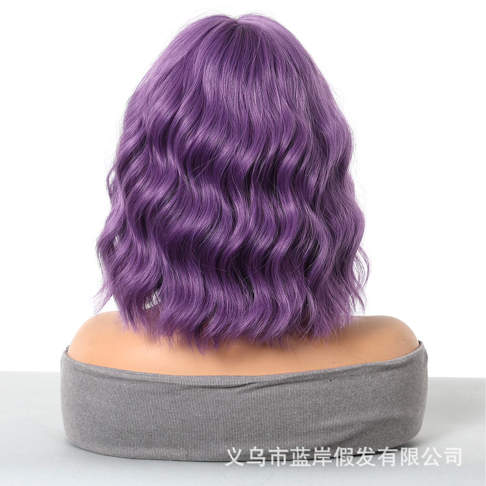 Cosplay de Halloween Color Peluca de pelo corto y rizado Cubierta de cabeza femenina Sueño de onda púrpura Cabeza de onda Funda de pelo de fibra química Wigs