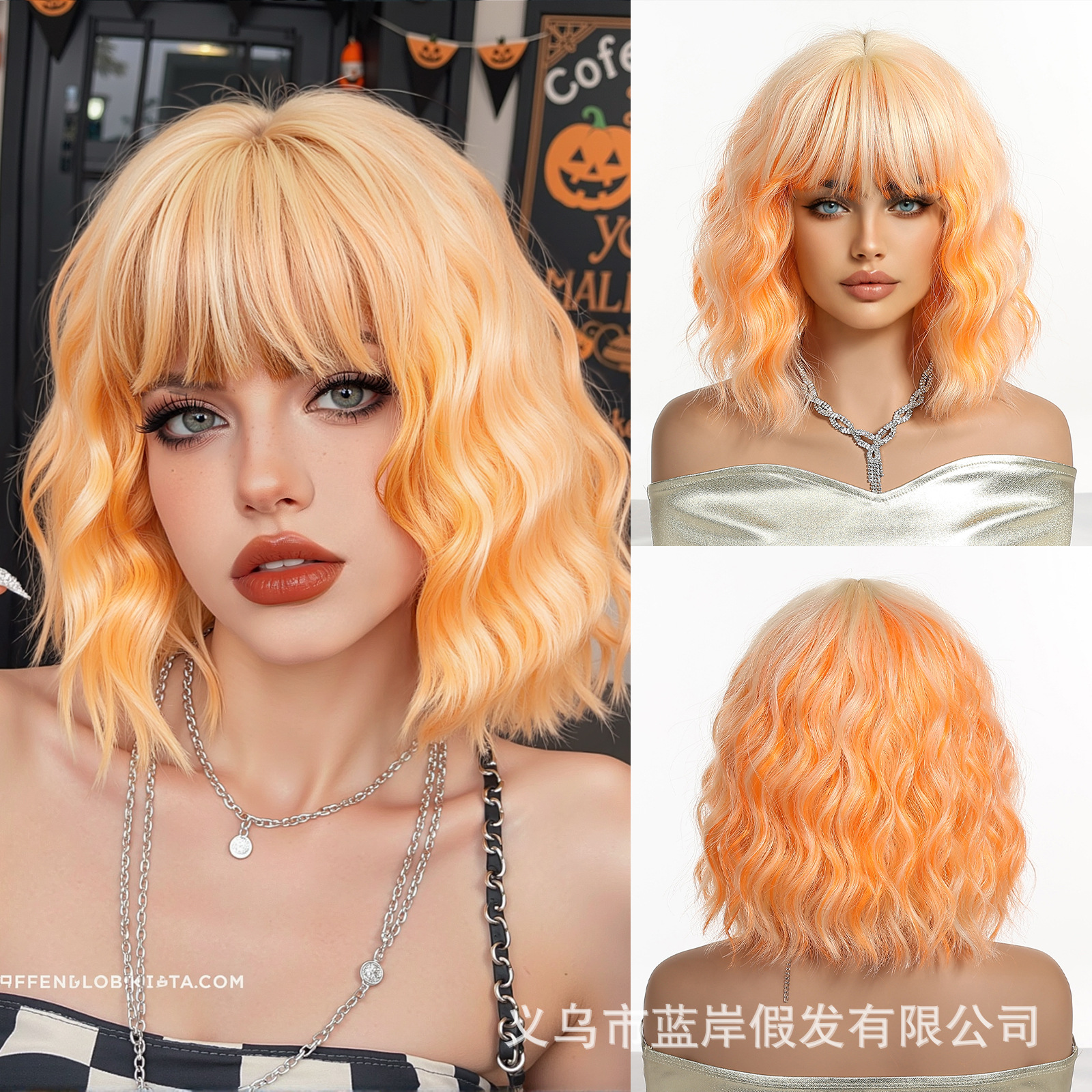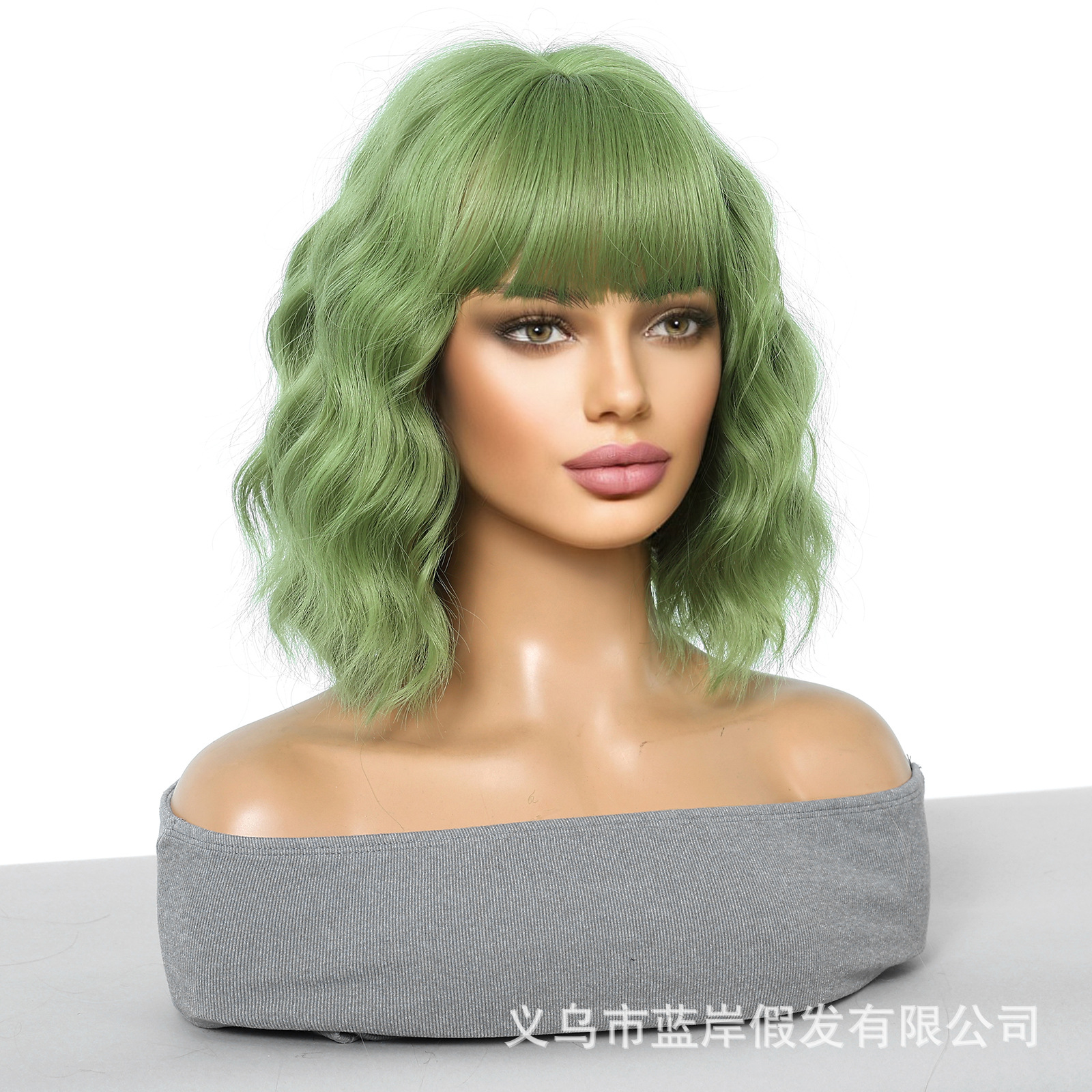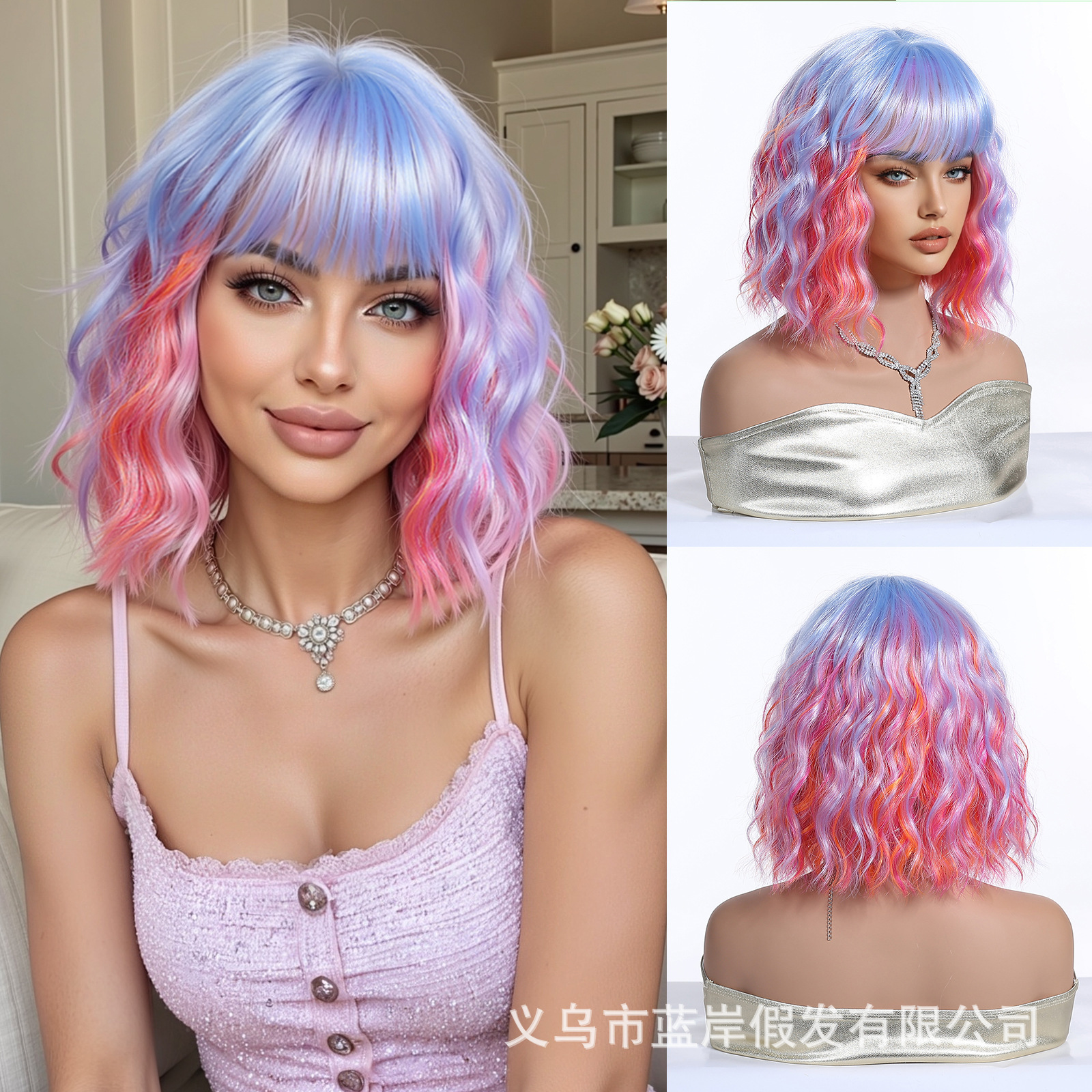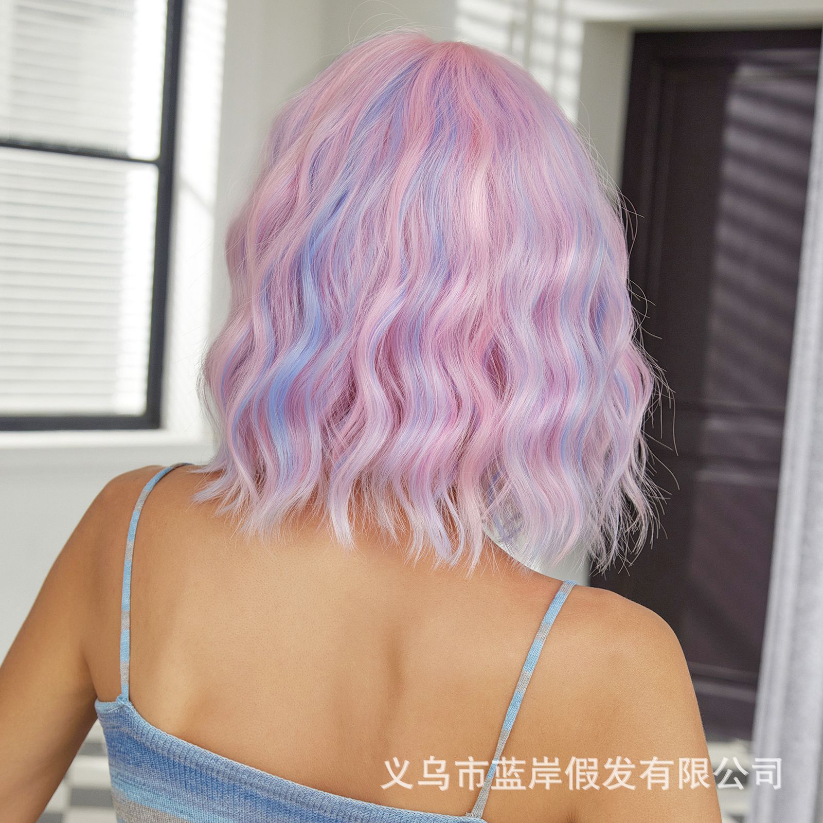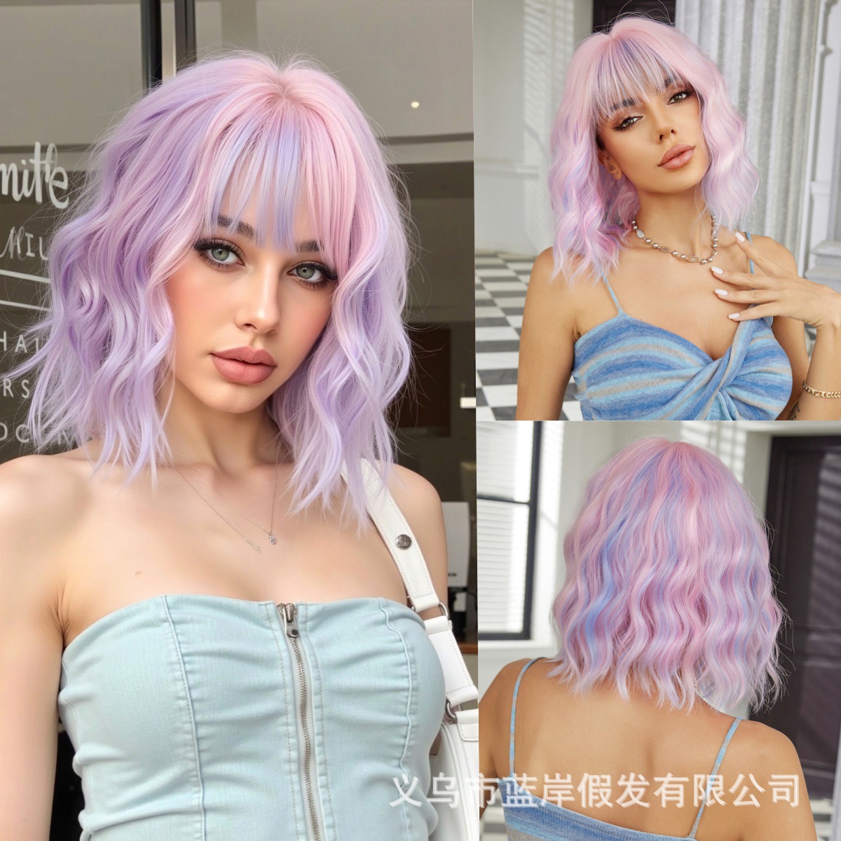 Cosplay de Halloween Color Peluca de pelo corto y rizado Cubierta de cabeza femenina Sueño de onda púrpura Cabeza de onda Funda de pelo de fibra química Wigs