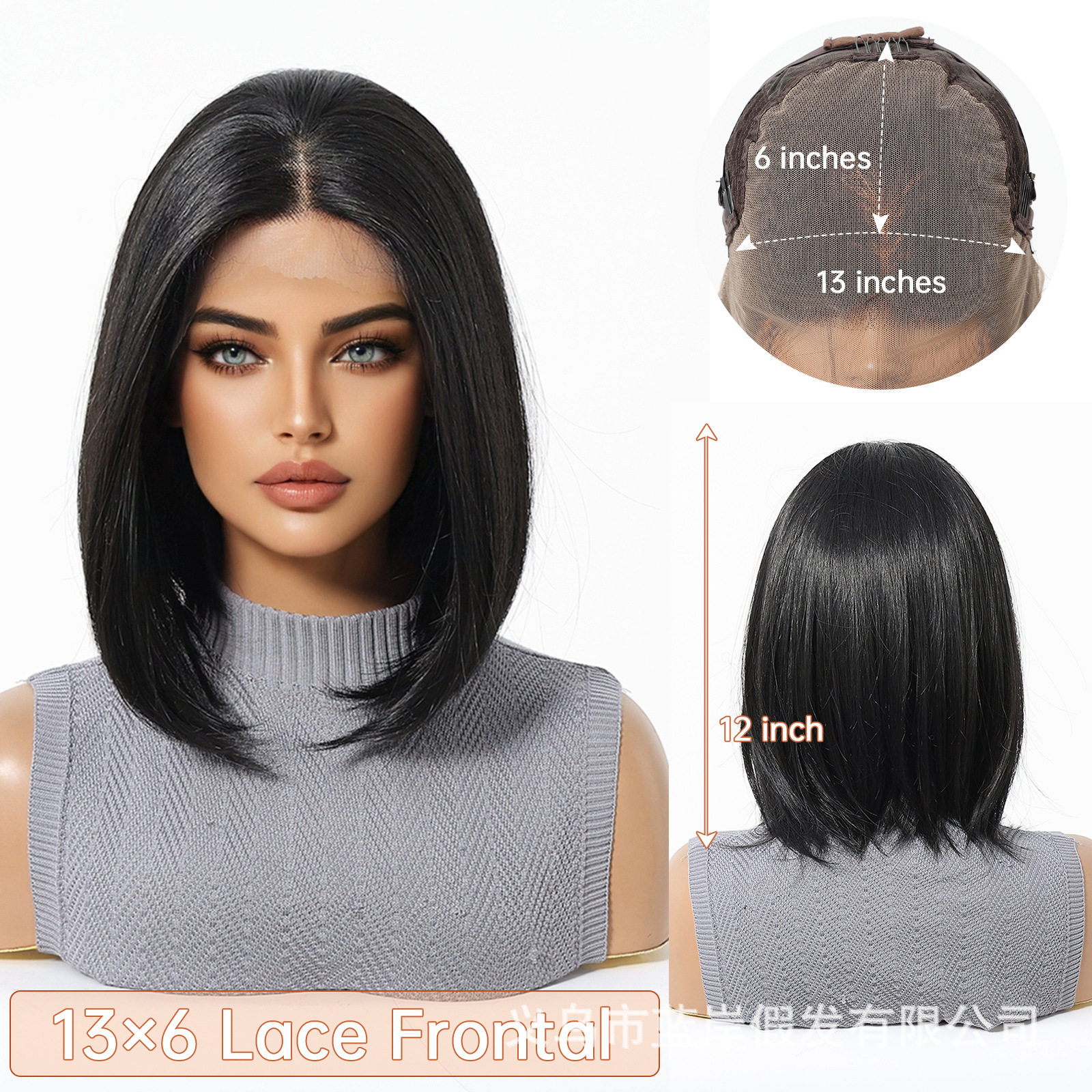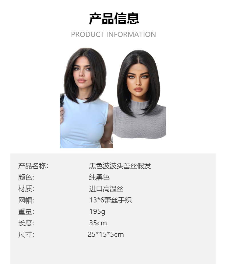 Nuevo producto transfronterizo 13*6 peluca de encaje de área grande verano negro cabello corto esponjoso natural cubierta de cabeza Bobo