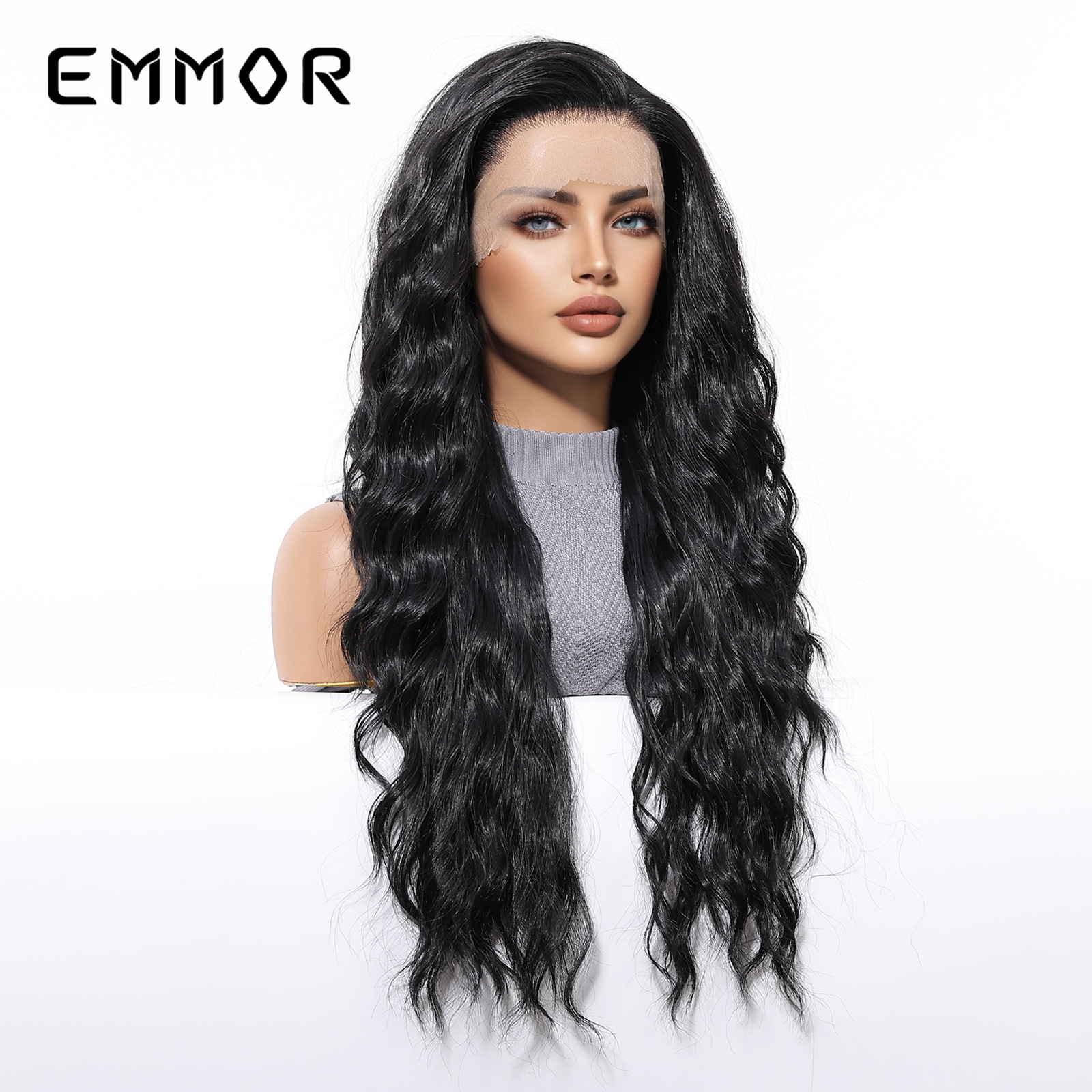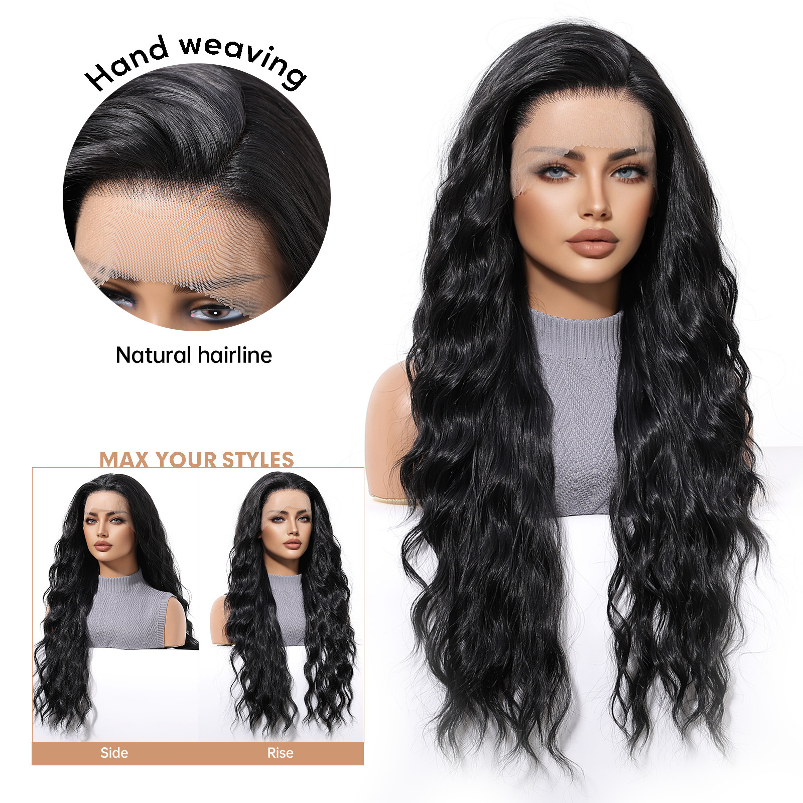 Nuevo producto transfronterizo 13X6 seda importada de gran área, negro, gran onda, cabello largo y rizado, peluca de encaje, cabello completo