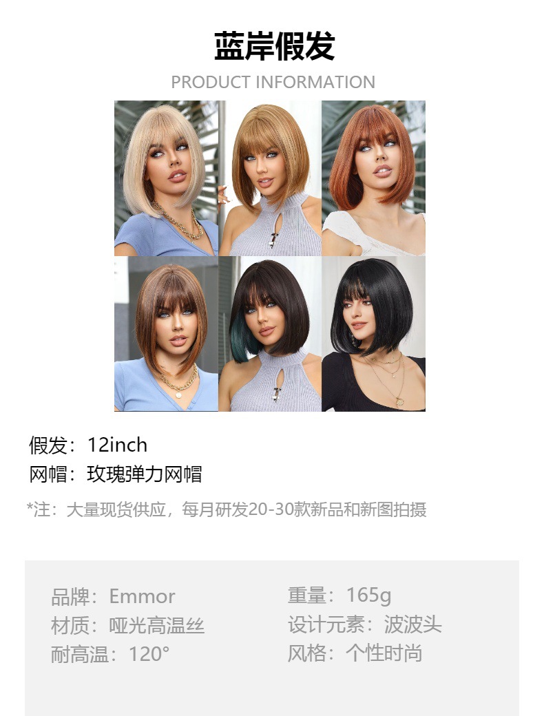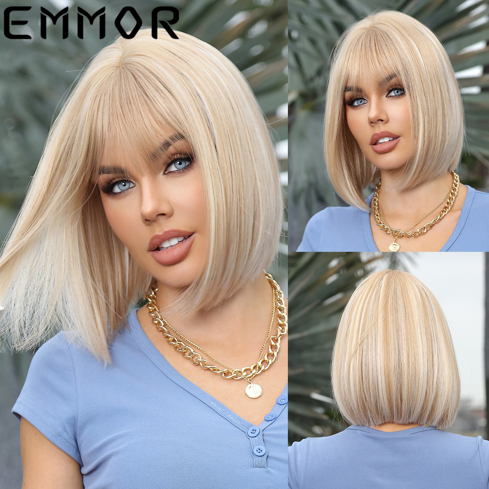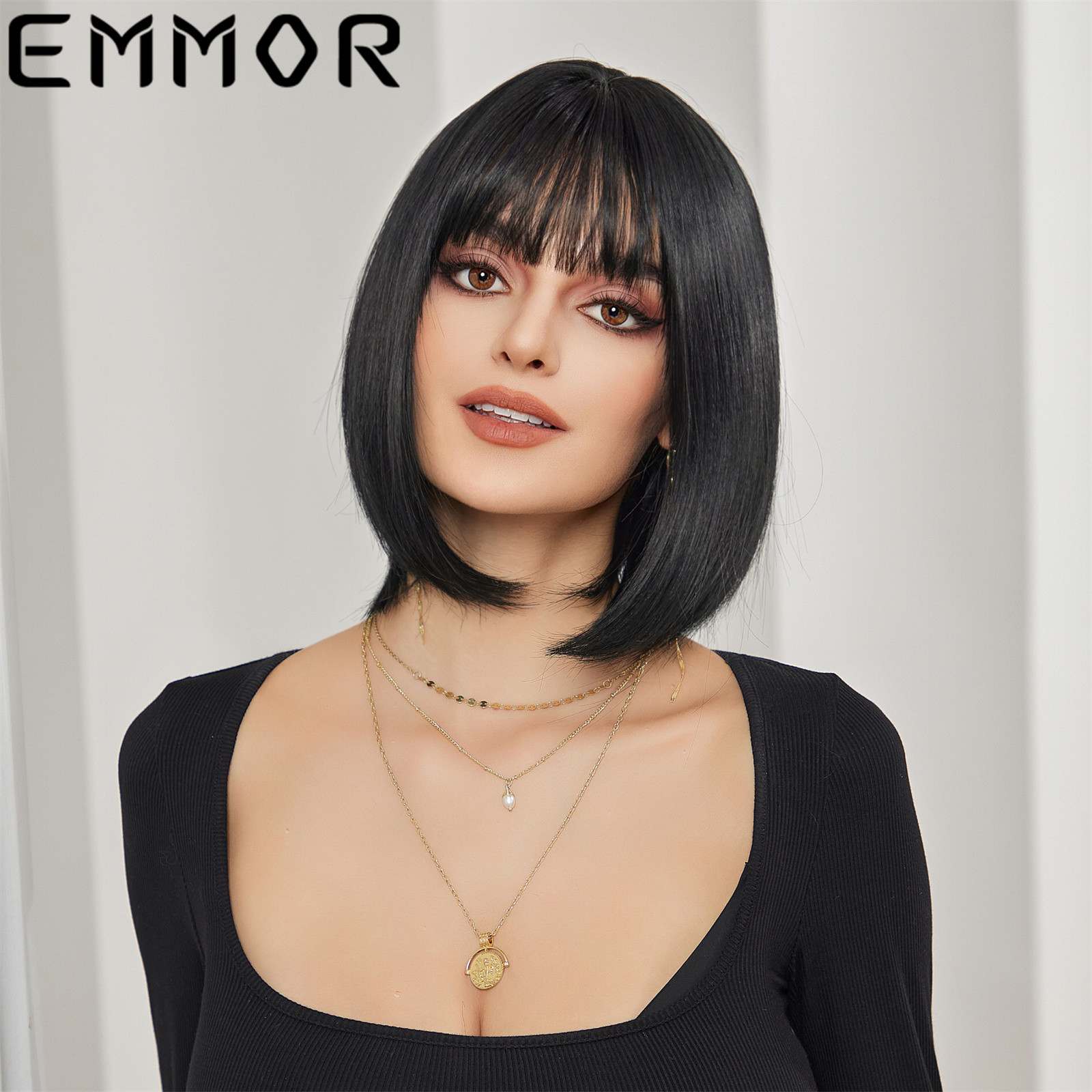 Spot peluca de pelo corto europea y americana, mujer pura, cabello liso, cabeza de Bobo, flequillo de aire, reducción de edad, nuevo estilo, cubierta completa, wigs