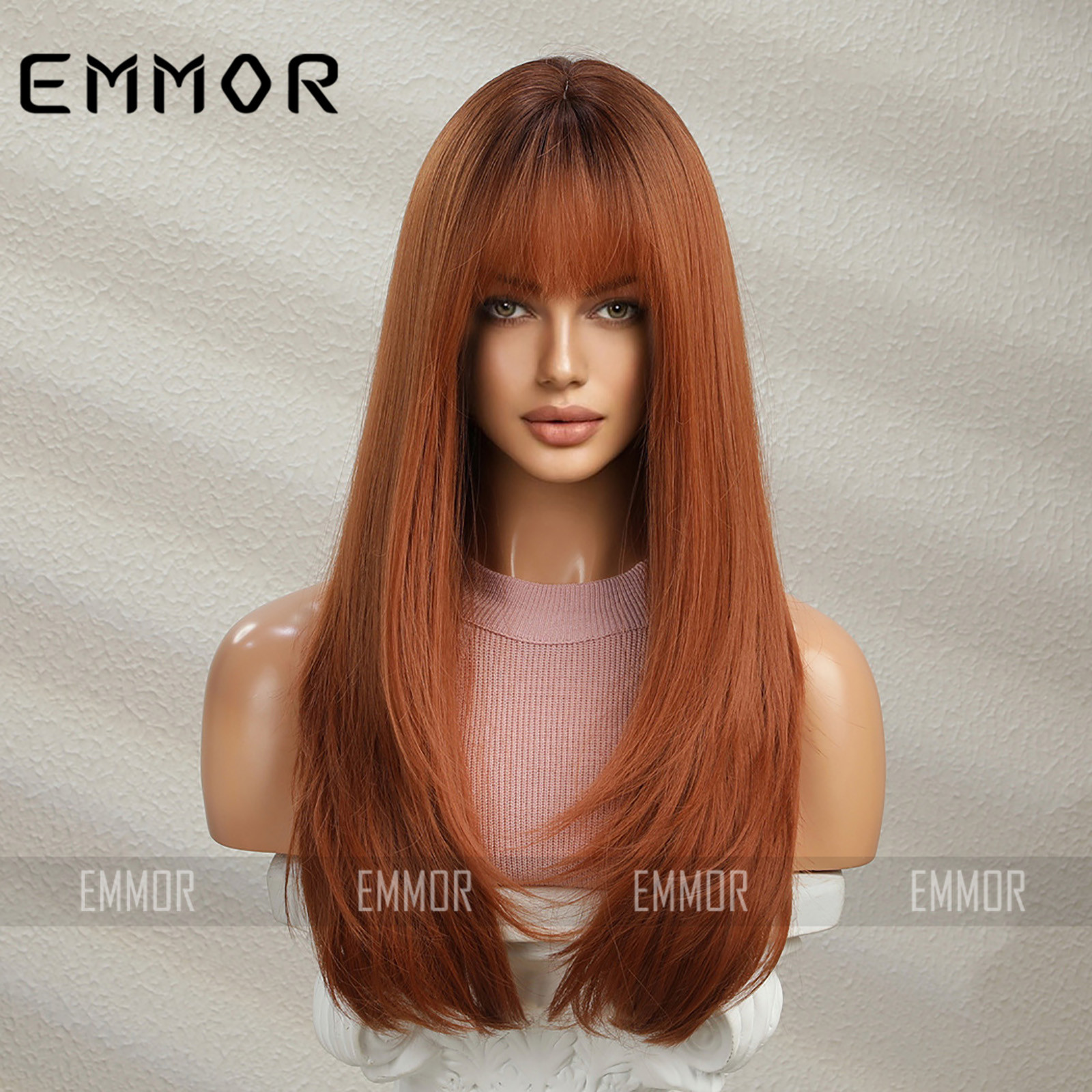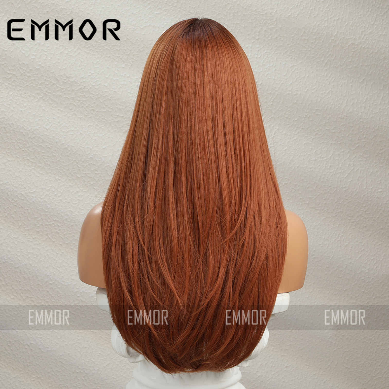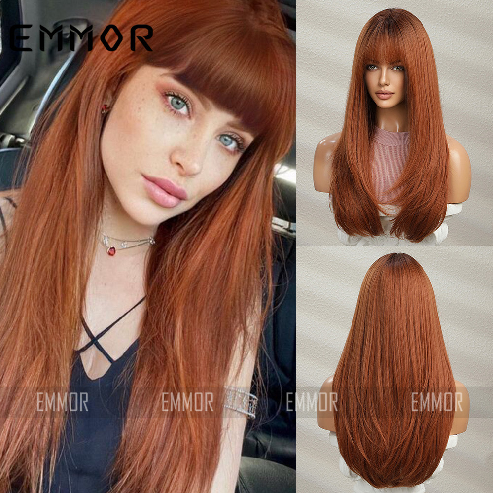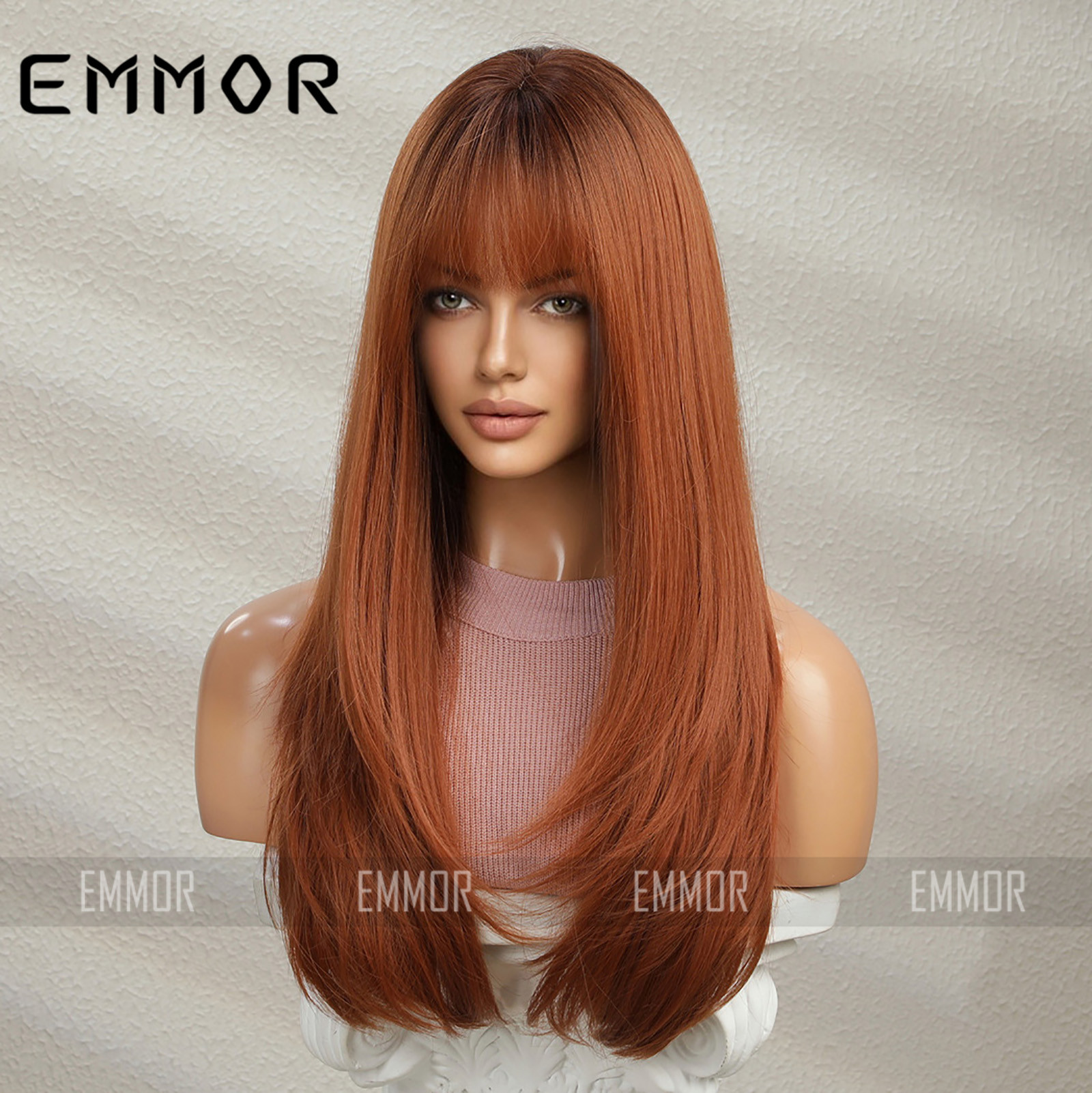 Peluca europea y americana de las mujeres pelo largo y recto sucio naranja Internet celebridad ancla fresco de moda color Lolita pelo largo y recto cubierta de la cabeza completa