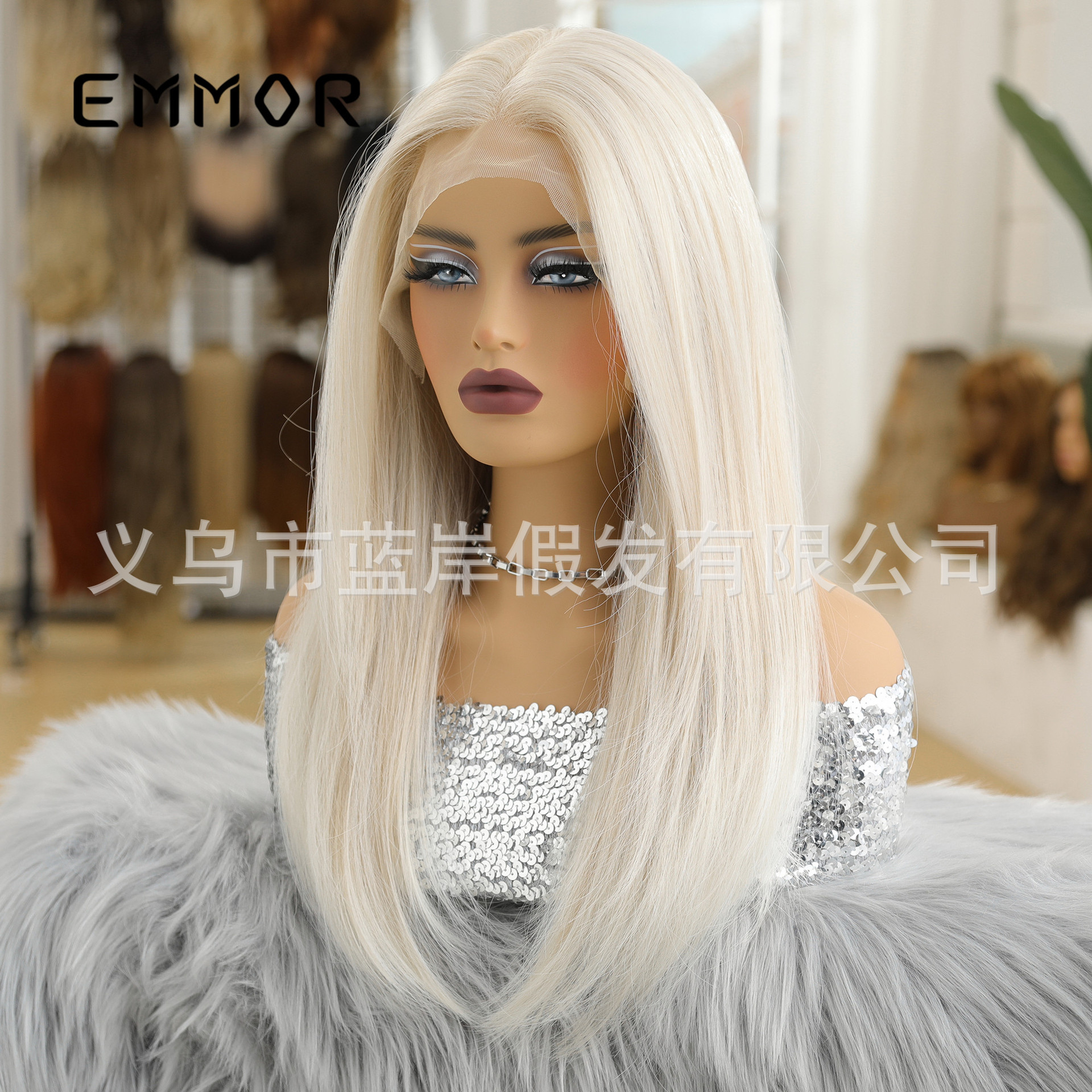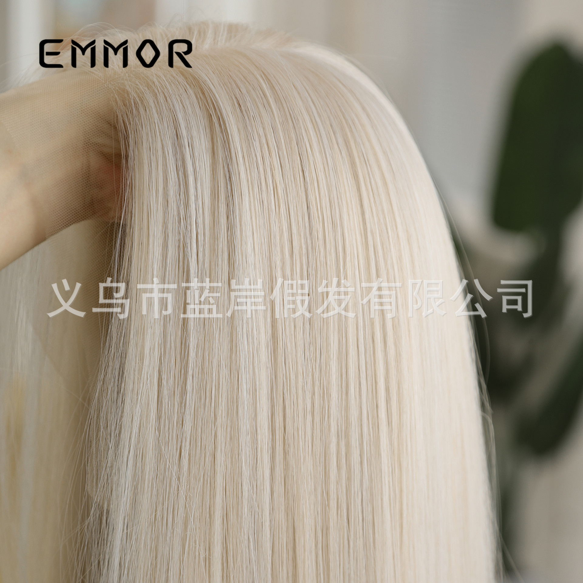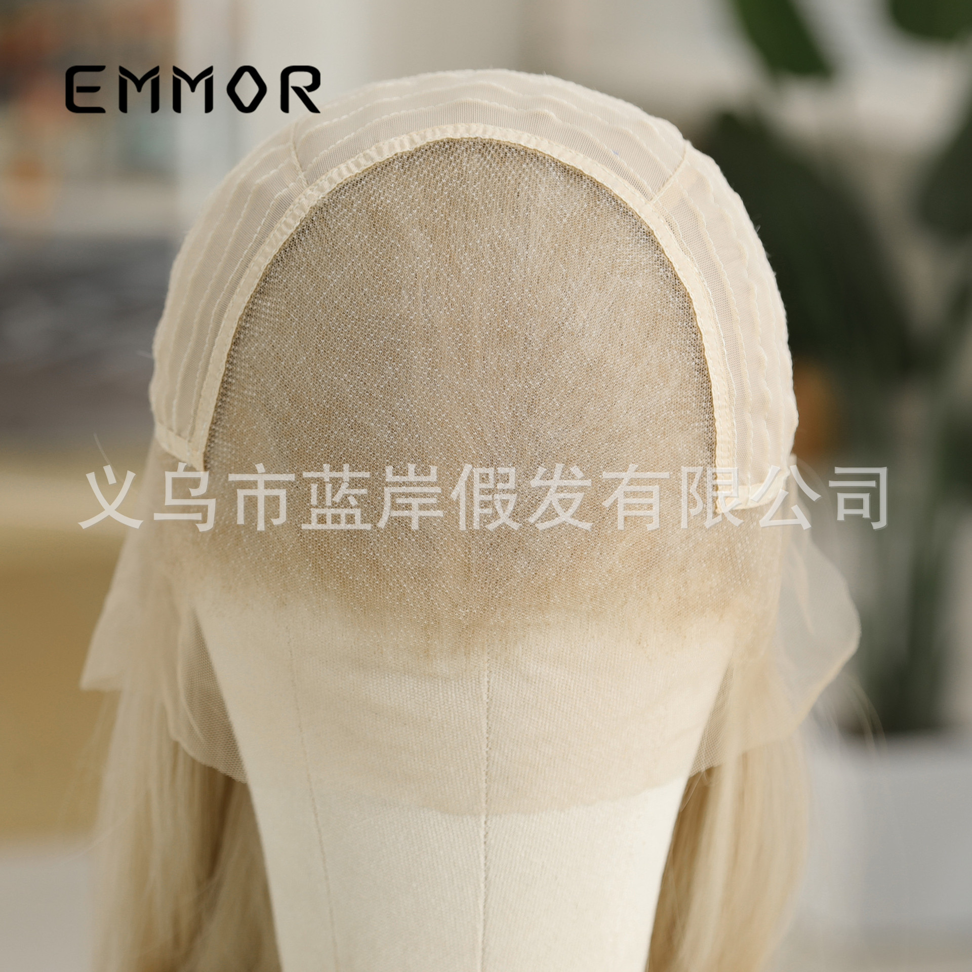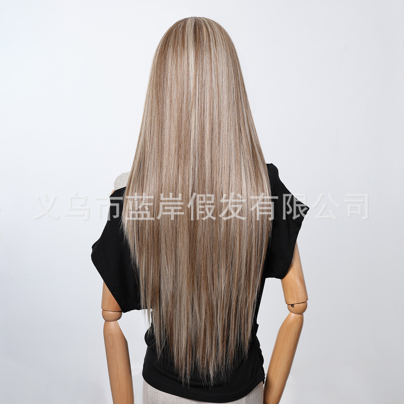 Peluca tejida a mano de encaje de gran área transfronteriza 13*6, cabello largo y liso dorado, costura libre, estilo de temperamento, punto de fábrica