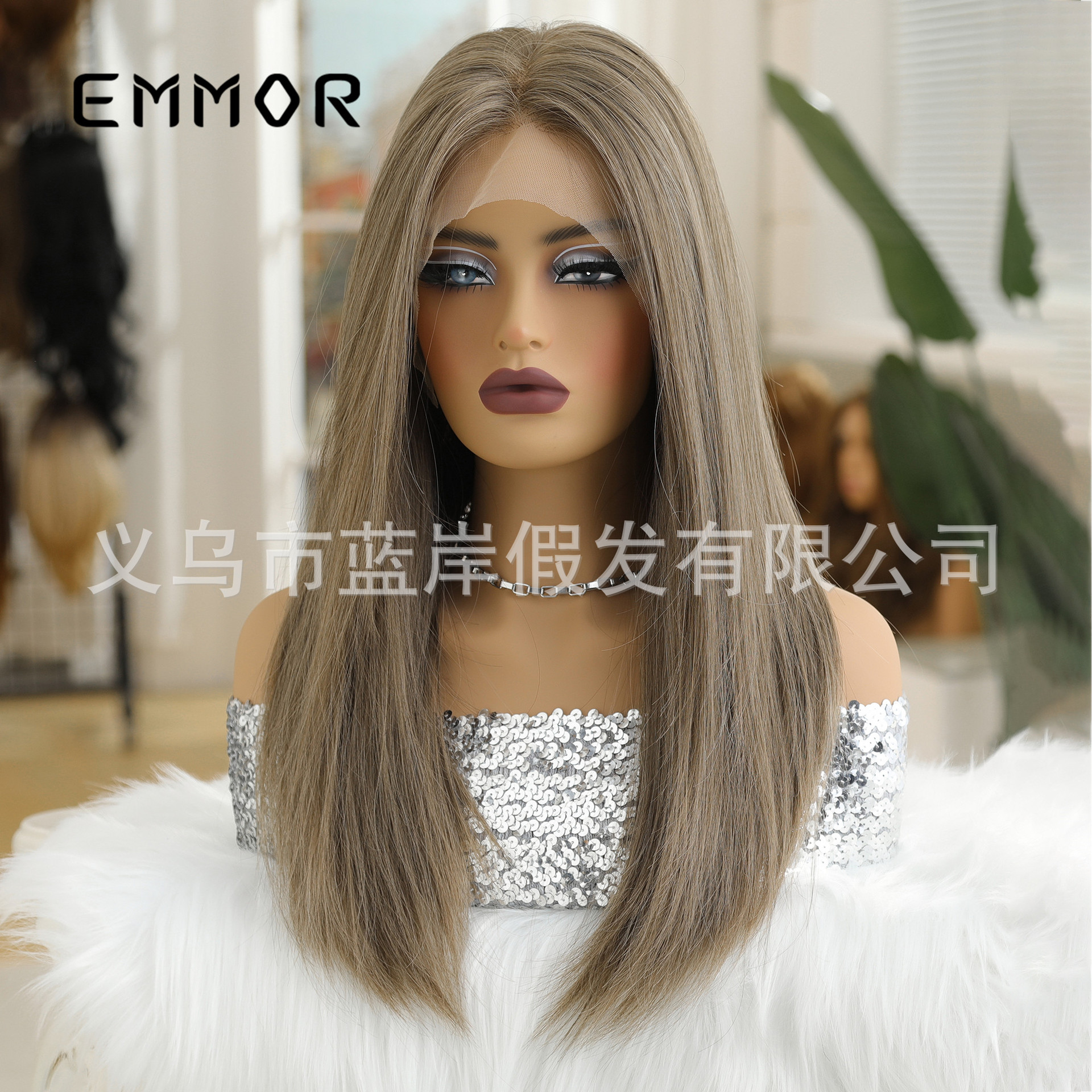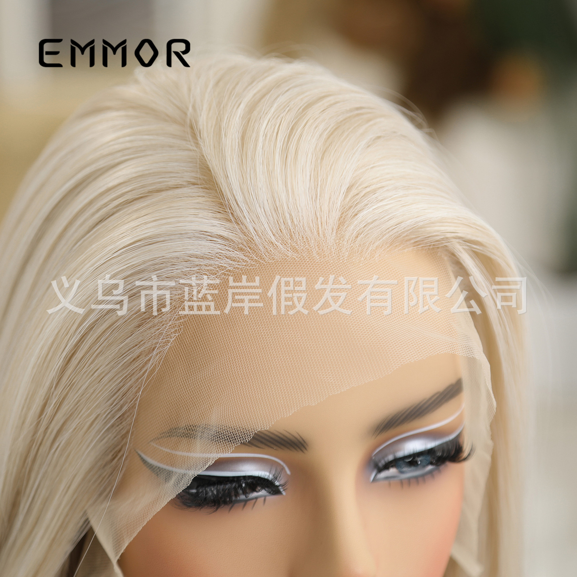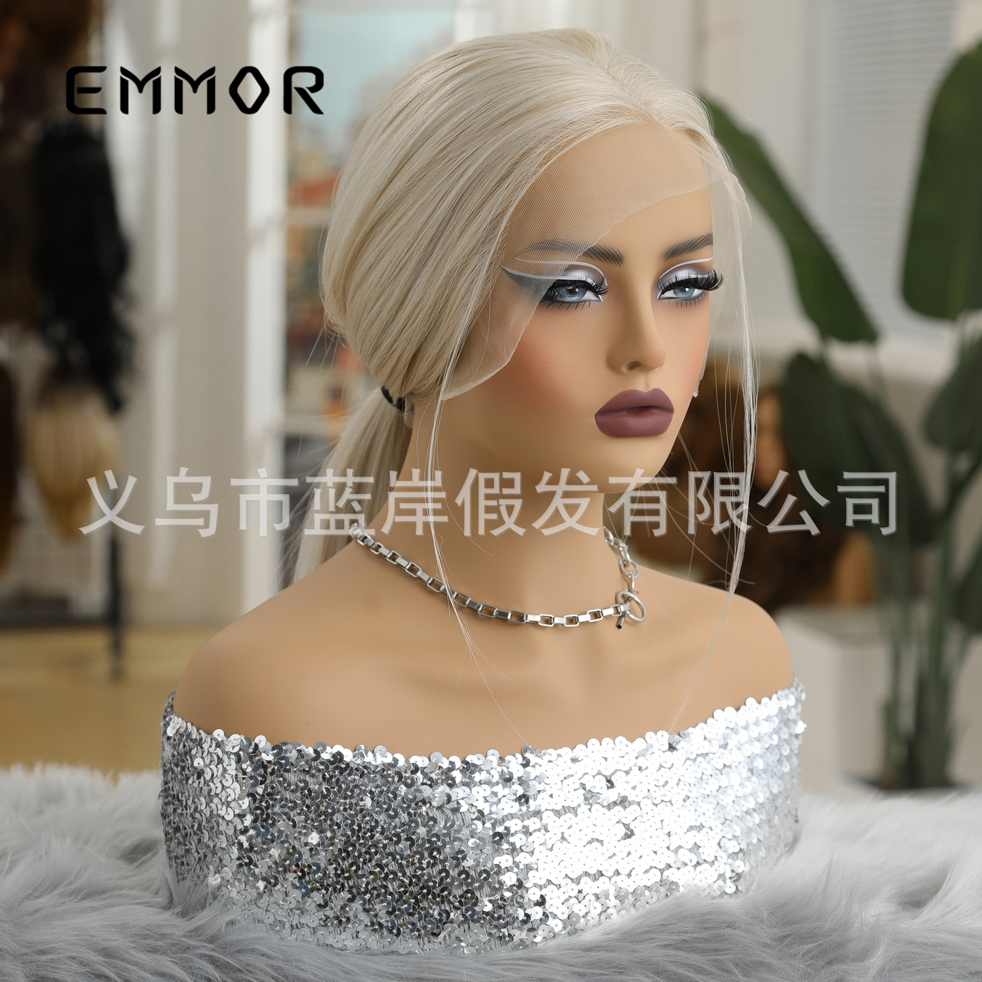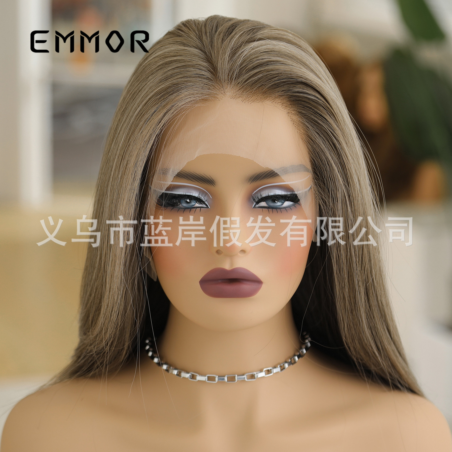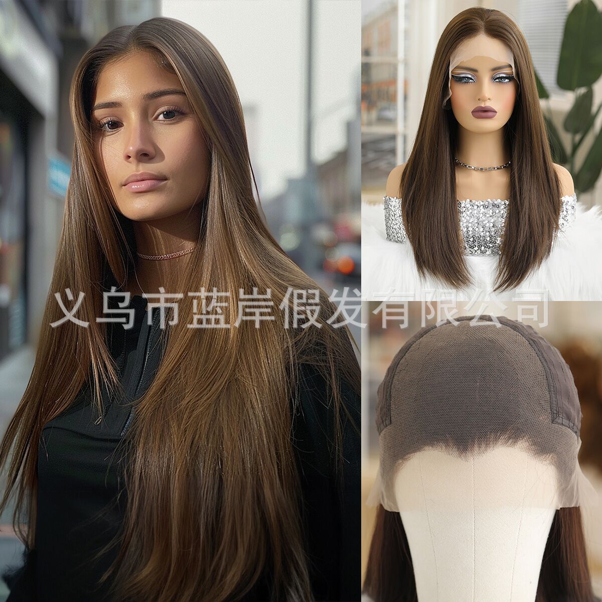 Peluca tejida a mano de encaje de gran área transfronteriza 13*6, cabello largo y liso dorado, costura libre, estilo de temperamento, punto de fábrica