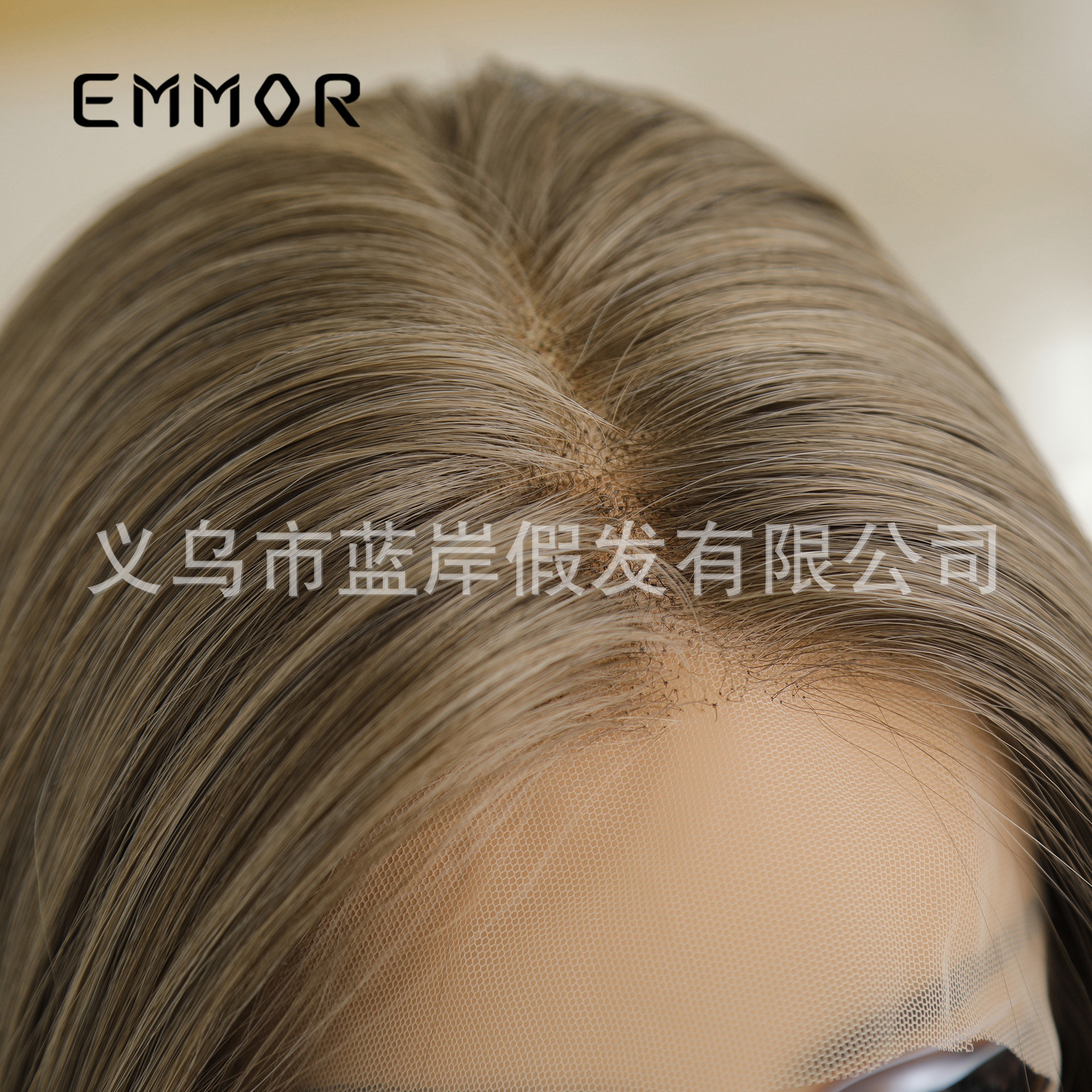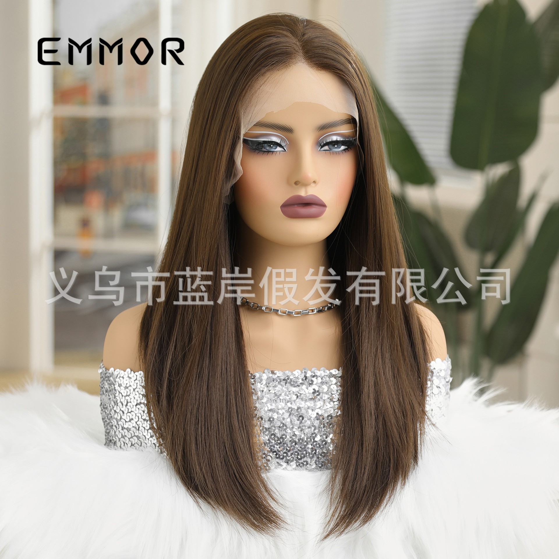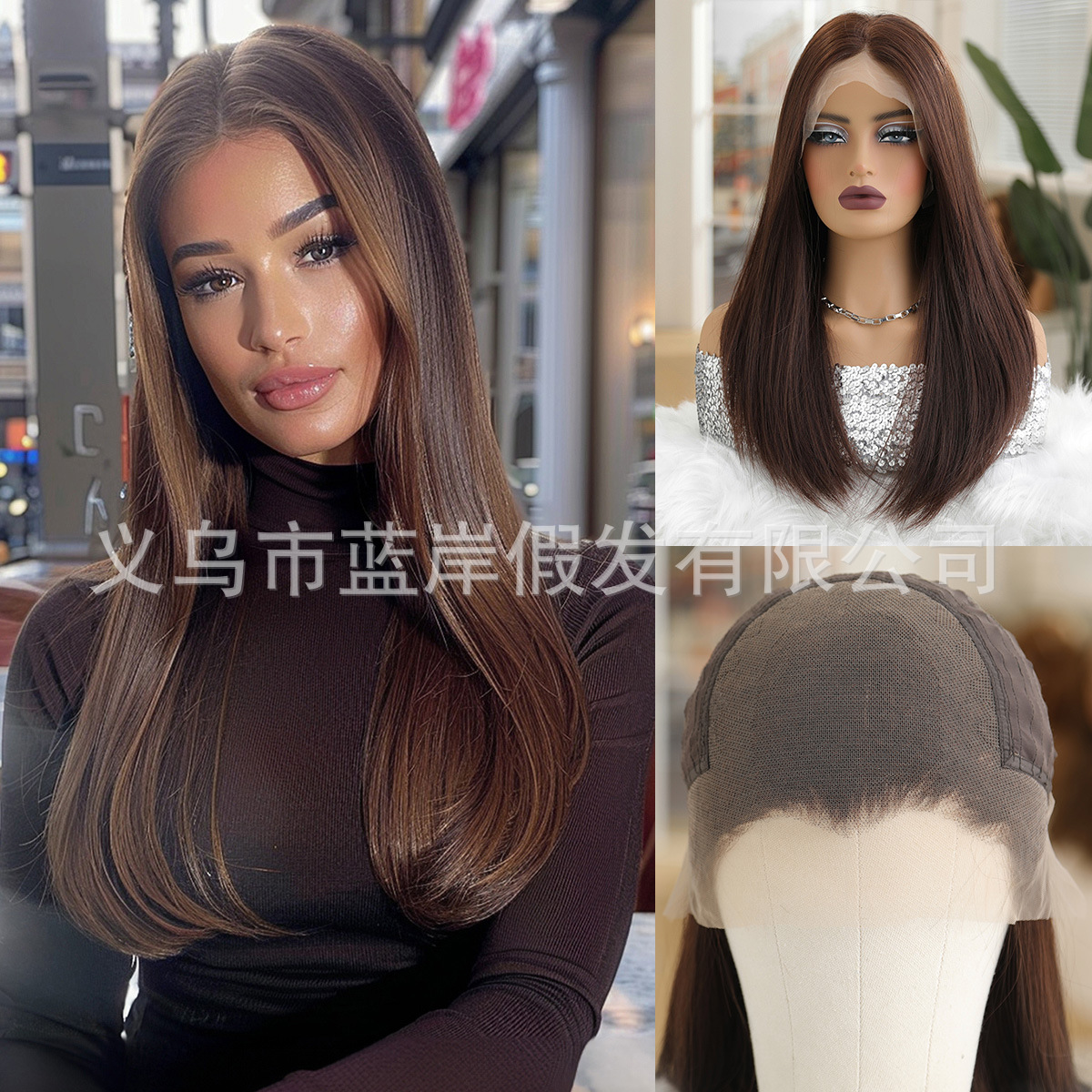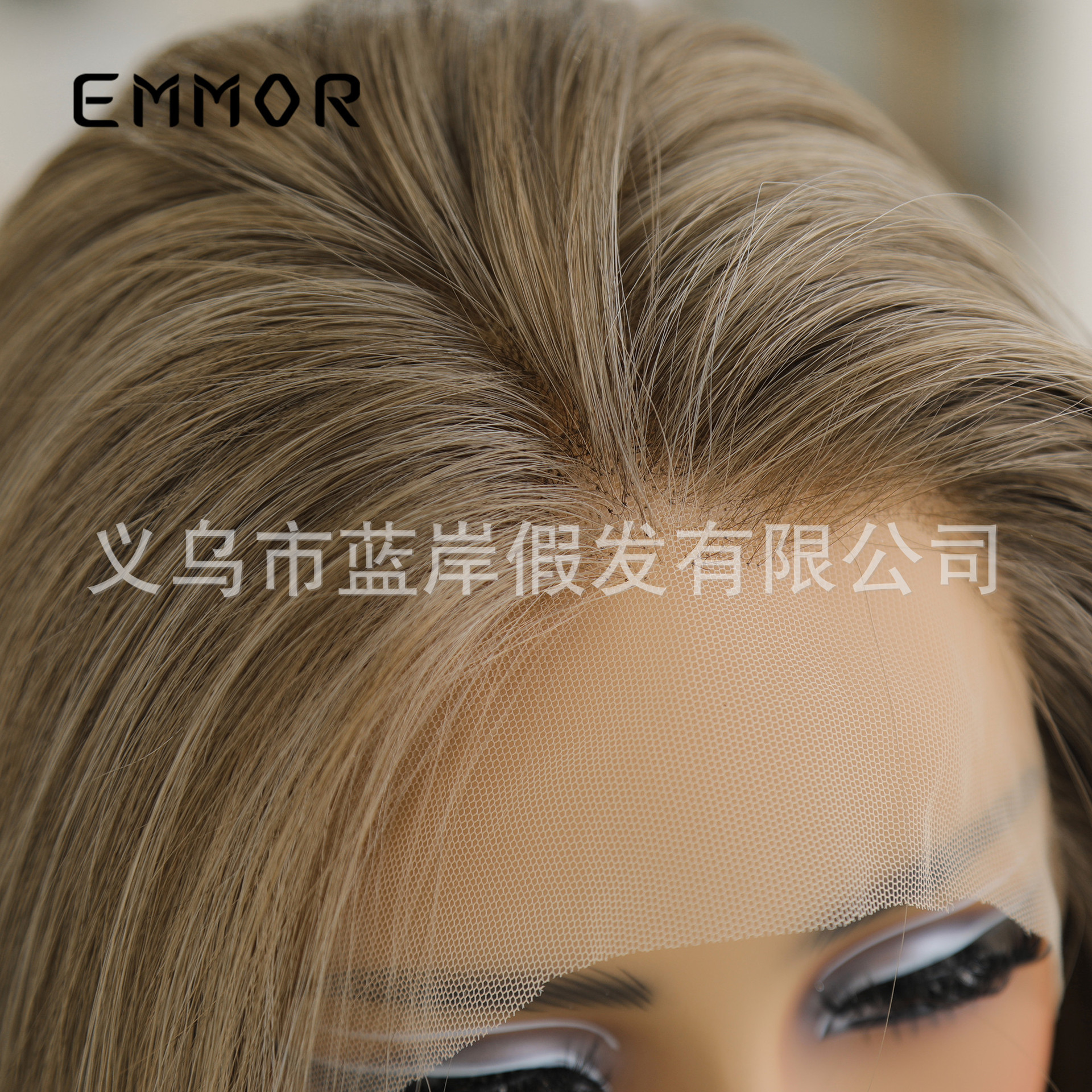 Peluca tejida a mano de encaje de gran área transfronteriza 13*6, cabello largo y liso dorado, costura libre, estilo de temperamento, punto de fábrica