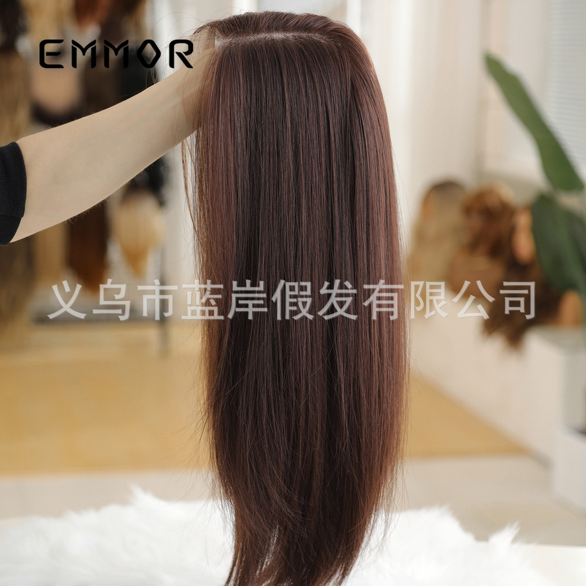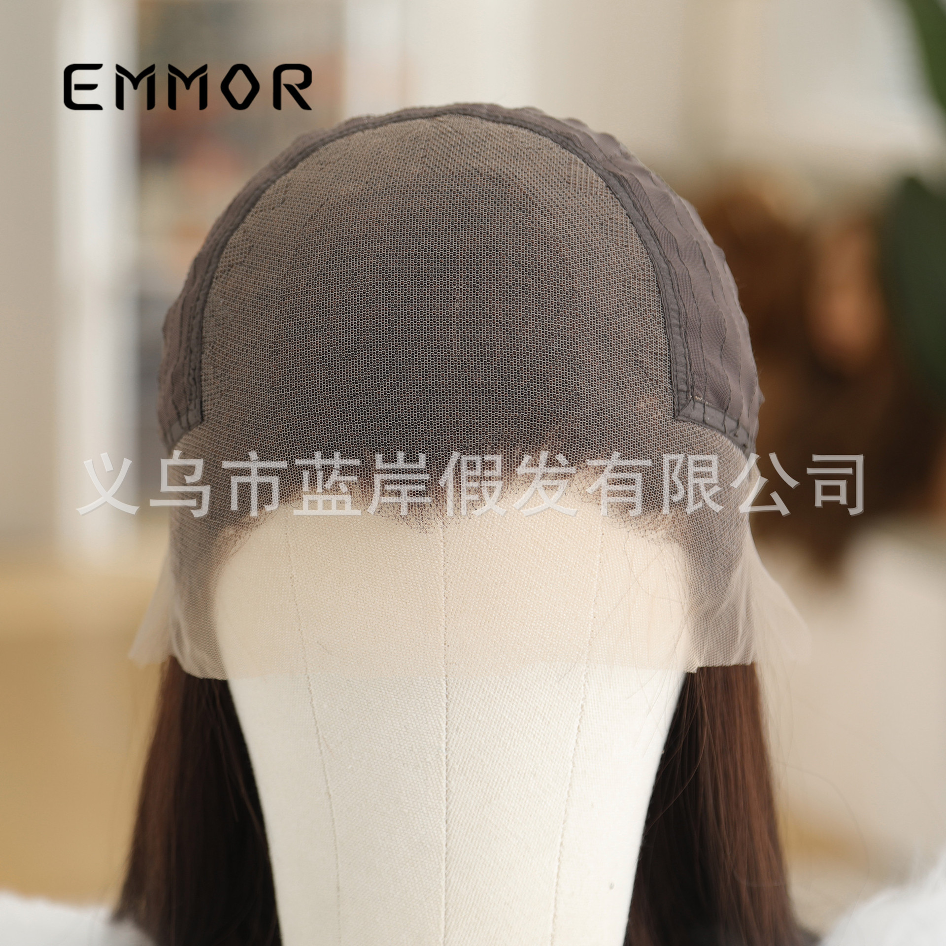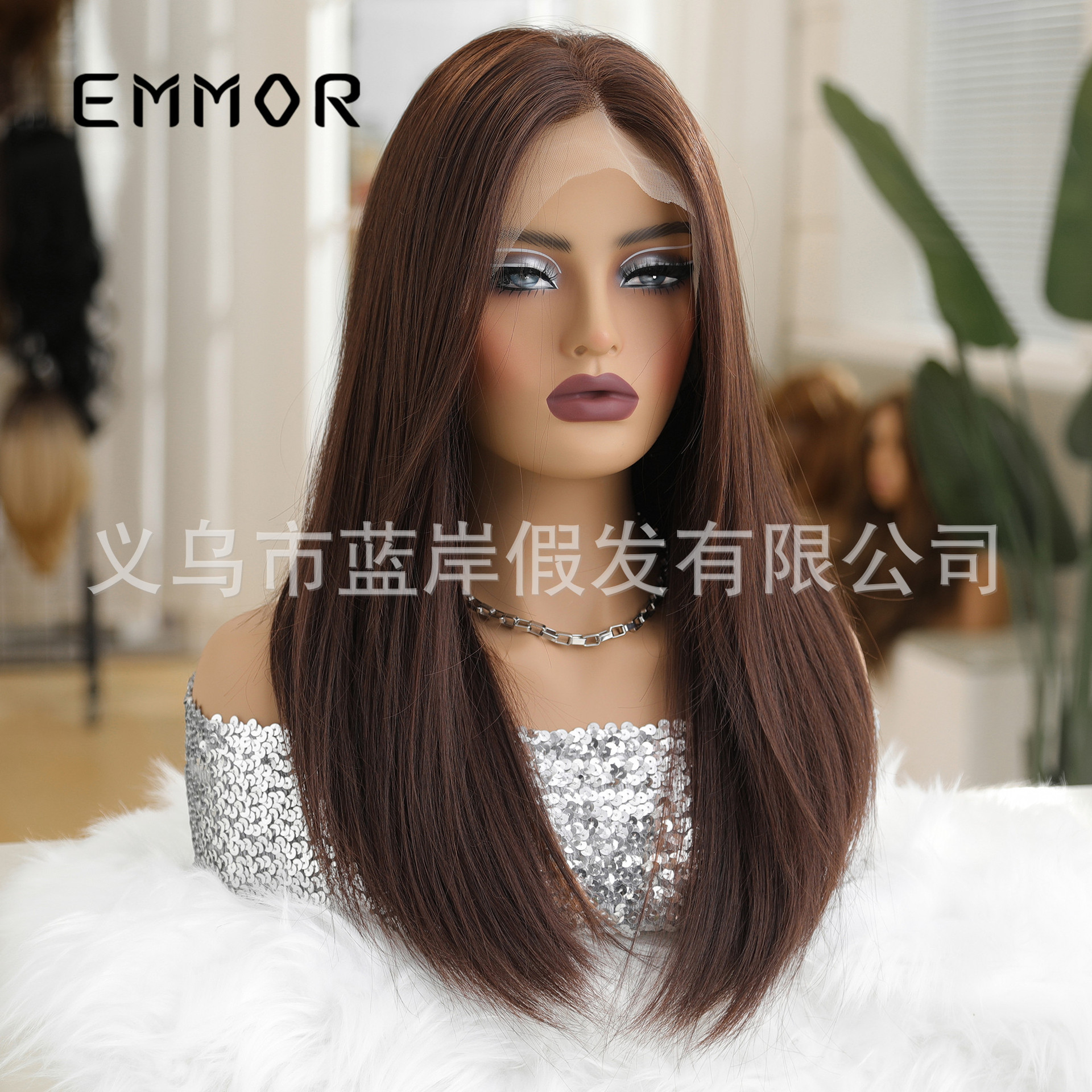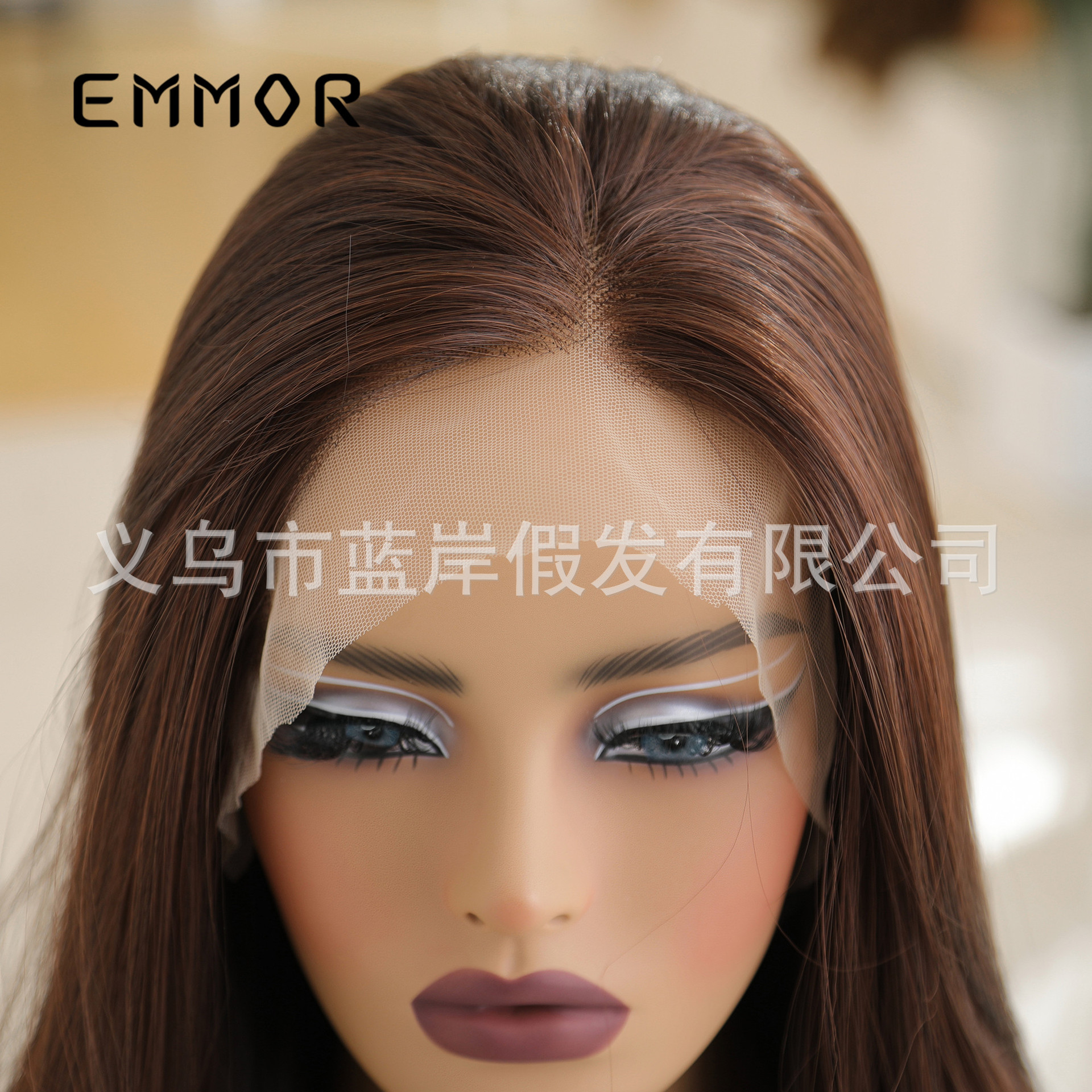 Peluca tejida a mano de encaje de gran área transfronteriza 13*6, cabello largo y liso dorado, costura libre, estilo de temperamento, punto de fábrica