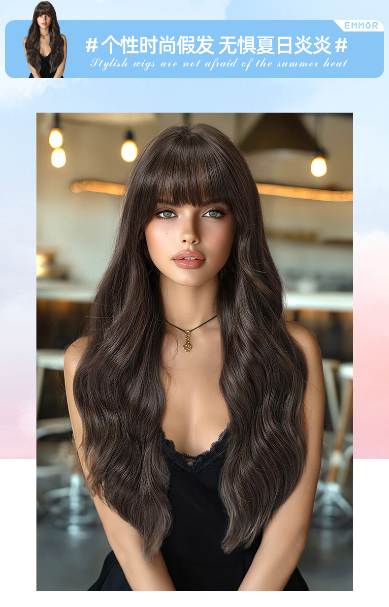 Verano pelucas delgadas estilo de cabello completo estilo americano retro negro marrón natural pecado alto cráneo largo rizado pelucas