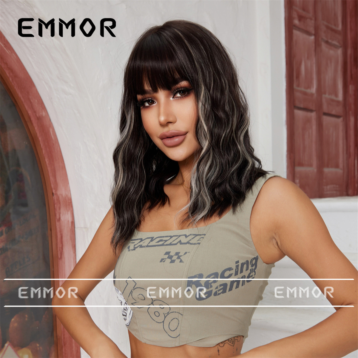 Emmor peluca multicolor flequillo opcional pelo corto y rizado cabeza Bobo Internet celebridad personalidad temperamento perezoso fibra química sombrero