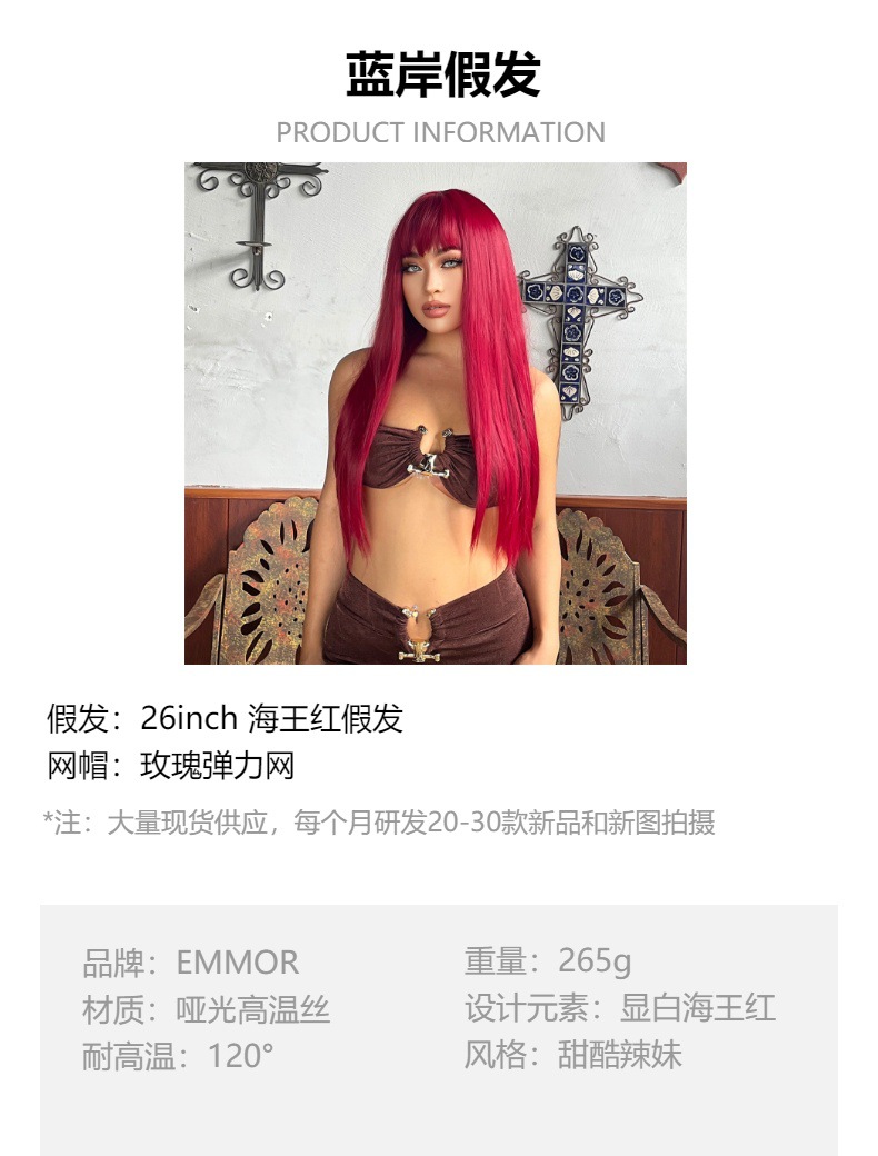 Peluca de las mujeres europeas y americanas diariamente pelo largo recto en línea celebridad realista persona natural pescado rosa Rey del mar pelo largo rojo jk cubierta de la cabeza completa