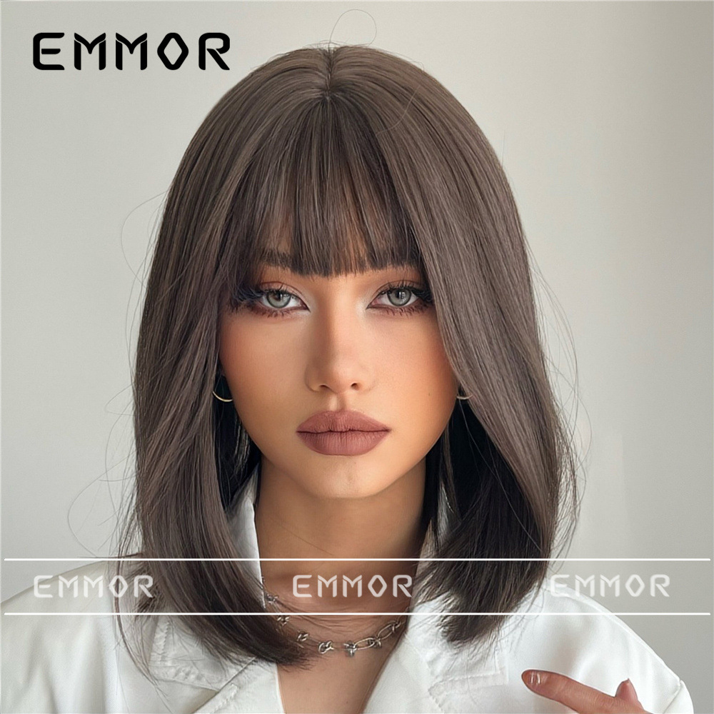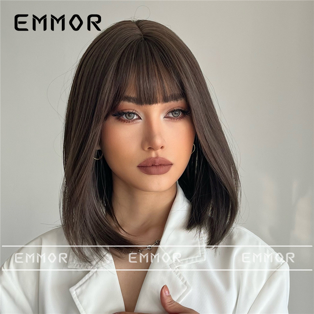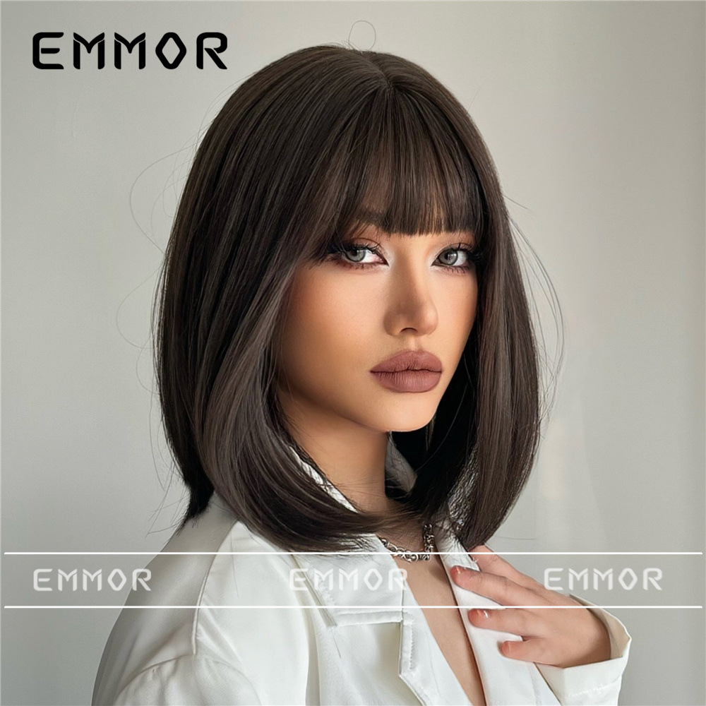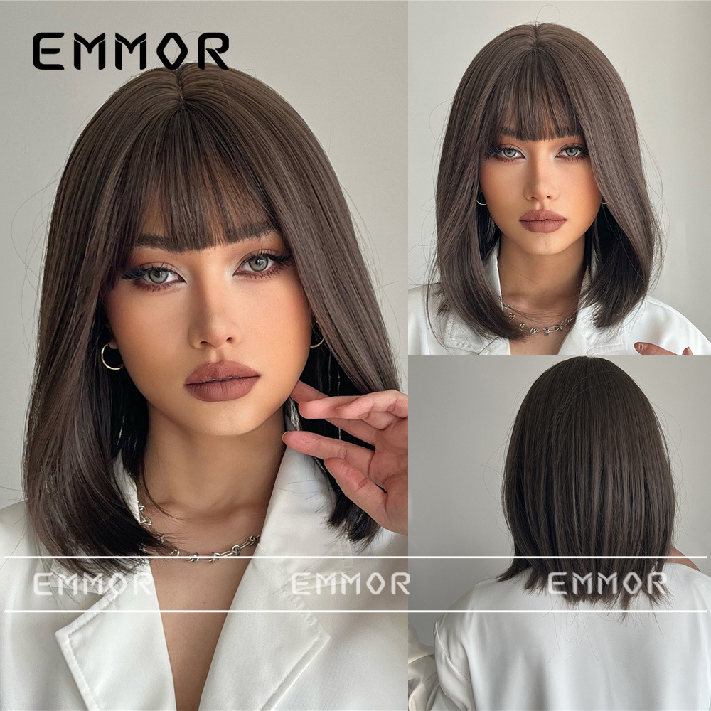 Amazon europeo y americano Comercio exterior Venta caliente peluca alta temperatura seda fibra química Bangs negro Pelo Corto Bobo cabeza cubierta de la cabeza