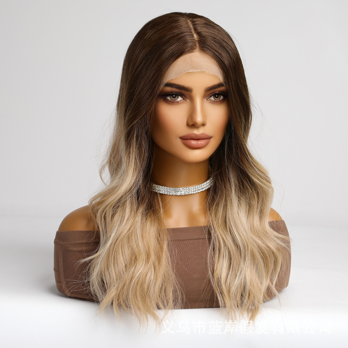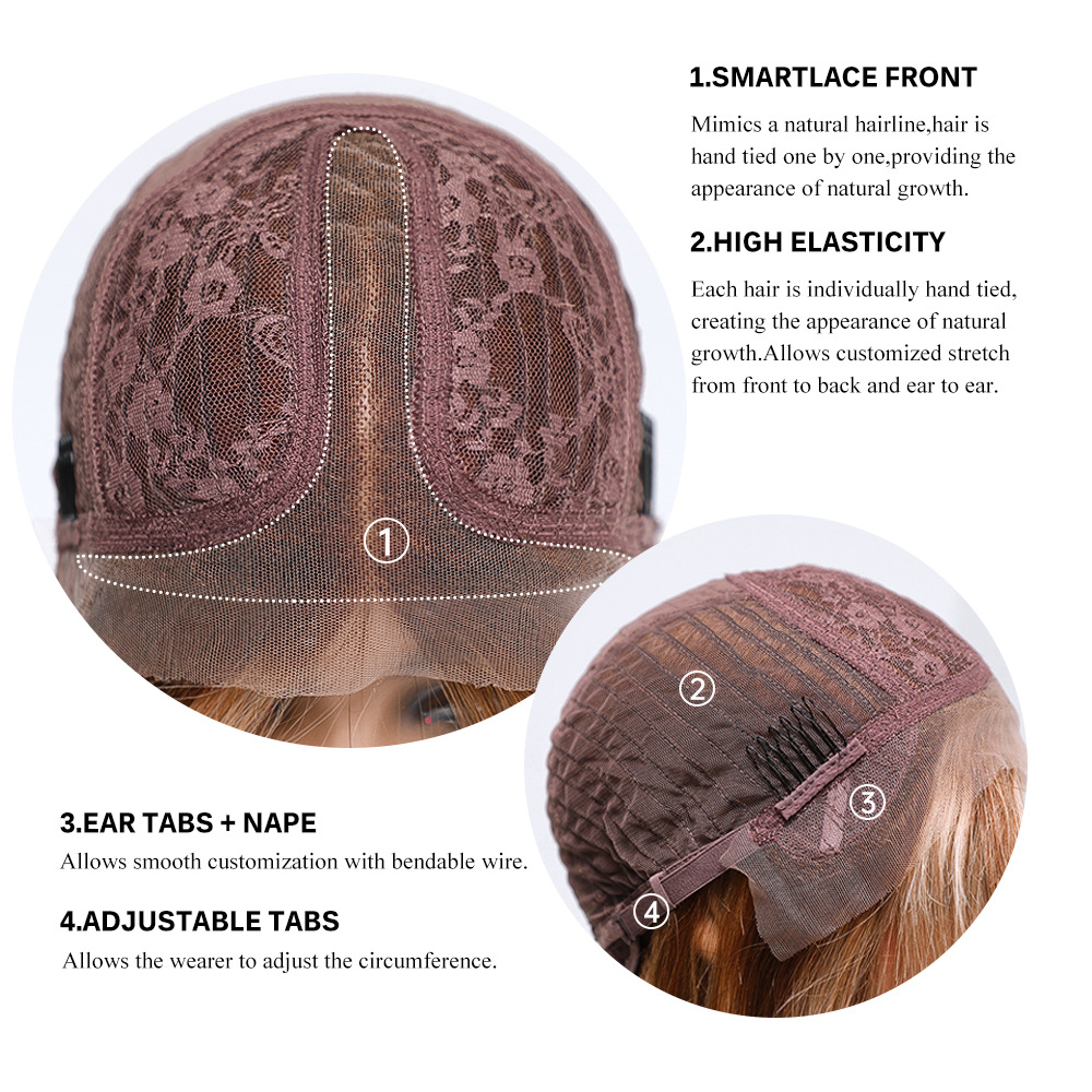 2024 nuevo encaje de pelo pequeño T marrón oscuro degradado marrón claro onda grande Pelo Rizado largo europeo y americano encaje peluca para mujeres
