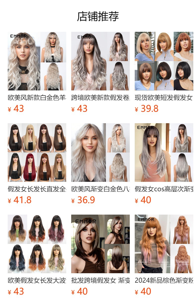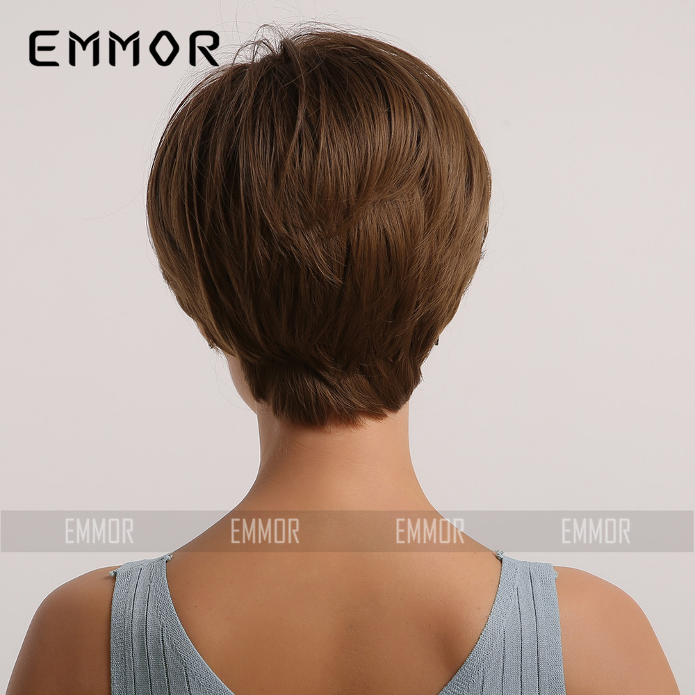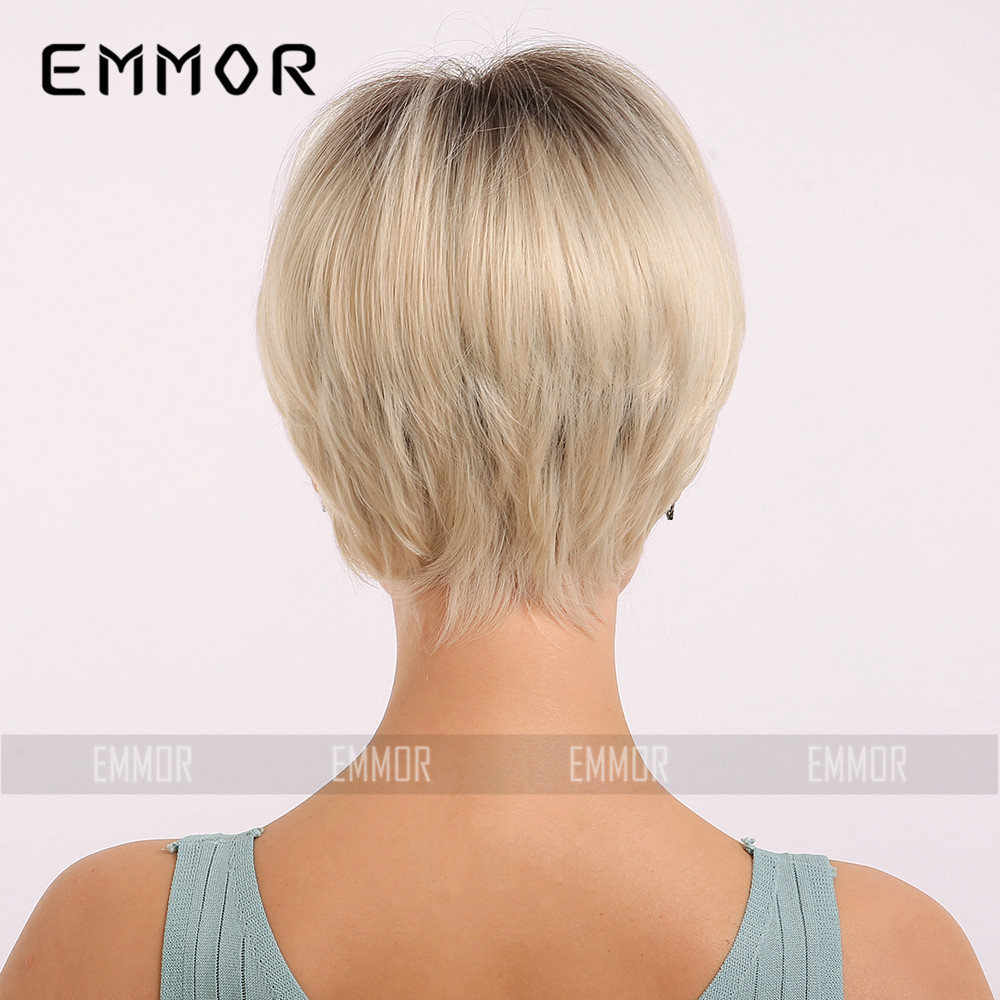 Emmor Amazon Comercio exterior europeo y americano peluca pelucas negro gradiente oro pelo recto Pelo Corto fibra química Peluca de las mujeres