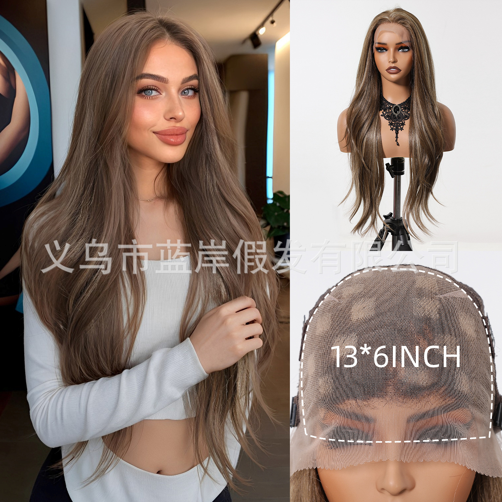 Nuevo producto gradiente gris color popular estilo europeo y americano 13*6 peluca de encaje de área grande costura libre transpirable y cómodo tocado