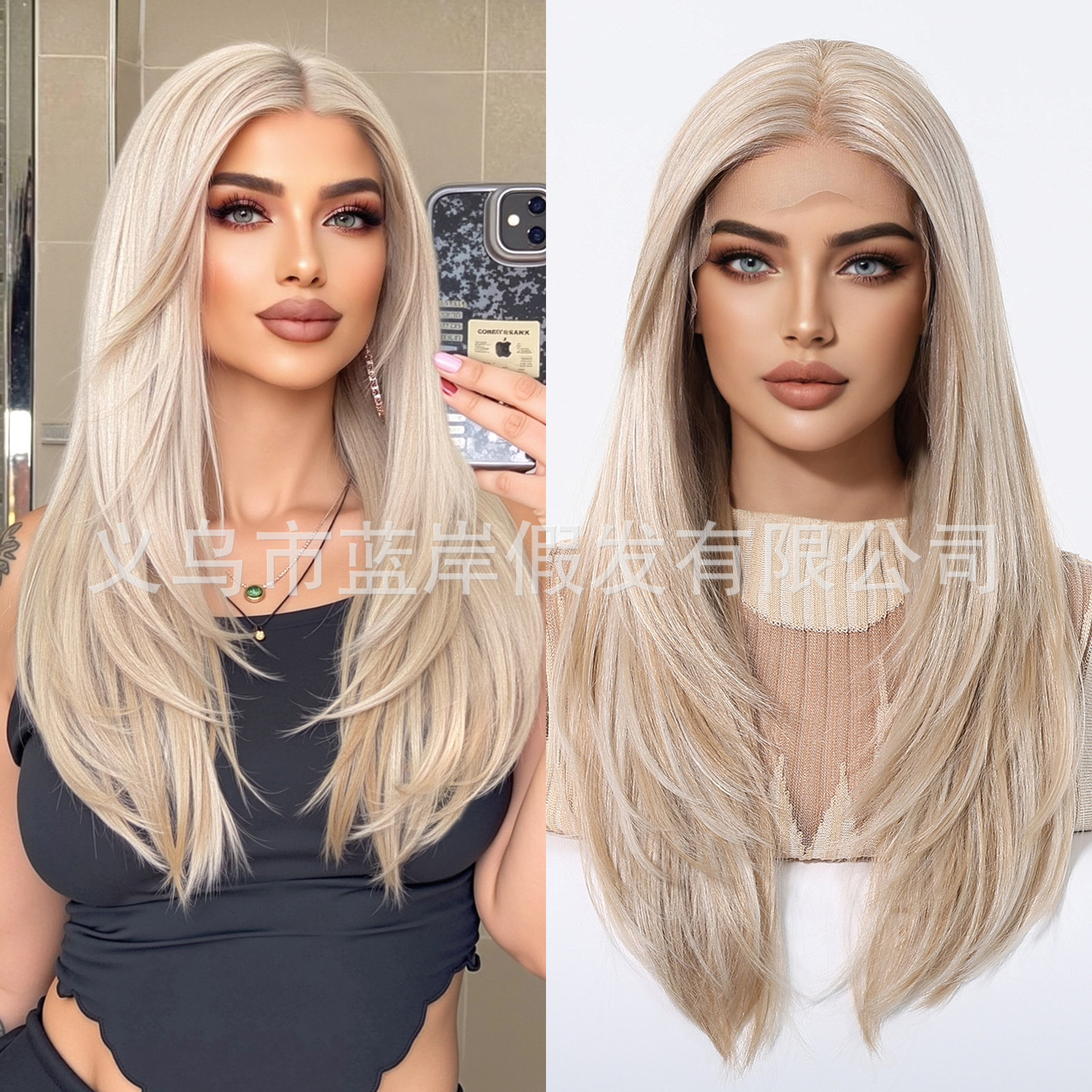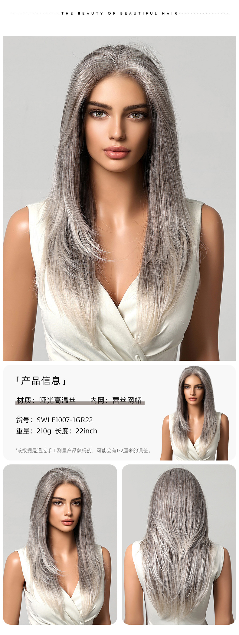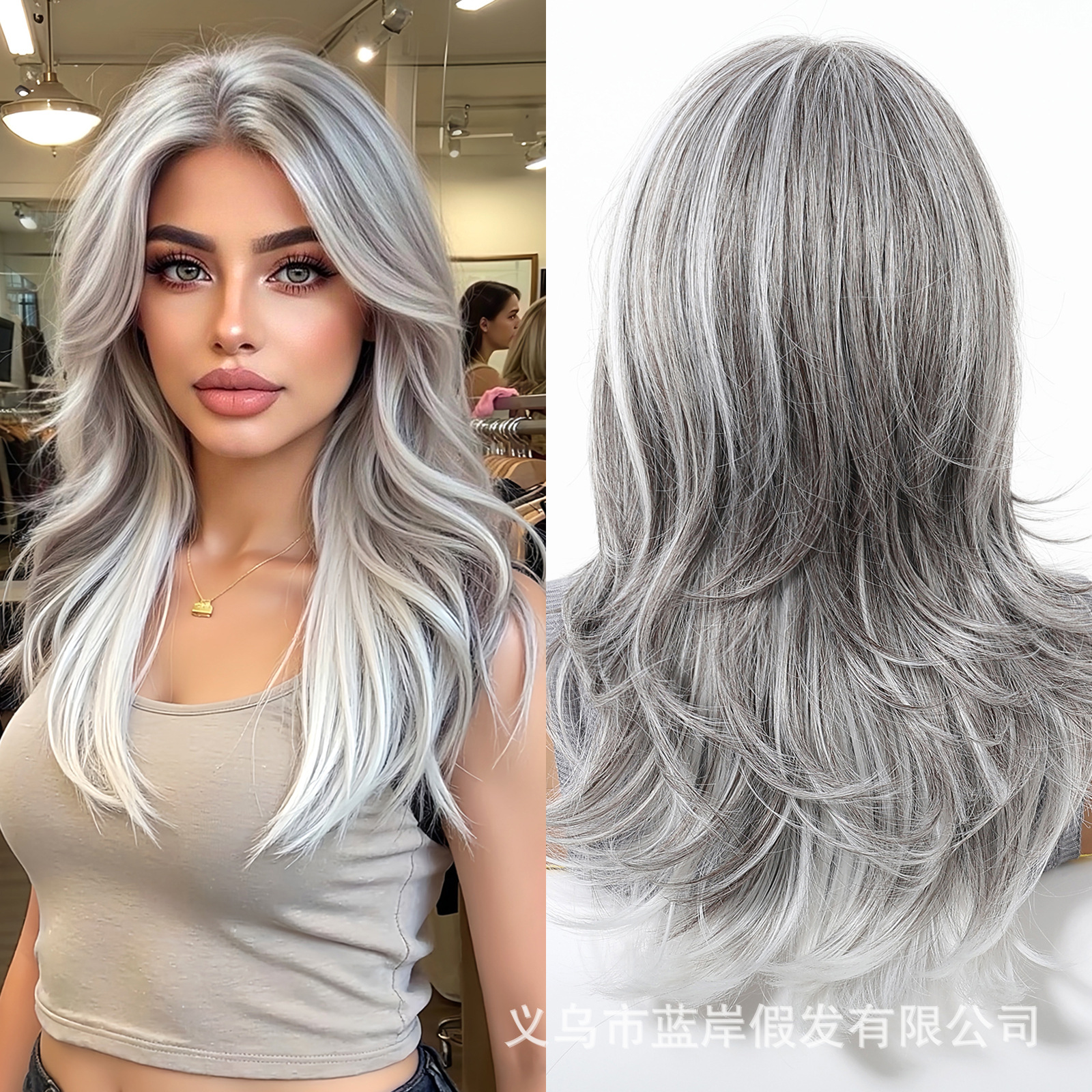 Estilo europeo y americano transfronterizo 13*6 peluca de encaje de gran superficie flequillo de ocho caracteres femenino degradado abuela gris pereza pereza cubierta completa