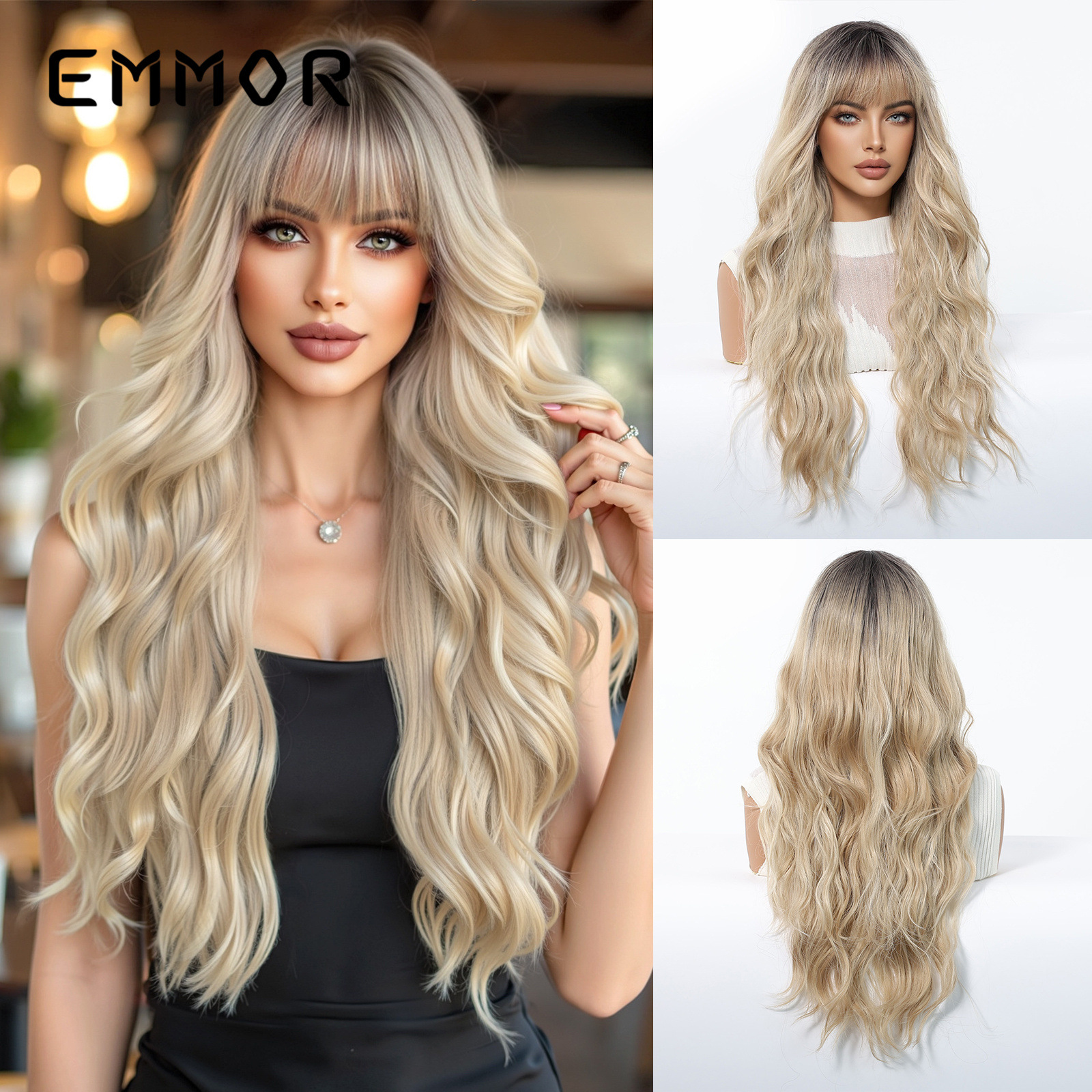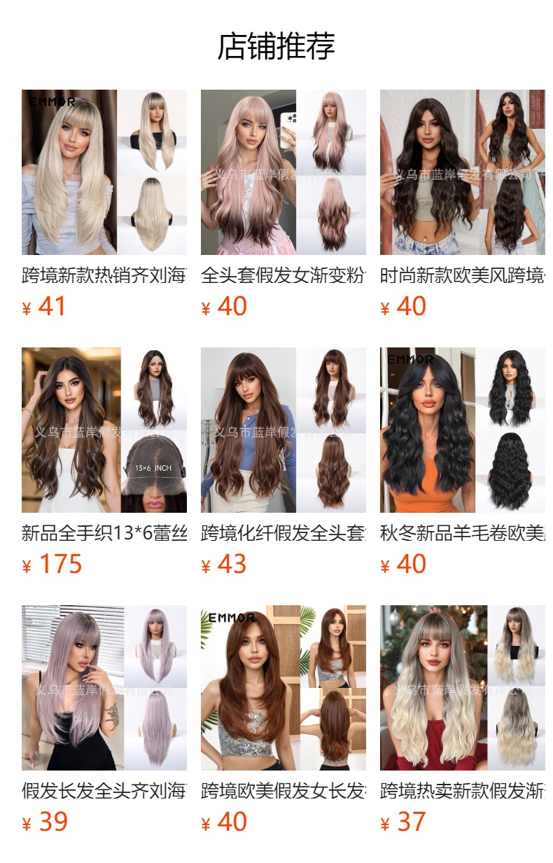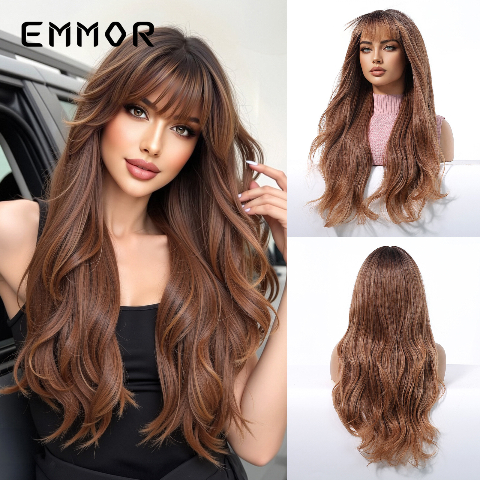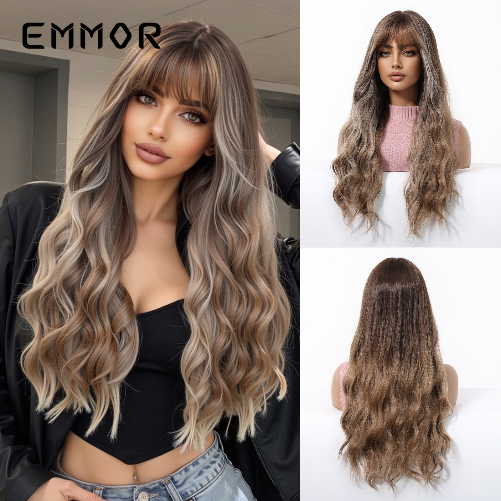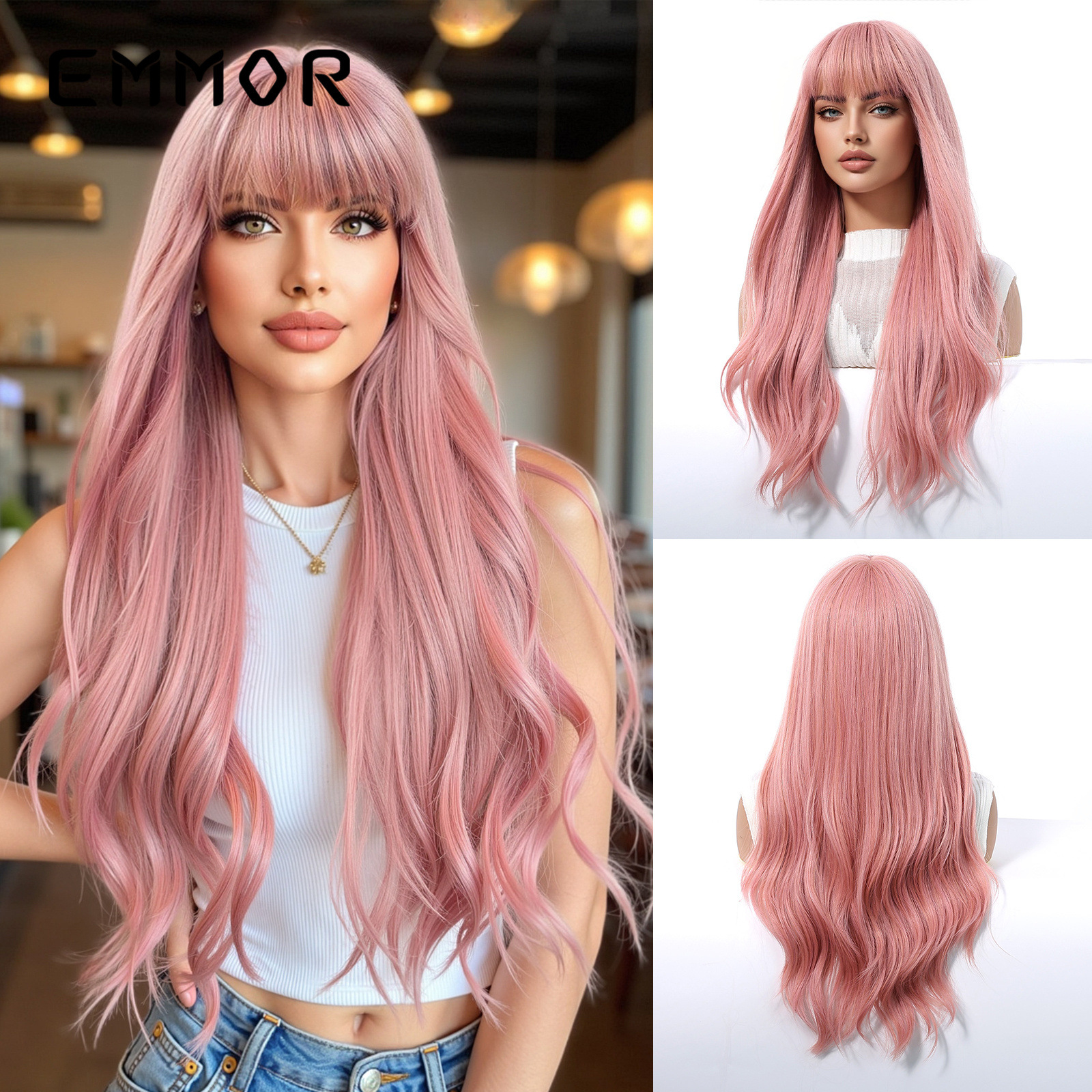 Celebridades de Internet en color dopamina, flequillo europeo y americano, ondas grandes, cabello largo y rizado, peluca de venta caliente transfronteriza, tipo de cabello completo