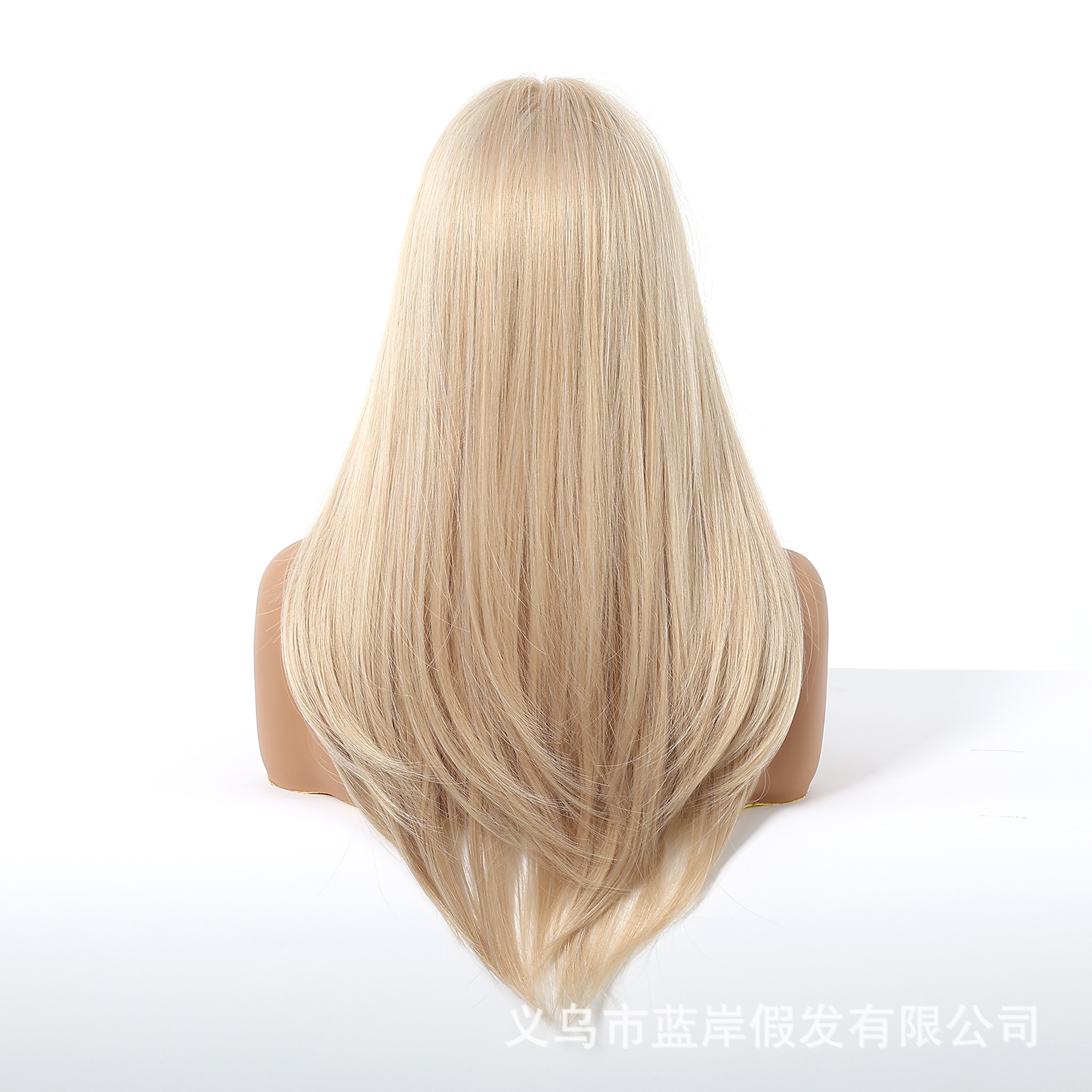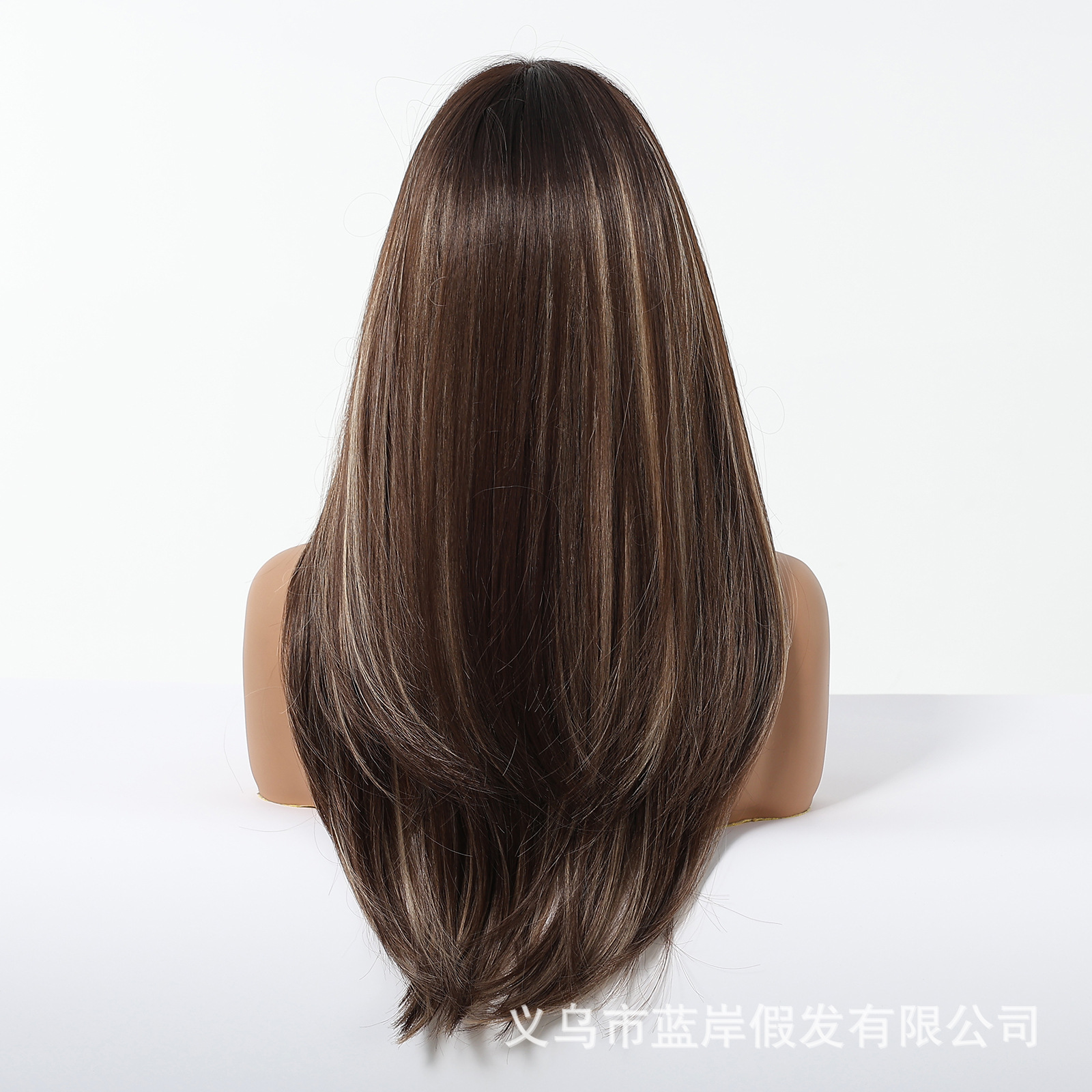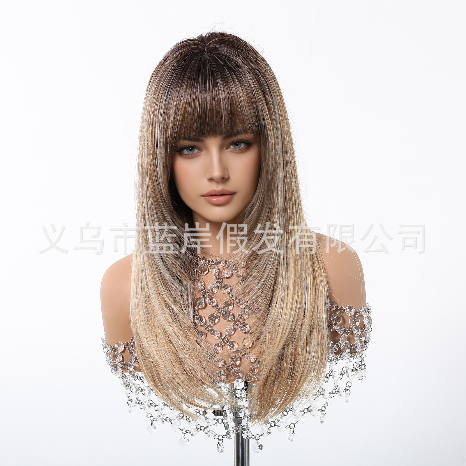 Nuevas pelucas transfronterizas, flequillo de aire, nivel de atmósfera, negro, marrón, cabello largo y liso, cubierta de fibra química, punto de fábrica