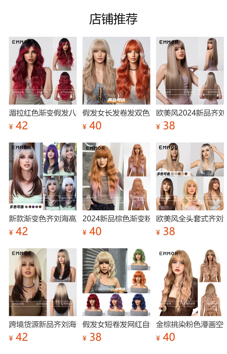 Nuevos sombreros transfronterizos, sin flequillo, negro natural, orejas colgantes de alto nivel, cabello largo teñido, peluca microenrollada, tipo de cabello completo