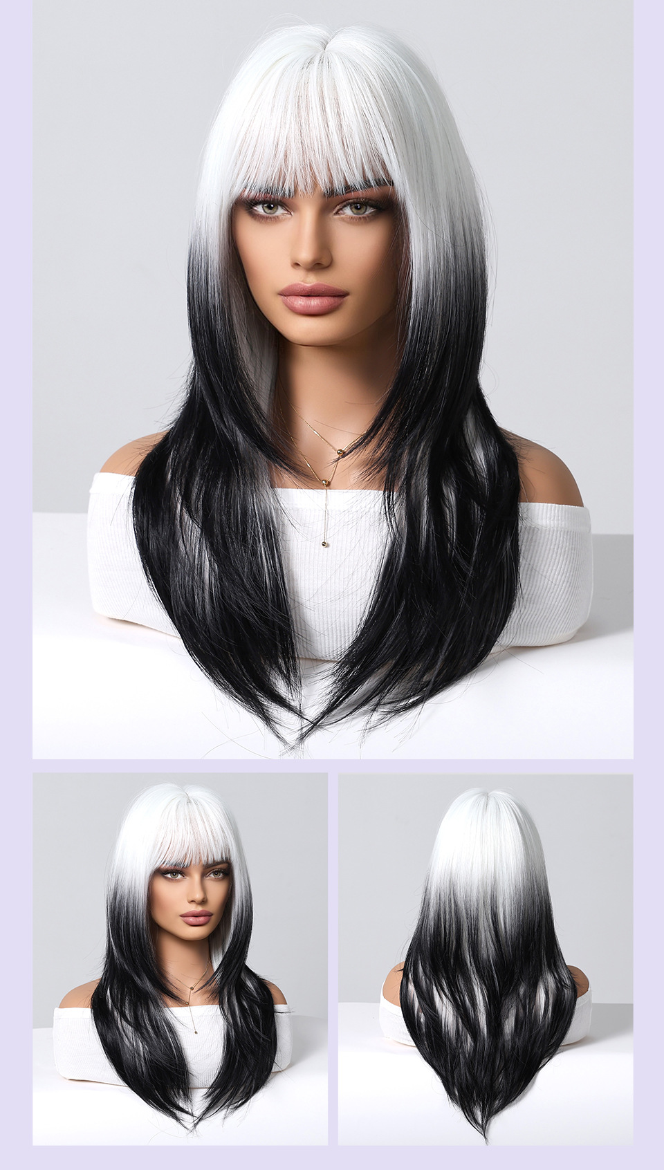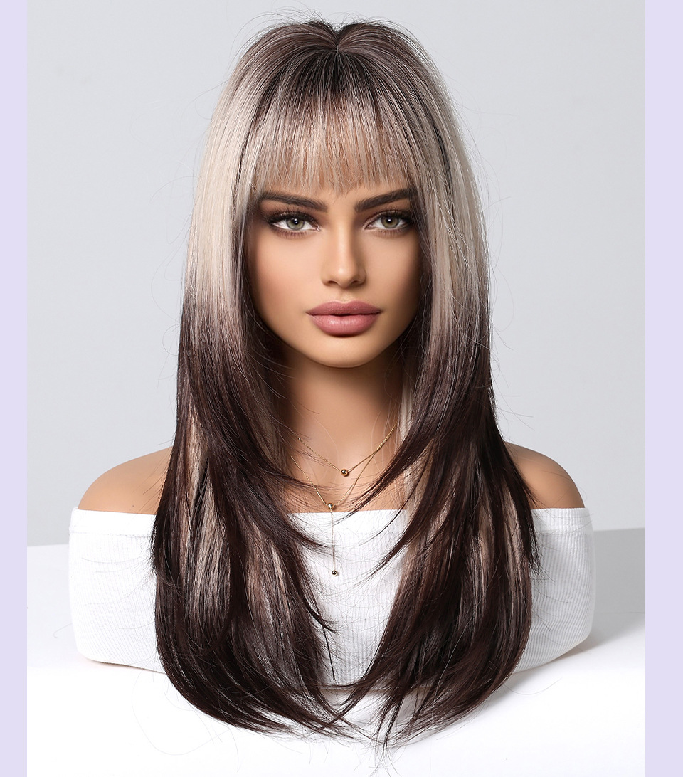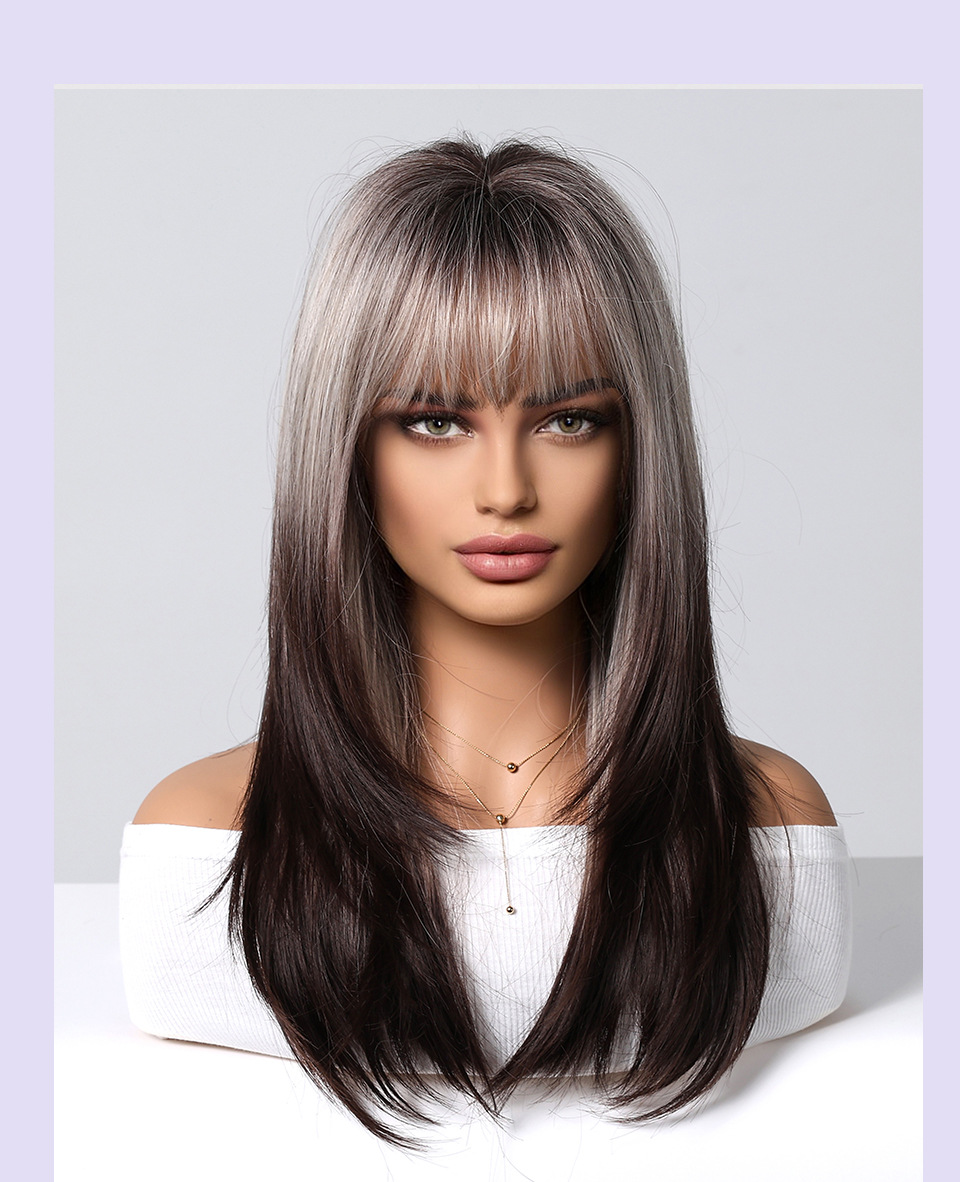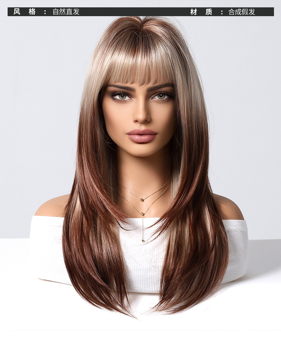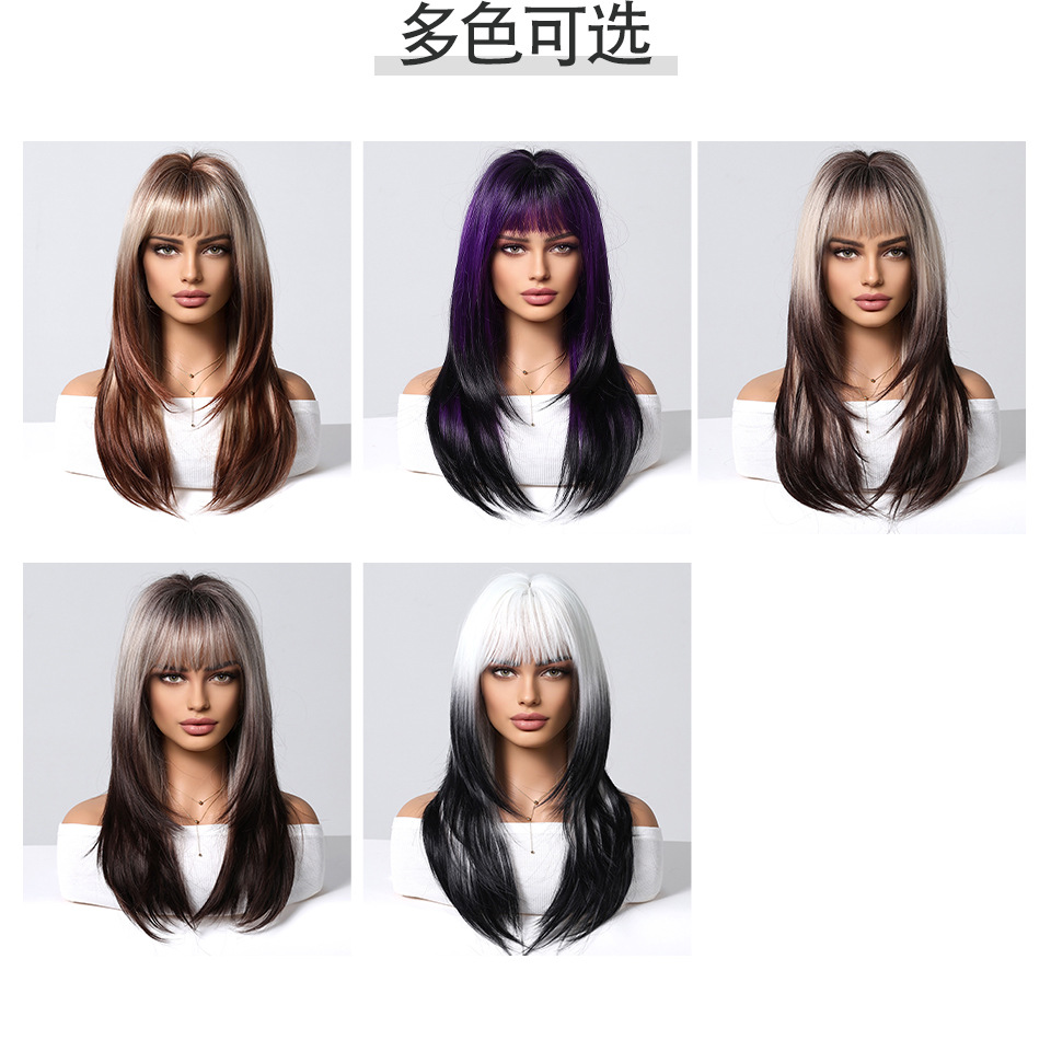 Nuevo flequillo de color degradado, cabello rizado de longitud media de alto nivel, peinado y reducción de la edad, peluca de dopamina de verano, tipo de cabello completo