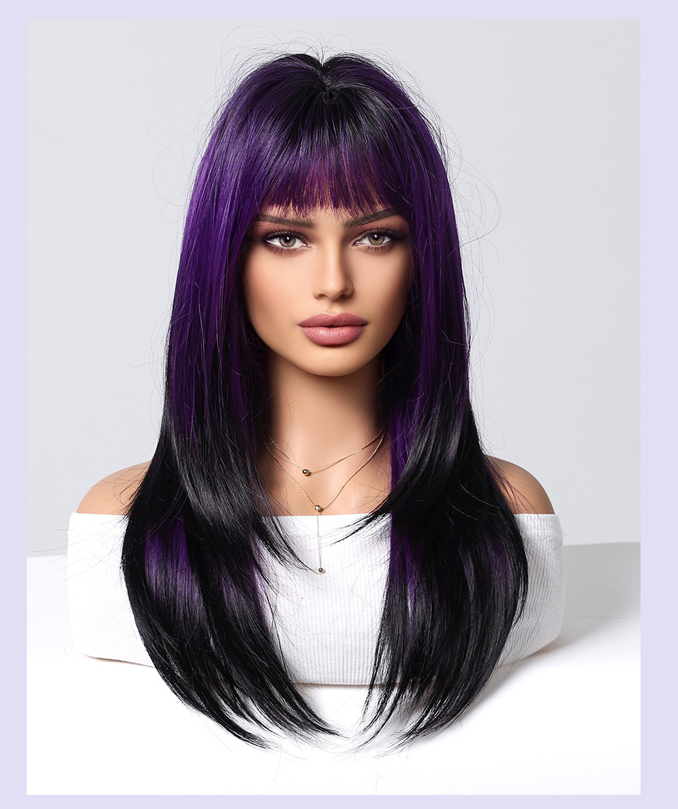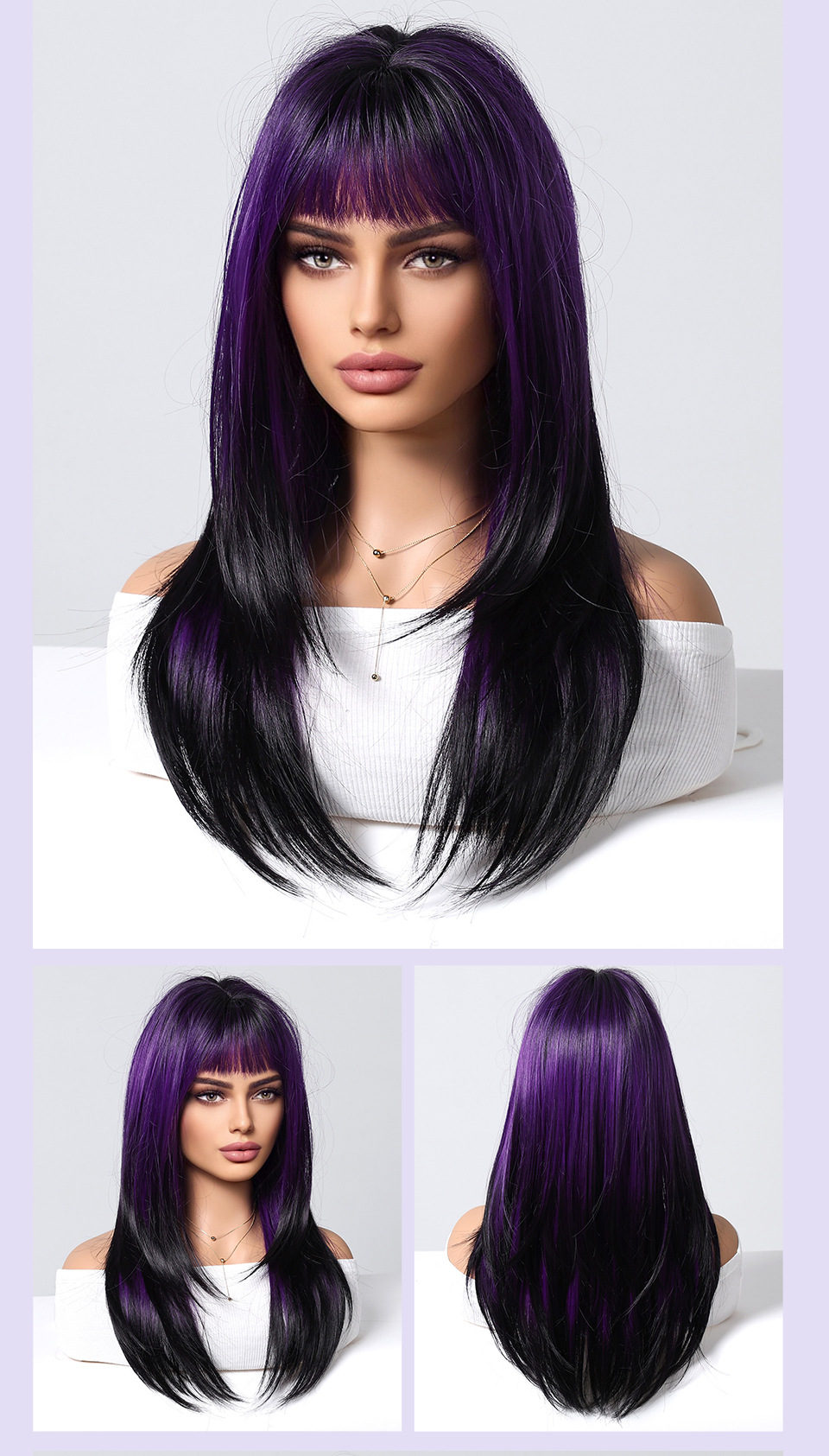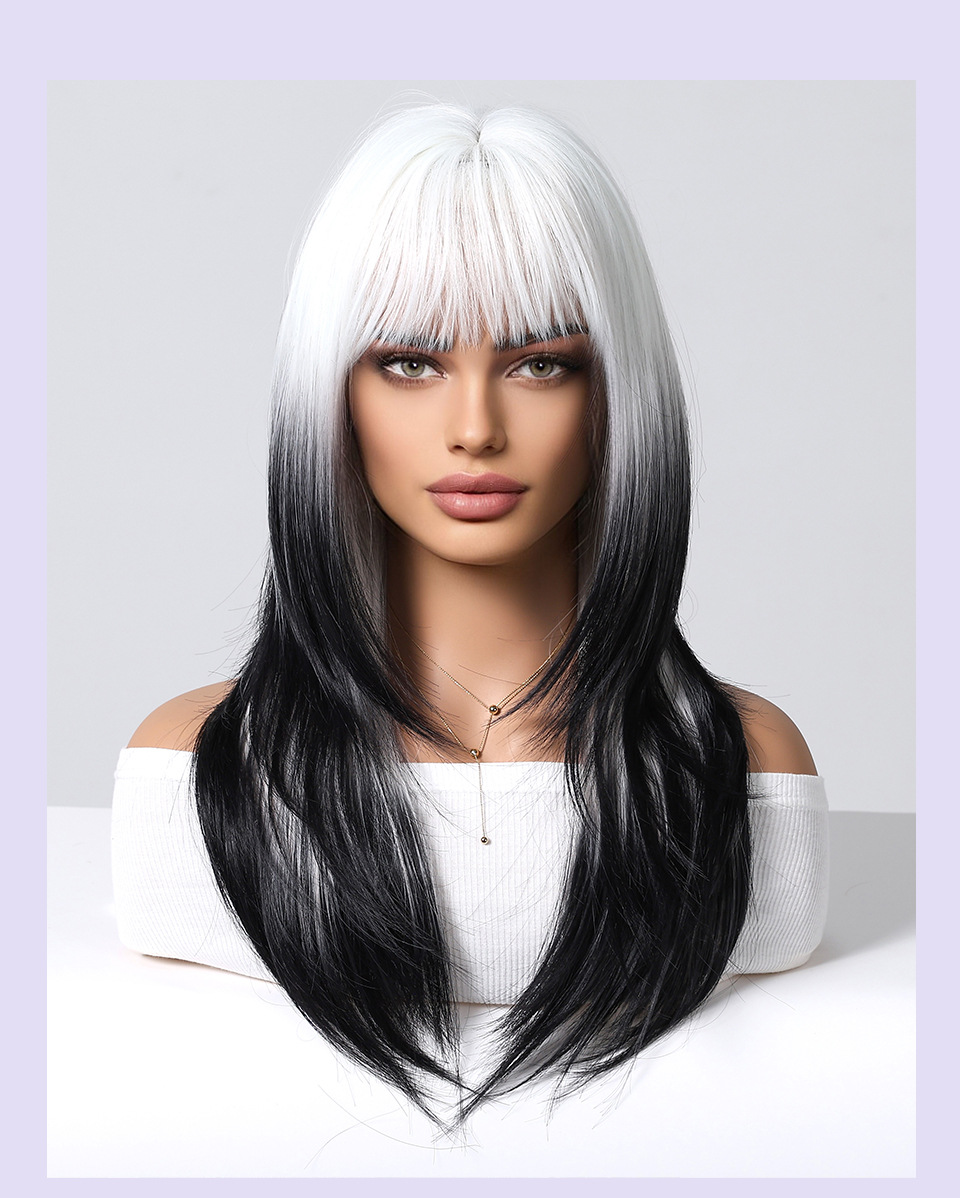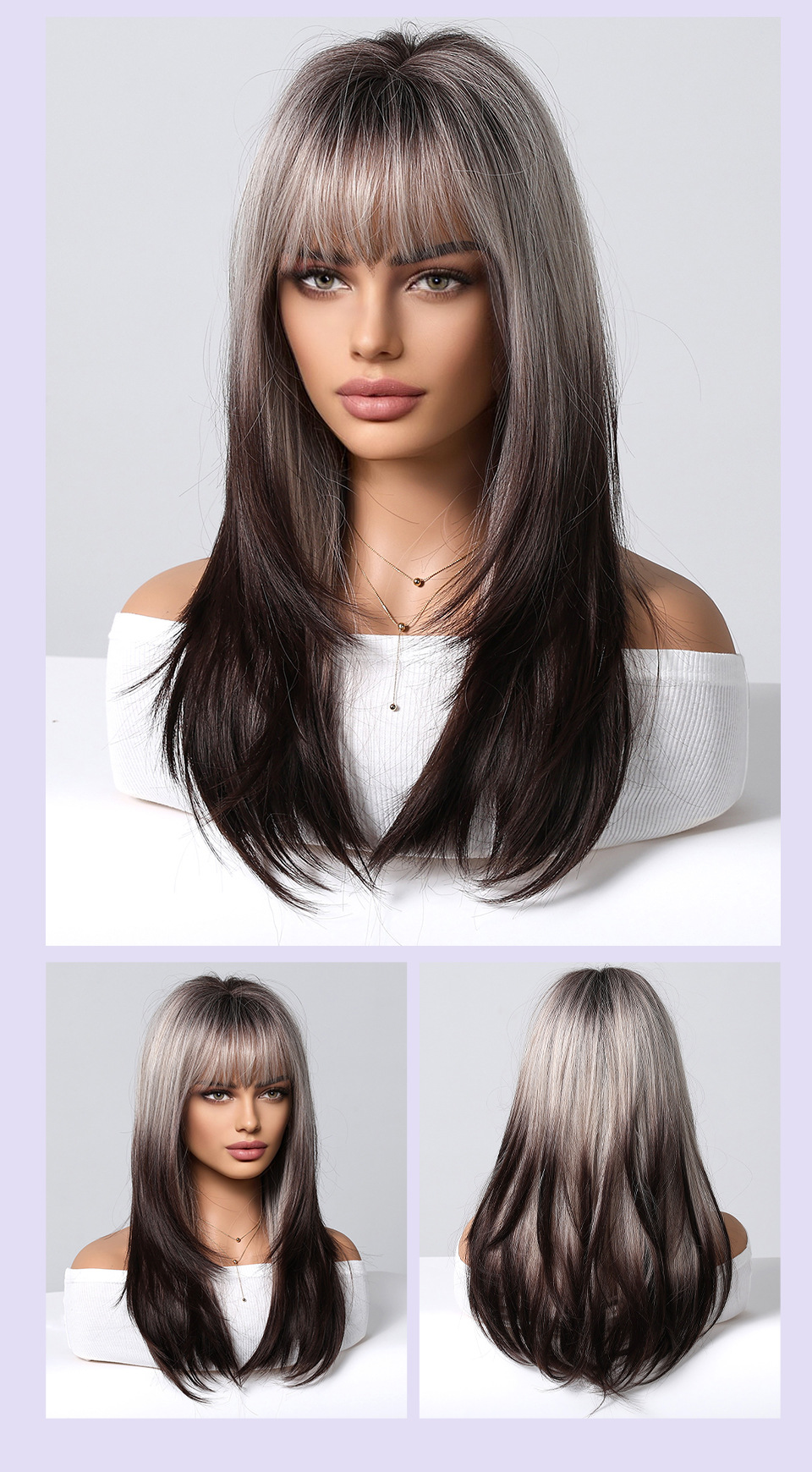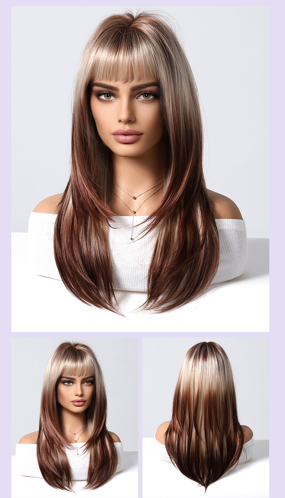 Nuevo flequillo de color degradado, cabello rizado de longitud media de alto nivel, peinado y reducción de la edad, peluca de dopamina de verano, tipo de cabello completo
