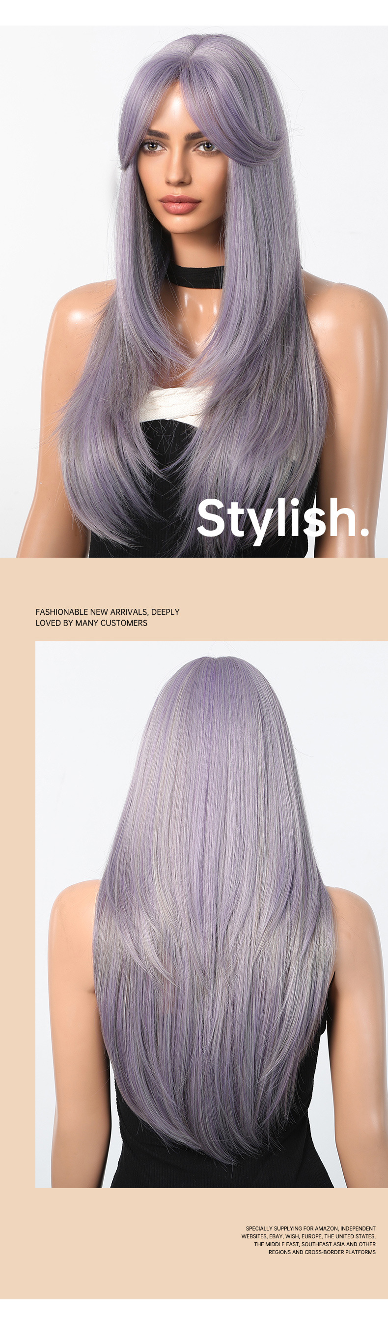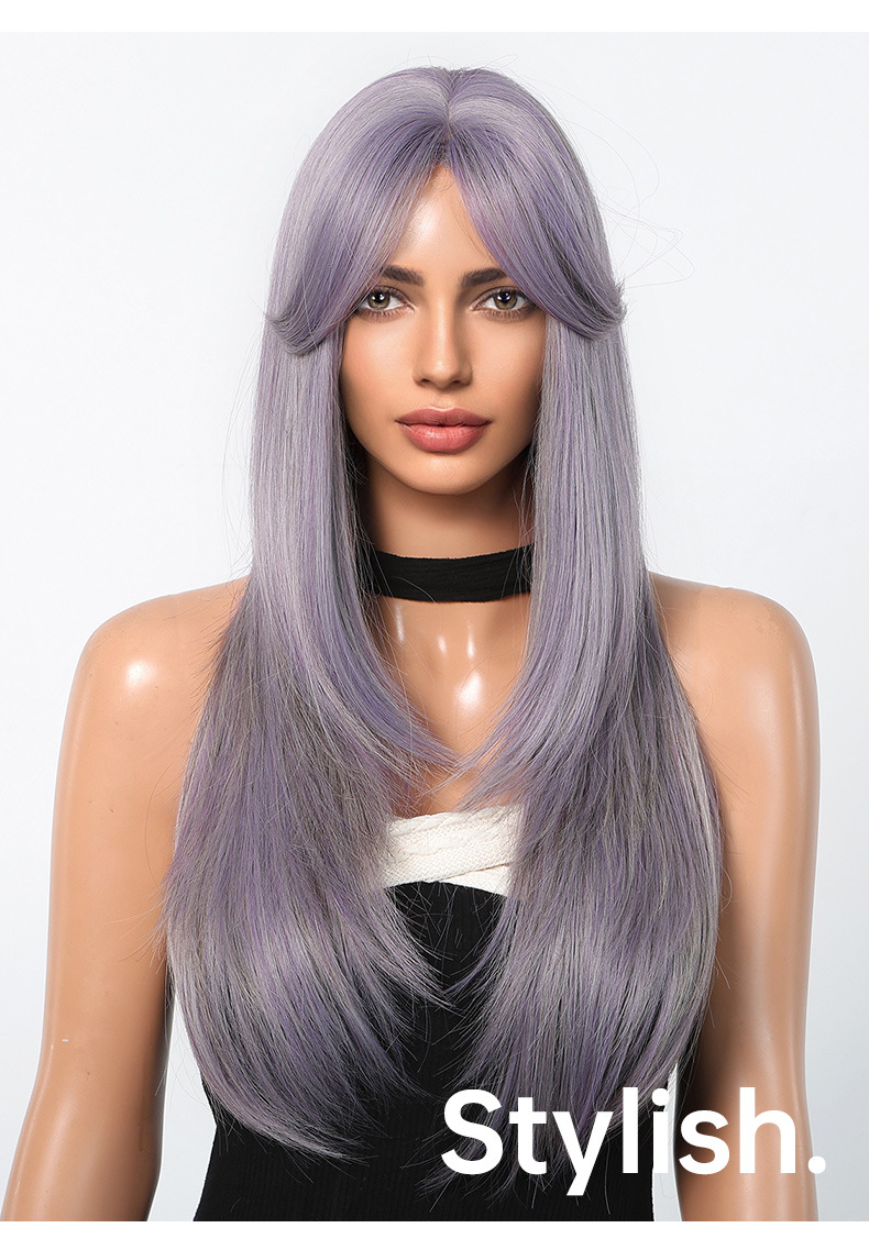 Peluca de estilo europeo y americano para mujer cabello largo cubierta completa de la cabeza celebridad de Internet nuevo flequillo de ocho caracteres de longitud media púrpura y2g nivel largo cabello liso