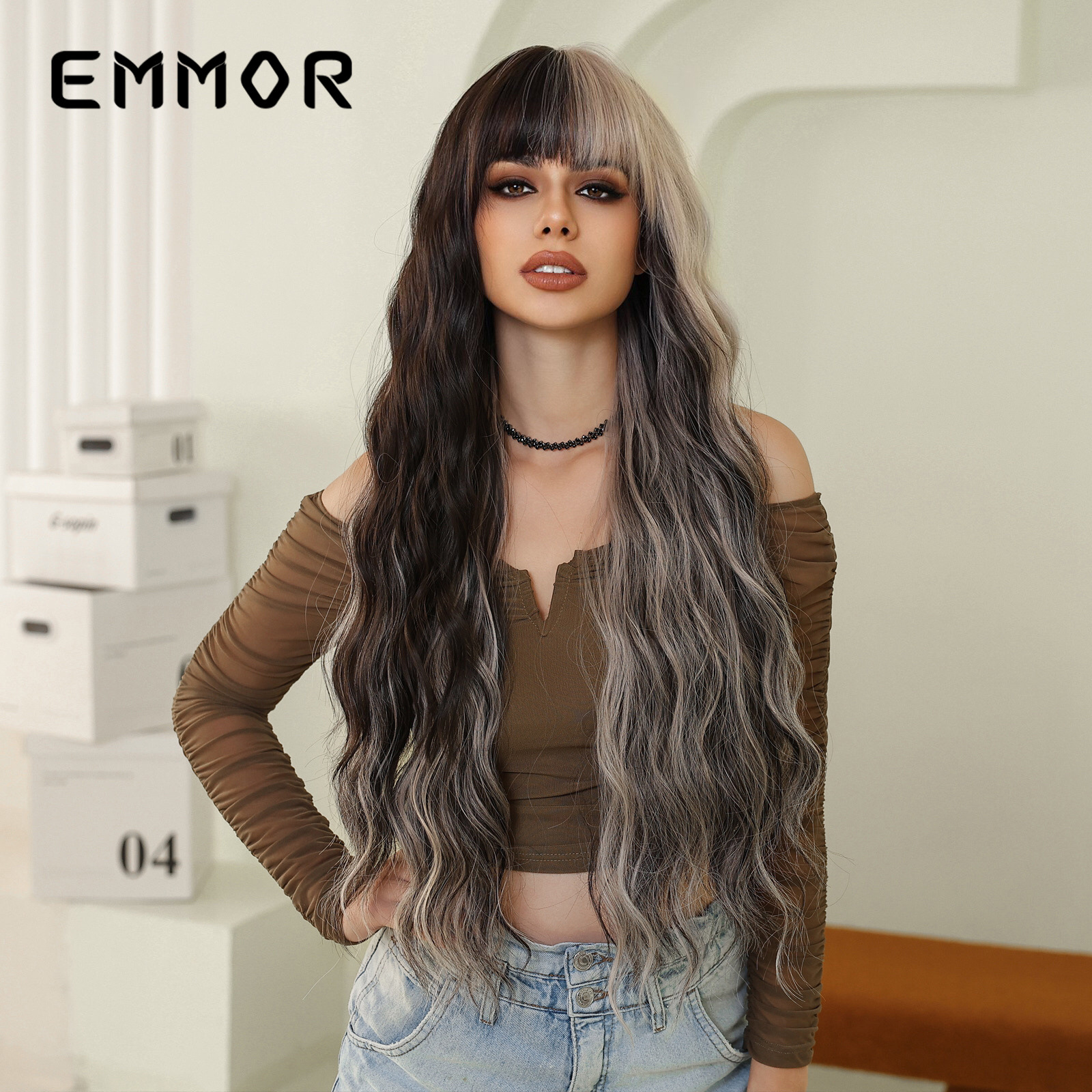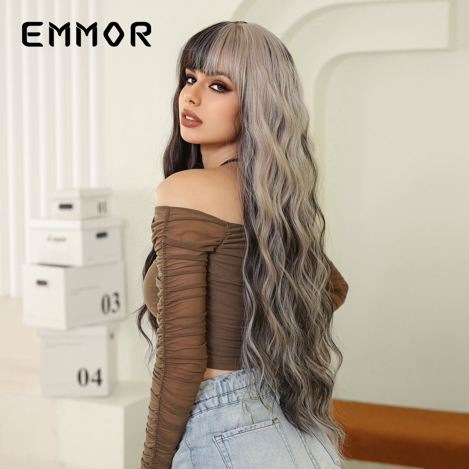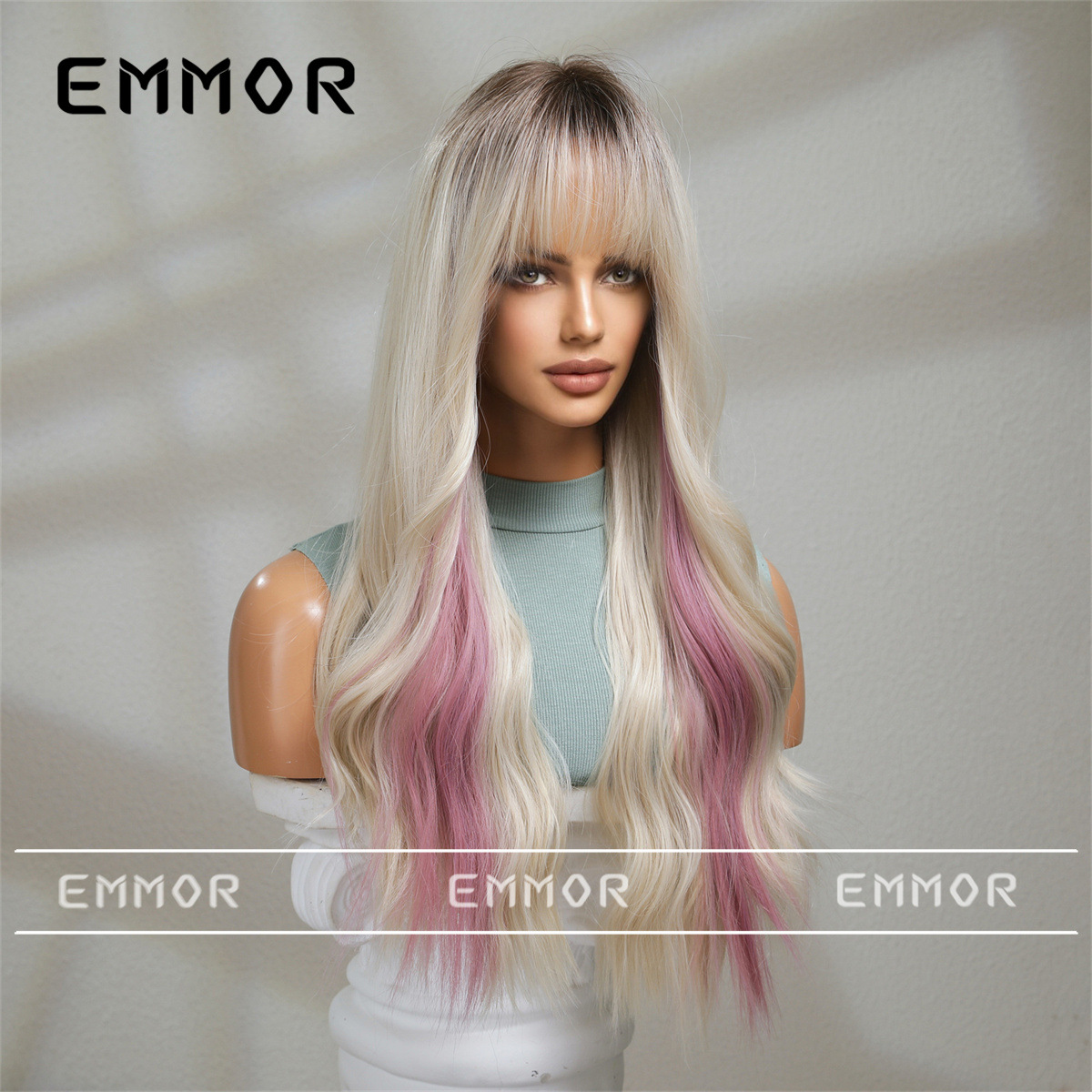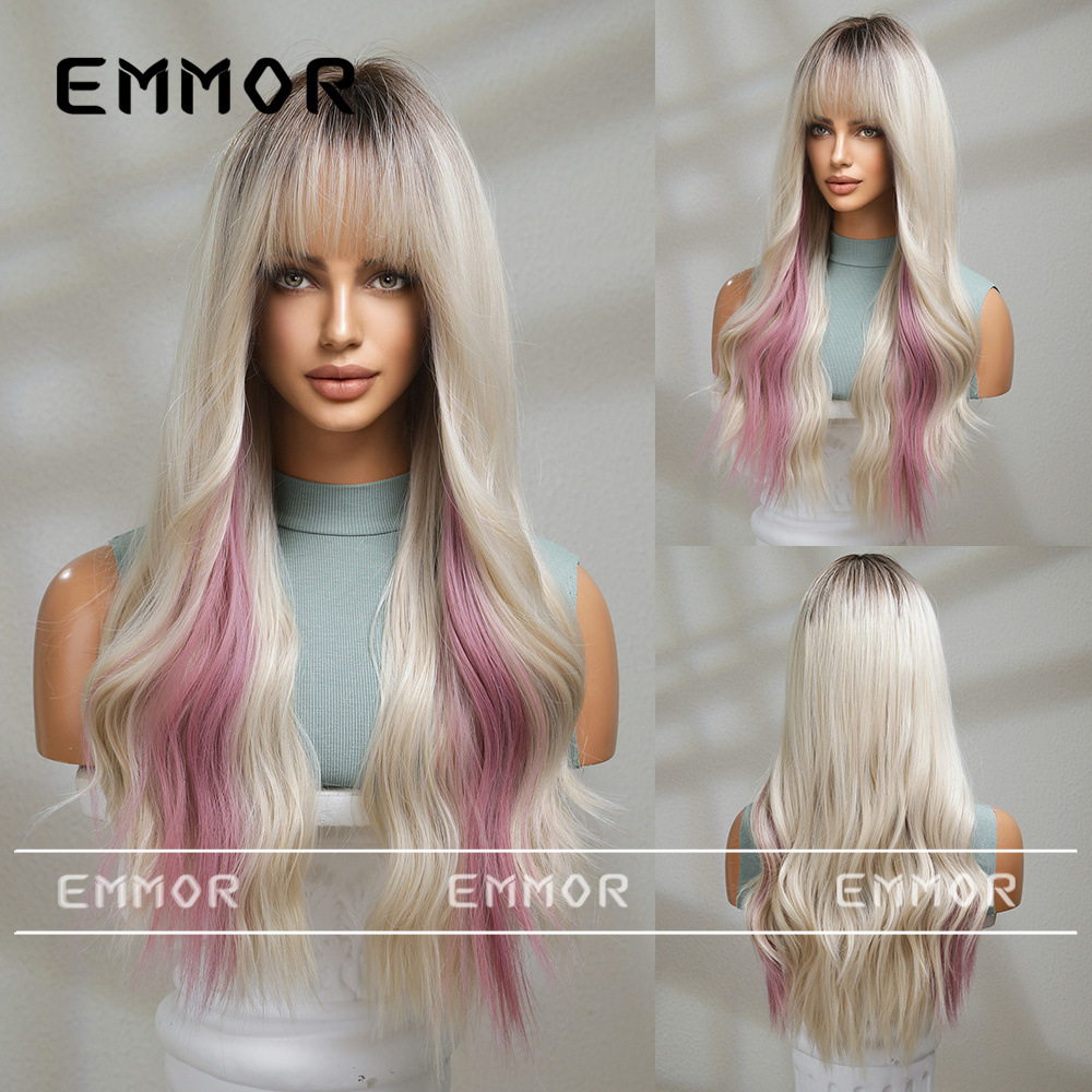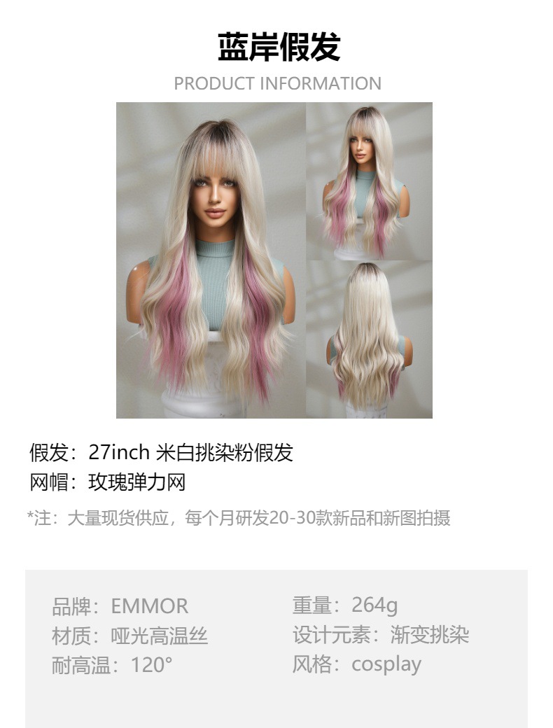 Amazon Shein Comercio exterior transfronterizo nuevo cos peluca Bangs gradiente beige teñido Rosa moda largo cabello rizado