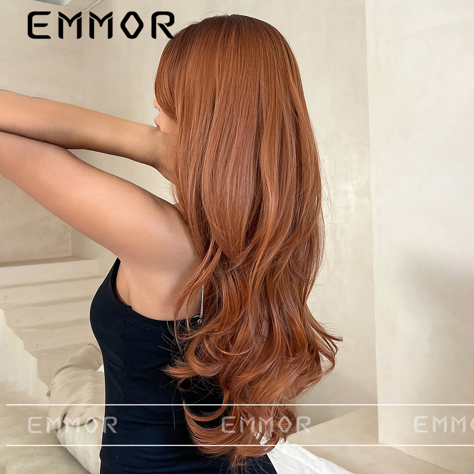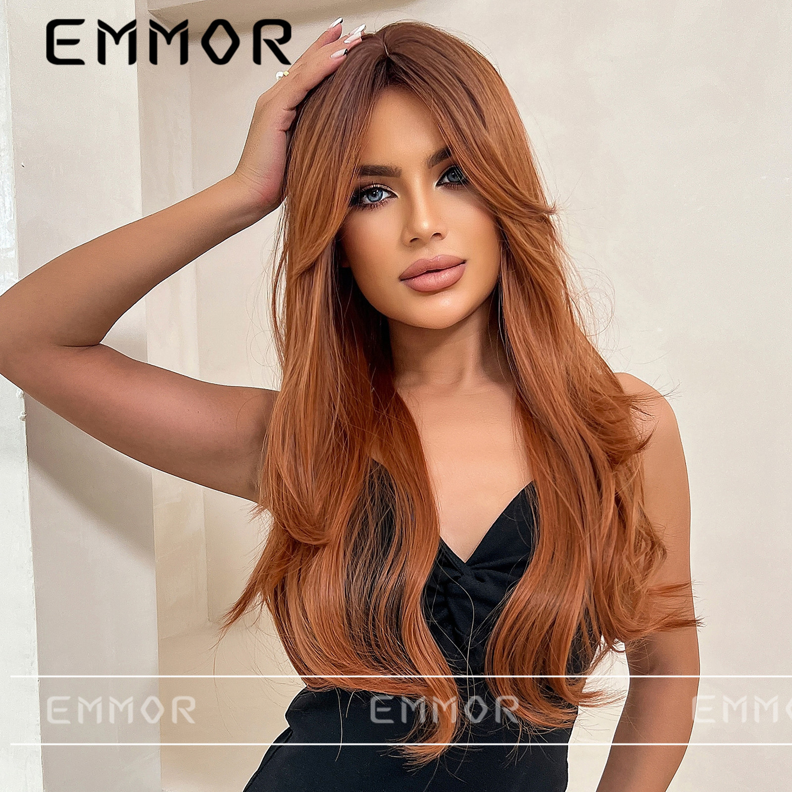 Amazon peluca blanca europea y americana femenina flequillo parcial gradiente escocés naranja larga recta cola de pelo peluca rizada