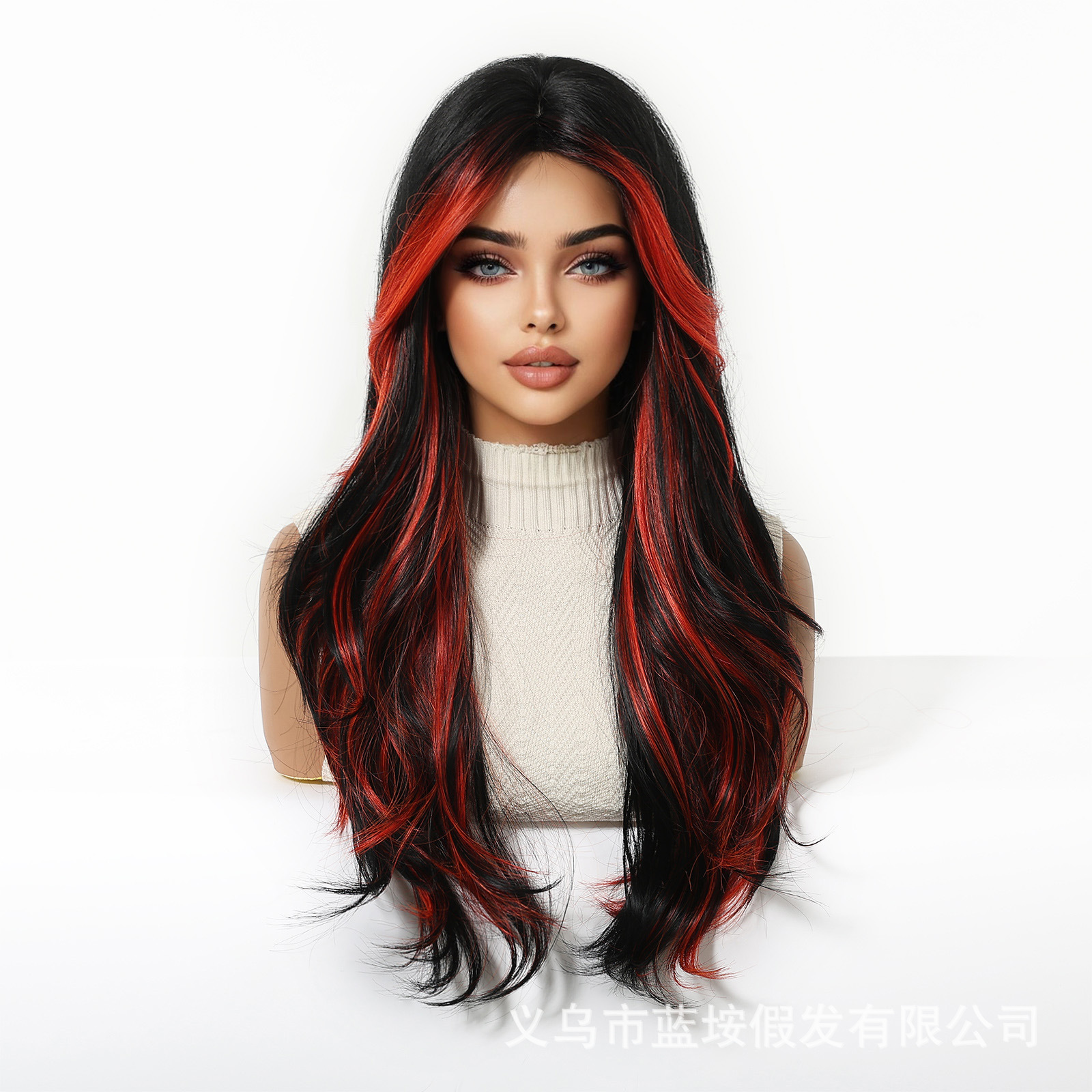 Ventas transfronterizas de pelucas de cosplay para mujeres cubiertas de cabeza elegidas teñidas de rojo ondas grandes europeas y estadounidenses de moda fibra química pelucas