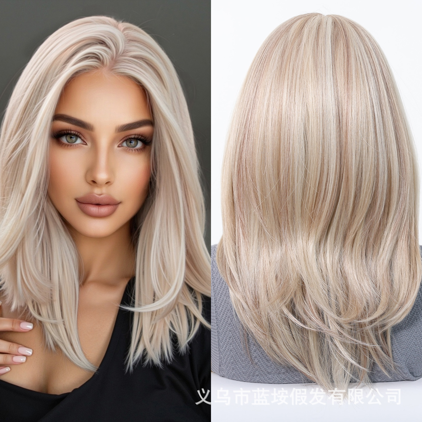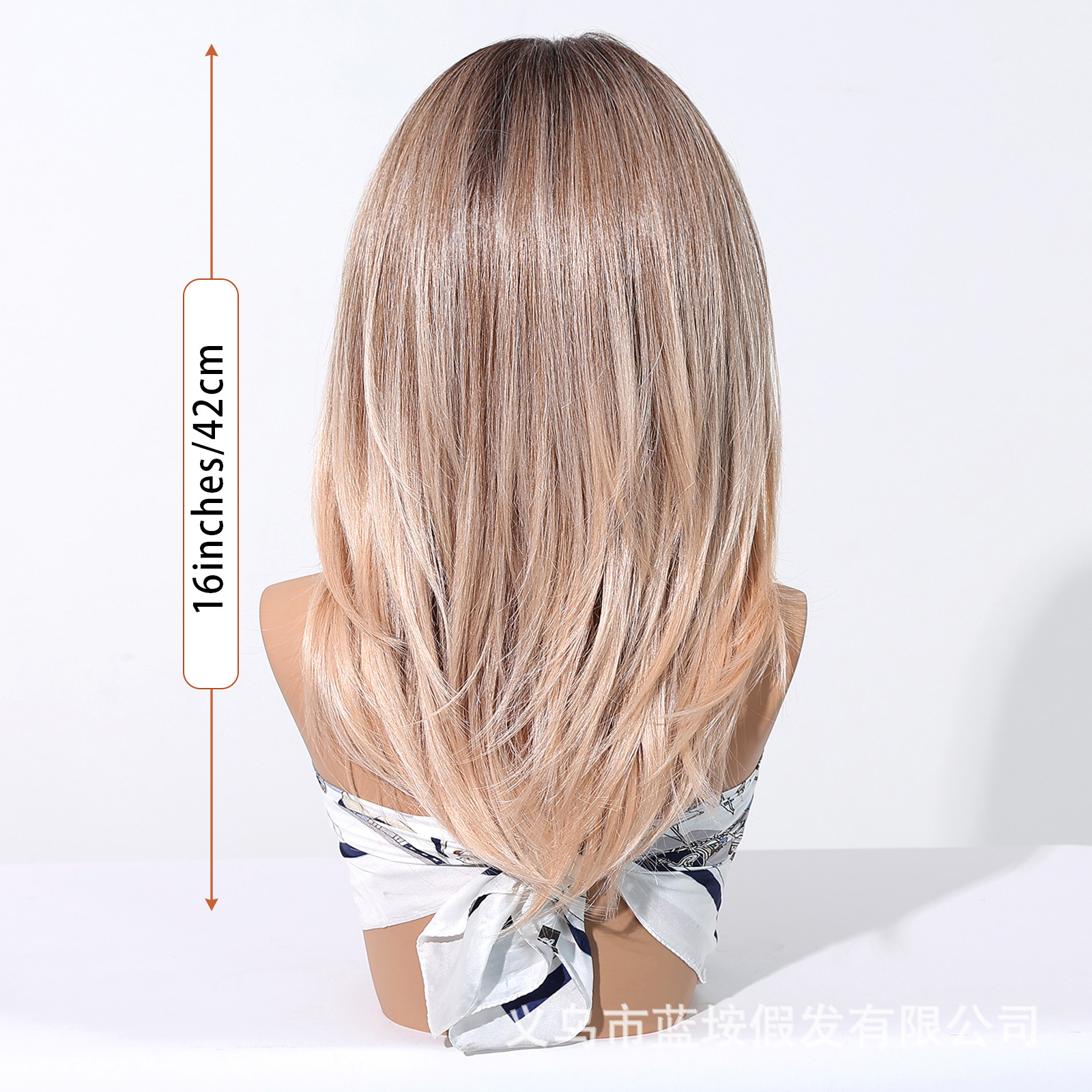 Gradiente rosa pálido de gran área peluca de encaje casual cosplay cubierta de fábrica en stock