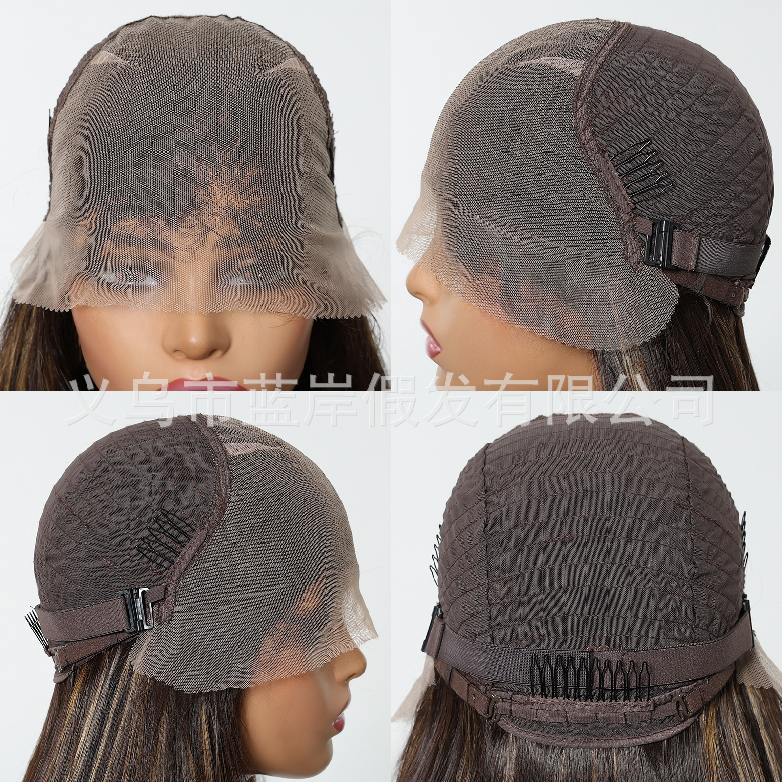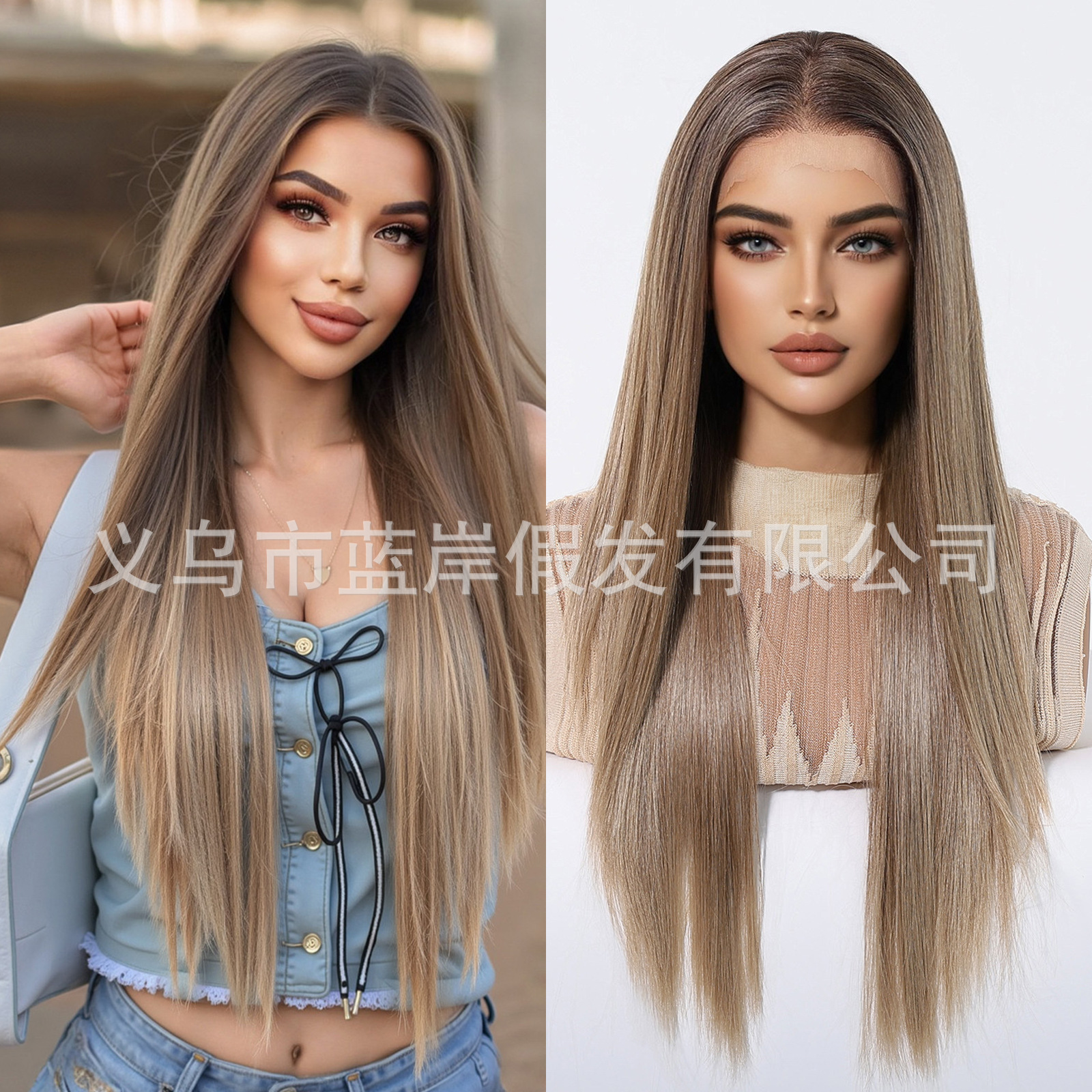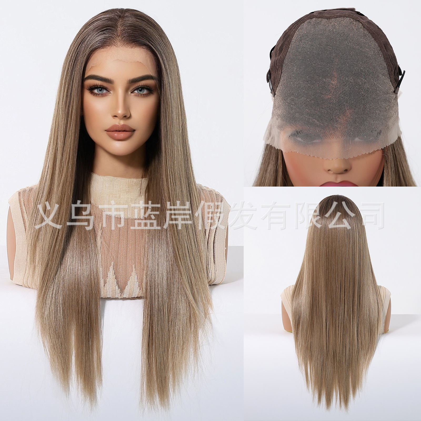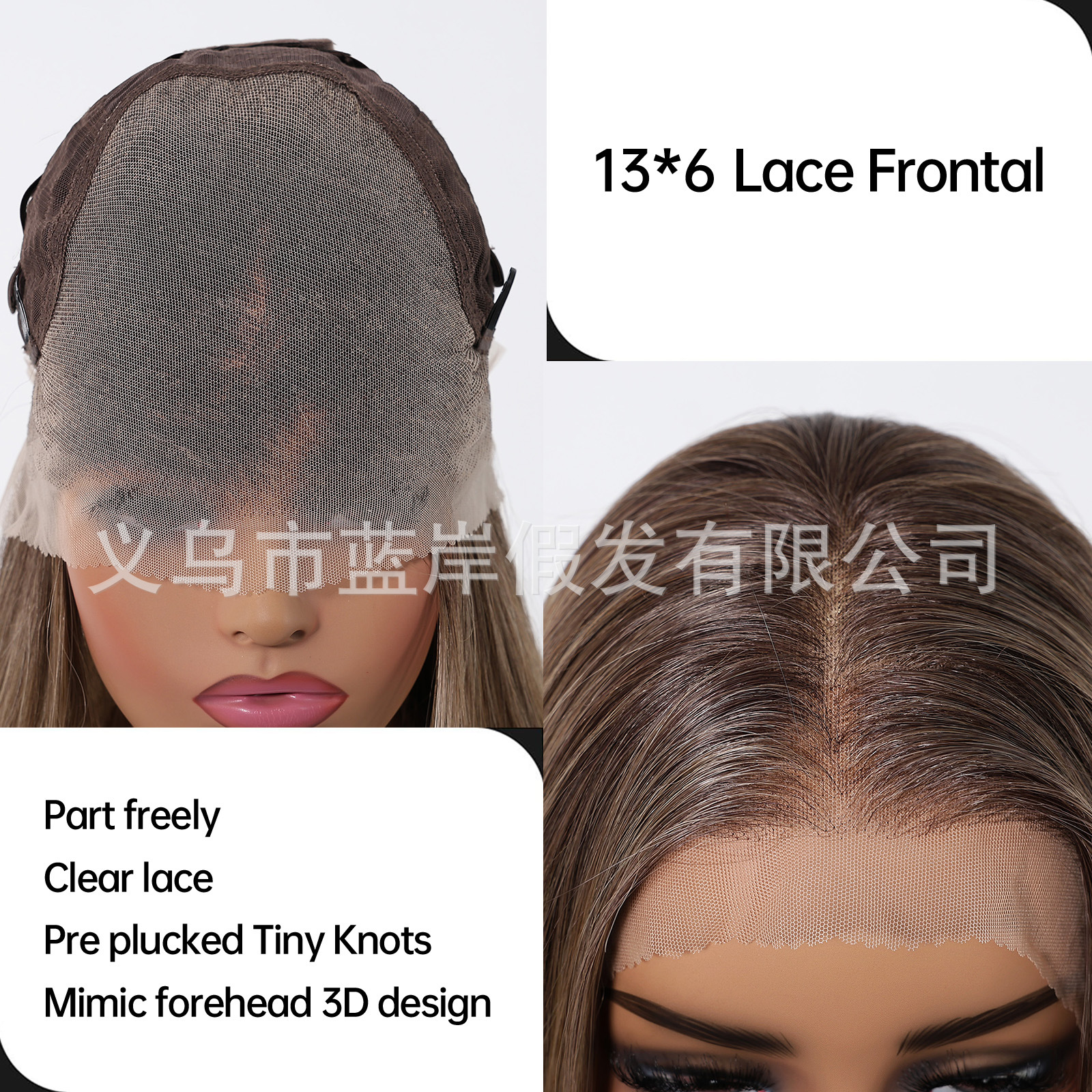 Peluca de encaje degradado de estilo europeo y americano 13*6 área grande con costura libre, pelo largo y liso, gancho de mano transpirable, gorras de malla, cubierta completa
