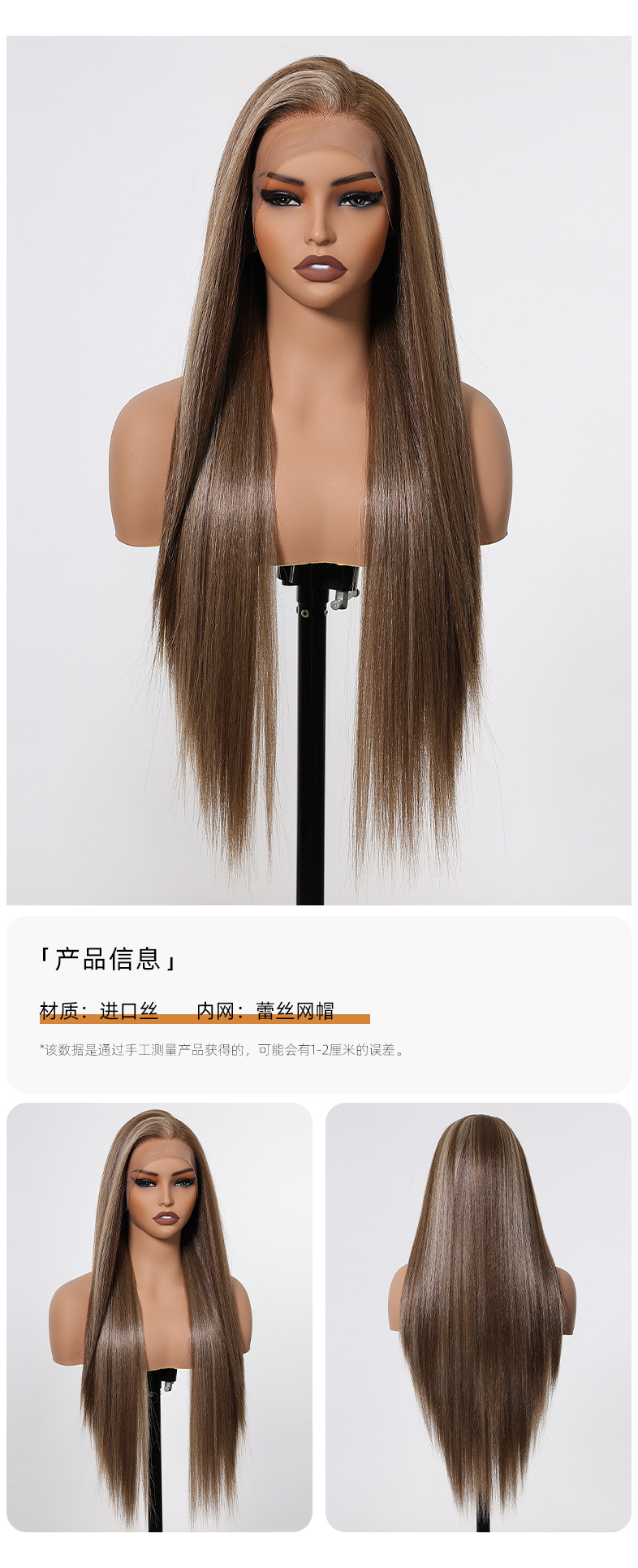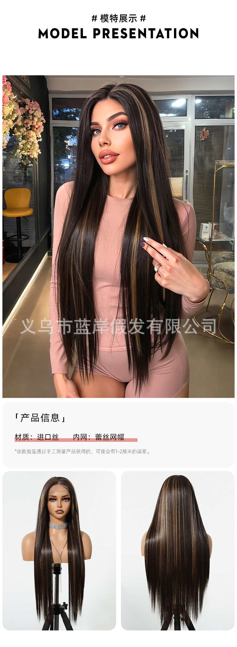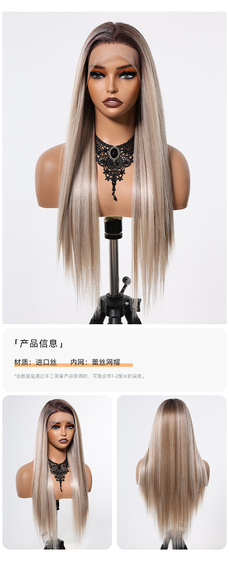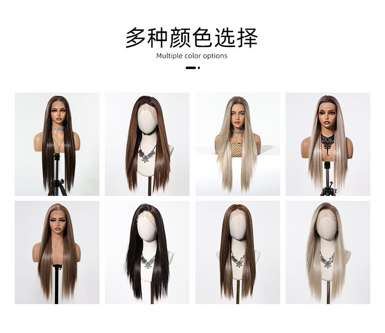 Peluca de encaje degradado de estilo europeo y americano 13*6 área grande con costura libre, pelo largo y liso, gancho de mano transpirable, gorras de malla, cubierta completa