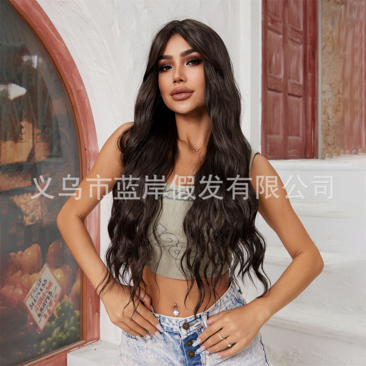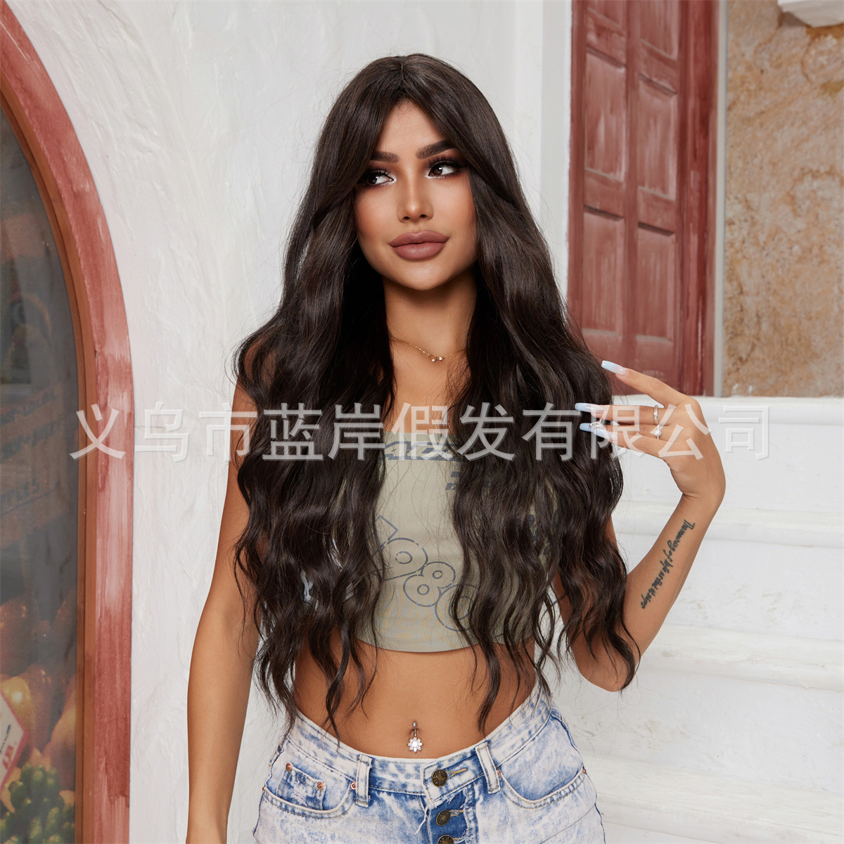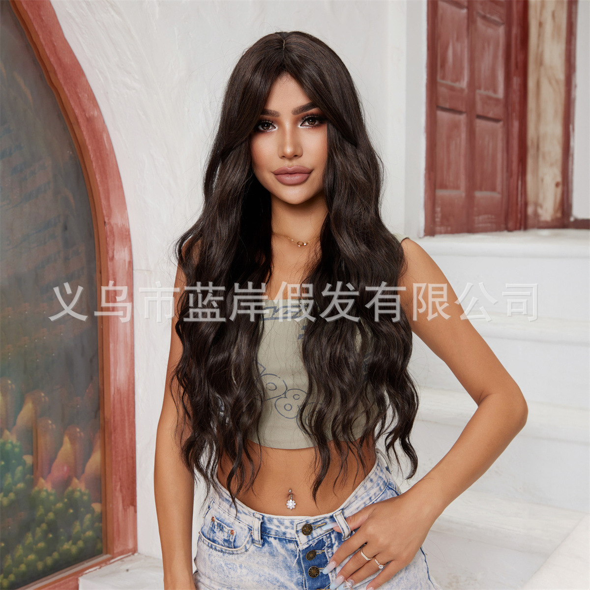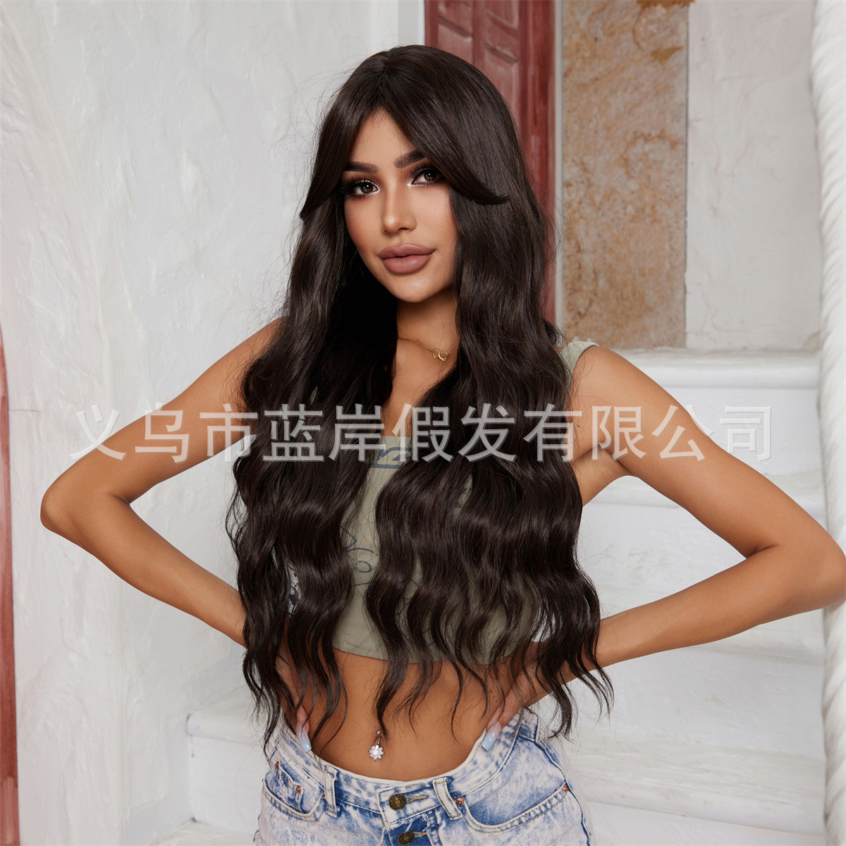 Moda nueva peluca transfronteriza de estilo europeo y americano, flequillo femenino de ocho caracteres, negro, marrón, rizado pequeño, pelo largo, todo en stock de fábrica