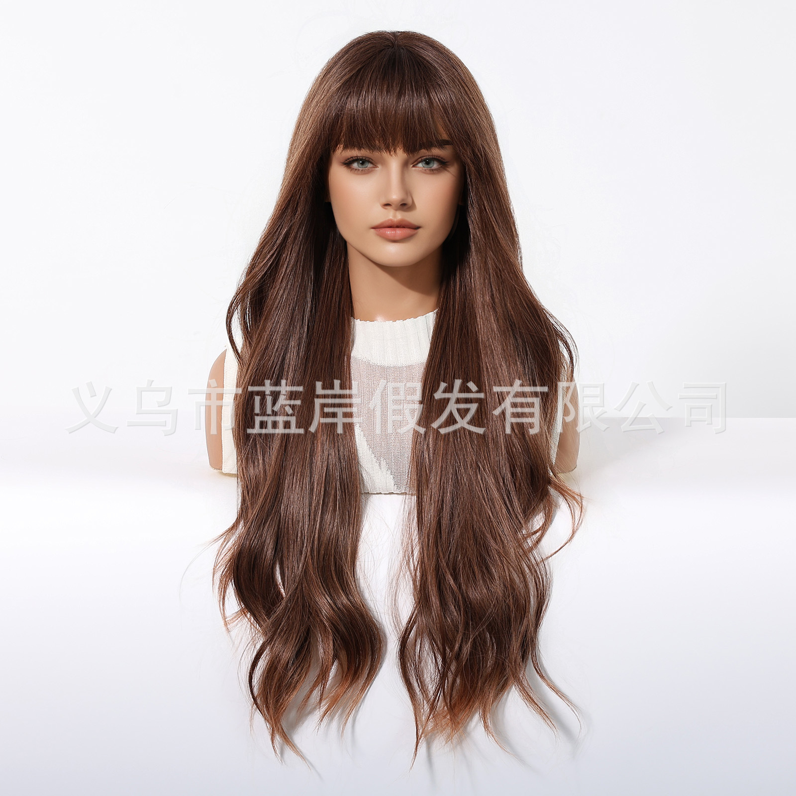 Peluca de fibra química transfronteriza con casco completo flequillo de aire femenino 30inch temperamento de onda grande rizado largo stock de fábrica