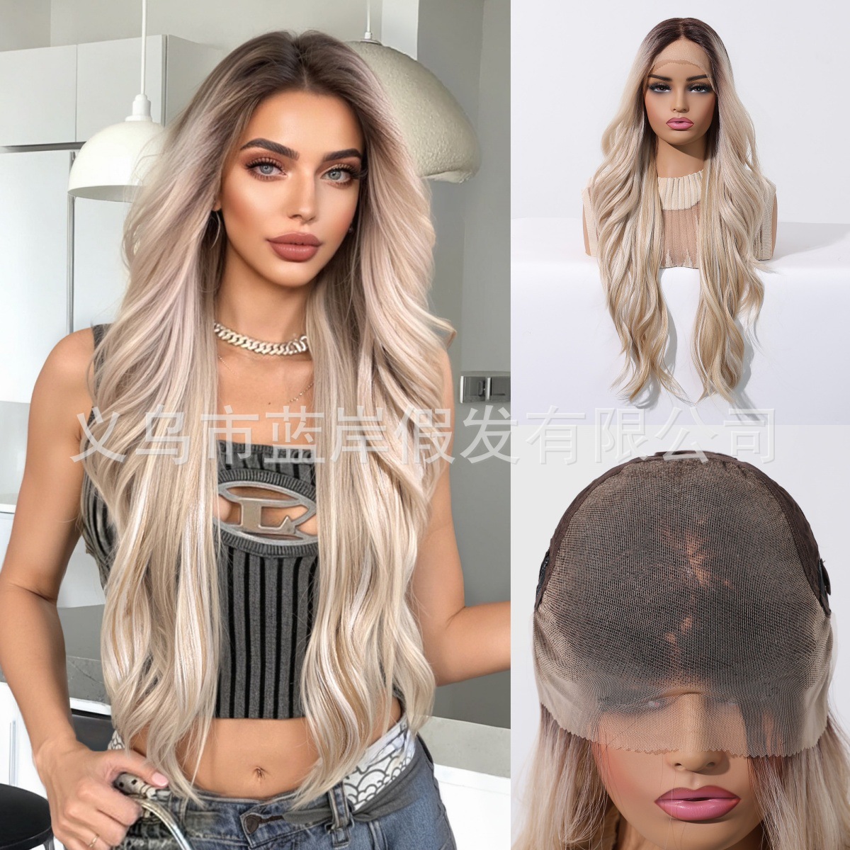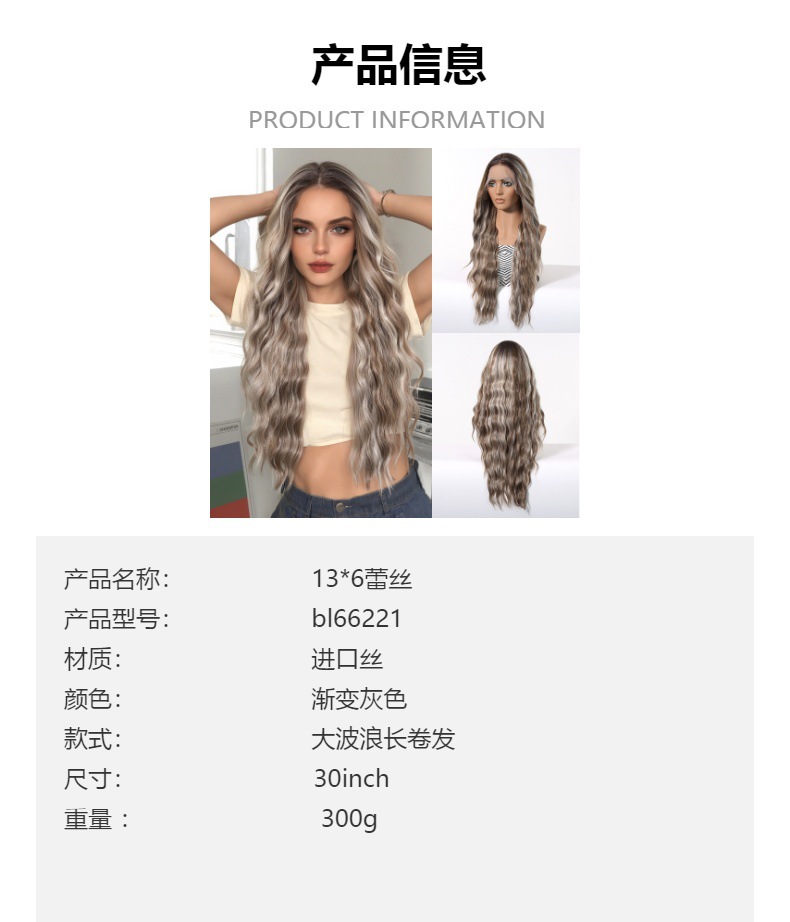 Natural y sin costuras 13*6 peluca de encaje de área grande para mujer, cosidos a voluntad, cabello largo y rizado gris degradado ligero y transpirable