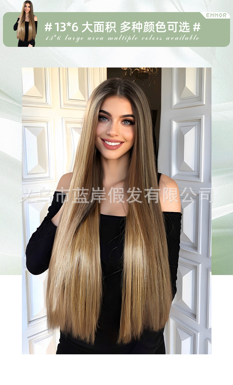 Punto transfronterizo peluca de encaje de gran área cubierta completa estilo europeo y americano costura aleatoria moda cabello largo y liso lace