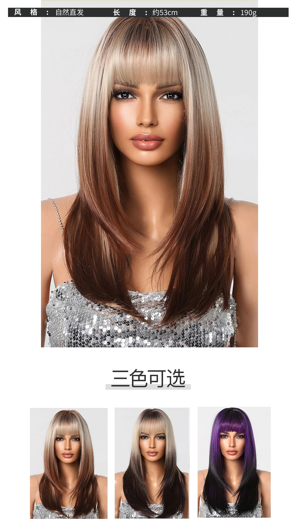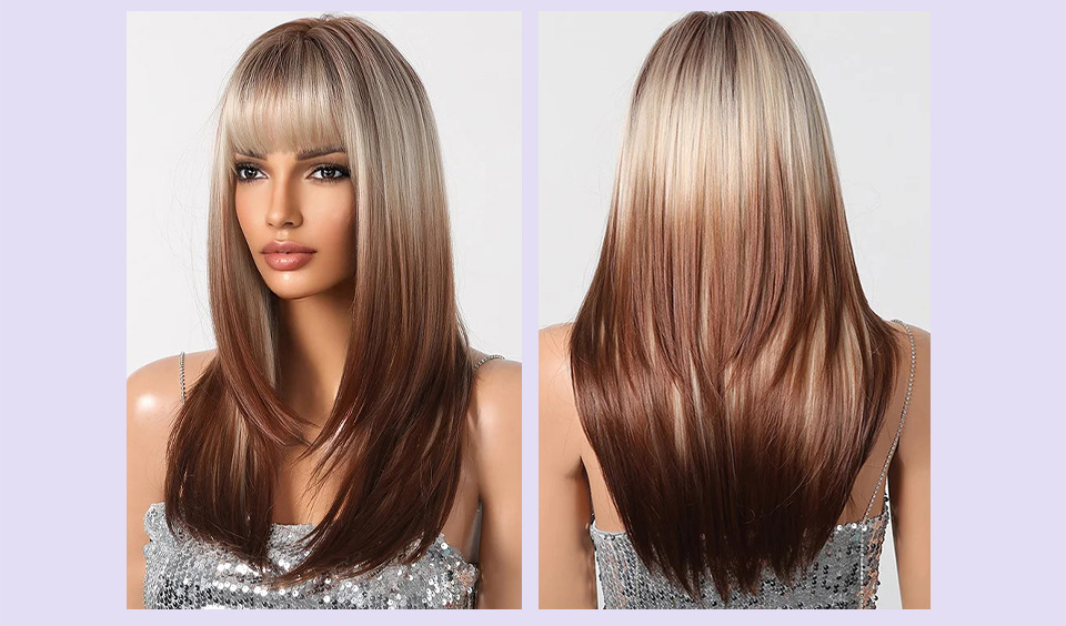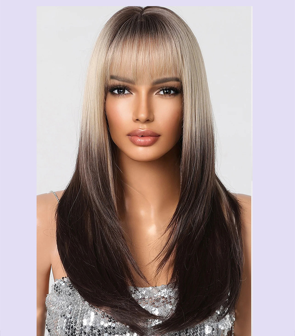 Suministro transfronterizo de nuevos productos Qi flequillo dorado degradado marrón en capas micro-rizado peluca europea y americana tipo de cabello completo