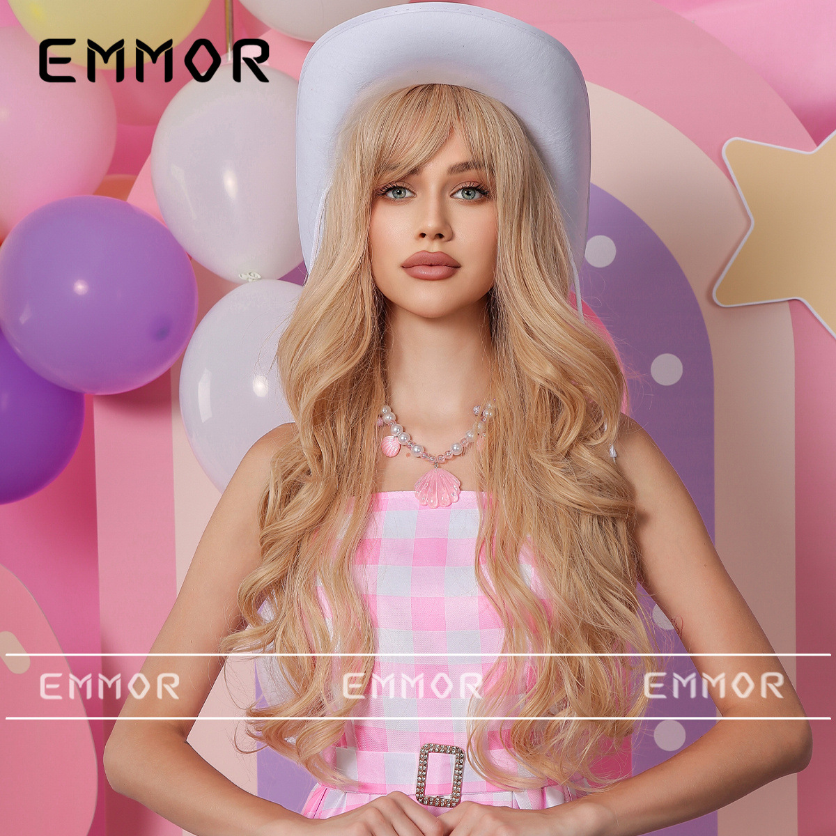 Europa y América nuevo estilo Bangs leche té marrón largo pelo rizado Barbie escape princesa estilo perezoso mullido peluca cabeza completa cubierta