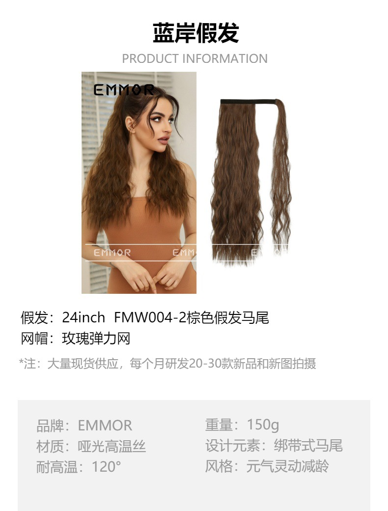 Peluca de mujer con cordones de cola de caballo alta ondulación del agua largo cabello rizado cabello esponjoso natural sin costuras aumento peluca pieza de cabello