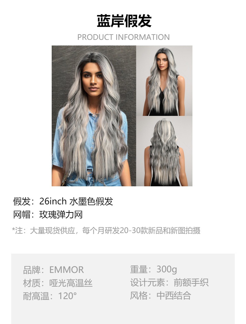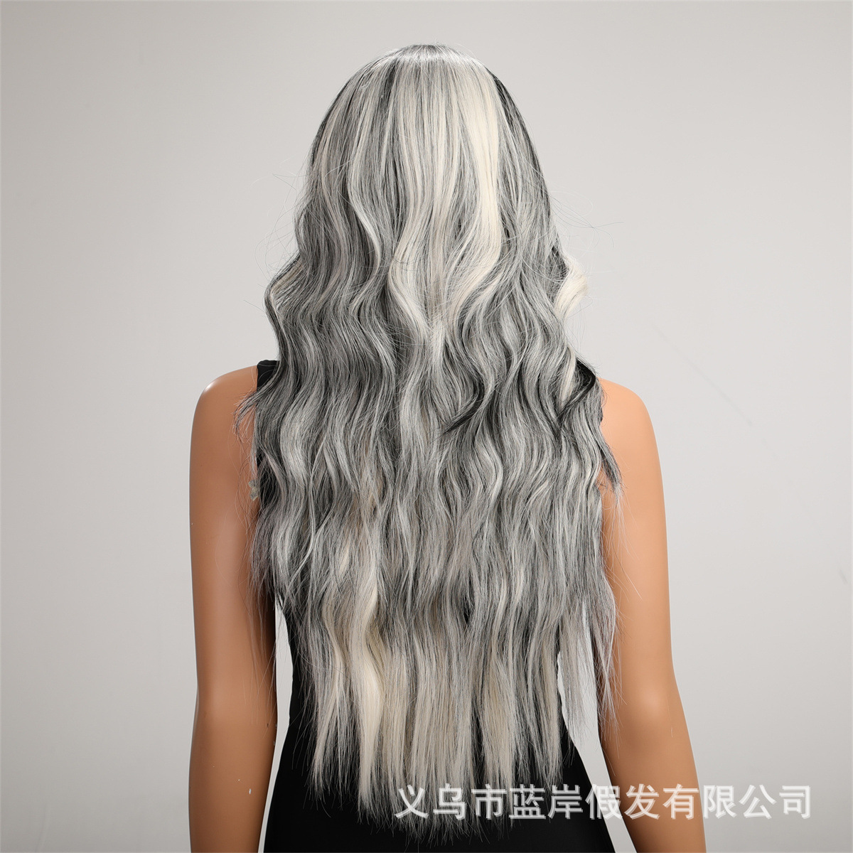 Peluca transfronteriza europea y americana para mujer, cubierta completa para la cabeza, parte media tejida a mano, color tinta, cabello largo y rizado de moda, pelucas de cabello de fibra química